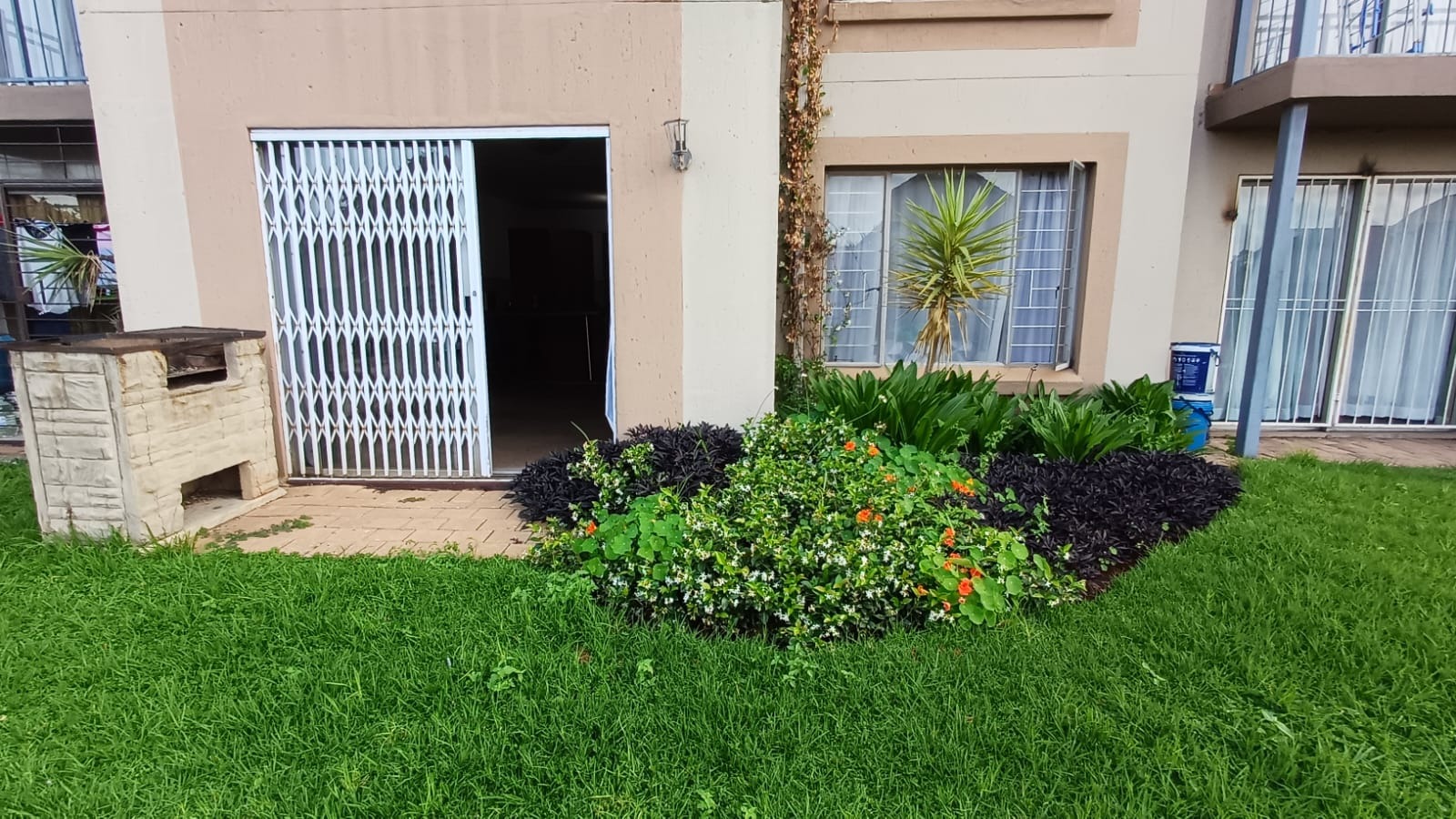 Discover this inviting 1-bedroom apartment, perfectly situated within a well-maintained complex in Kleinfontein, Benoni. The property offers a comfortable 44 sqm floor size, ideal for individuals or couples seeking a secure and convenient living space. Upon entering, you are greeted by a functional kitchen featuring light wood-toned cabinetry, speckled grey countertops, and a modern black faucet over a double sink. A built-in stove and oven, along with an extended breakfast bar, provide practical amenities for daily living. The adjacent lounge area, with its warm accent wall and large sliding glass door, offers abundant natural light and direct access to the private outdoor space. The apartment comprises a single bedroom, benefiting from good natural lighting through a large window, creating a bright and airy atmosphere. The bathroom is equipped with a bathtub and an integrated overhead shower, a pedestal sink, and tiled flooring, ensuring a practical and easy-to-maintain space. Step outside to your private paved patio, complete with a built-in braai, perfect for entertaining or enjoying quiet evenings. This outdoor area is complemented by a well-kept garden bed and a green lawn, offering a touch of nature. Security is enhanced with security gates on the entry door and sliding door, as well as burglar bars on windows. The complex itself boasts extensive outdoor parking, much of which is covered, along with integrated speed bumps for safety and well-maintained lawns. With 24-hour security and an access gate, residents can enjoy peace of mind. Located in Benoni, this property offers a blend of suburban tranquility and accessibility. Key Features: * 1 Bedroom, 1 Bathroom * 44 sqm Floor Size * Private Paved Patio with Built-in Braai * Well-maintained Garden Area * Functional Kitchen with Built-in Stove/Oven * Lounge with Sliding Door Access * 1 Parking Bay * 24-Hour Security and Access Gate * Security Gates and Burglar Bars