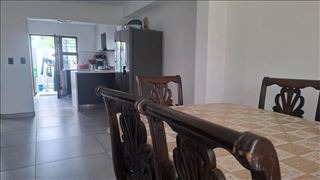 Come and check out this lovely 3-bedroom, 2-bathroom home in a friendly complex in Lakefield, Benoni. It's got a modern vibe with a cool two-story design and a light-colored facade that looks super inviting. You'll love the ground-floor patio, perfect for chilling out and enjoying some fresh air. Step inside and you'll find a bright, open-plan living space that just feels right. The kitchen is a real highlight, boasting modern white cabinetry, sleek dark lower cabinets, and light countertops. It's fully equipped with stainless steel appliances, a subway tile backsplash, and a handy island that doubles as a breakfast bar – great for casual meals or entertaining. The living room is comfy with modern black leather sofas and practical tiled flooring, flowing nicely into the dining area. Upstairs, you'll find three cozy bedrooms, all with easy-to-clean tiled flooring. The two bathrooms are pretty stylish too! One features a modern vanity and a glass-enclosed shower, while the other is a real treat with luxurious marble-look tiles, a freestanding oval bathtub, and a separate glass-enclosed shower. Plus, one of the bathrooms is an en-suite, giving you that extra bit of privacy. Outside, you've got a private patio for relaxing and the complex offers some fantastic amenities, including a refreshing pool and a tennis court for some active fun. With two garages, parking is a breeze. The property is secured with a fence and an access gate, giving you peace of mind. Lakefield in Benoni is a well-established suburb known for its convenient location and community feel. It offers a great balance of suburban living with easy access to local amenities and main routes, making it a popular choice for families and professionals alike. Key Features: * 3 Bedrooms, 2 Bathrooms (1 En-suite) * Modern Kitchen with Stainless Steel Appliances * Open-Plan Living and Dining Areas * Ground-Floor Patio * Complex Amenities: Pool and Tennis Court * 2 Garages * Fenced Property with Access Gate * 130 sqm Erf and Floor Size