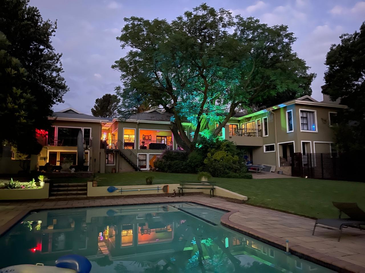 Garden and Outdoor Spaces: The front and rear gardens are a gardener’s dream, complete with smart irrigation, mist sprays in the vegetable patch, and vibrant smart RGB lighting. The borehole with a new pump and filtration system ensures ample water supply.