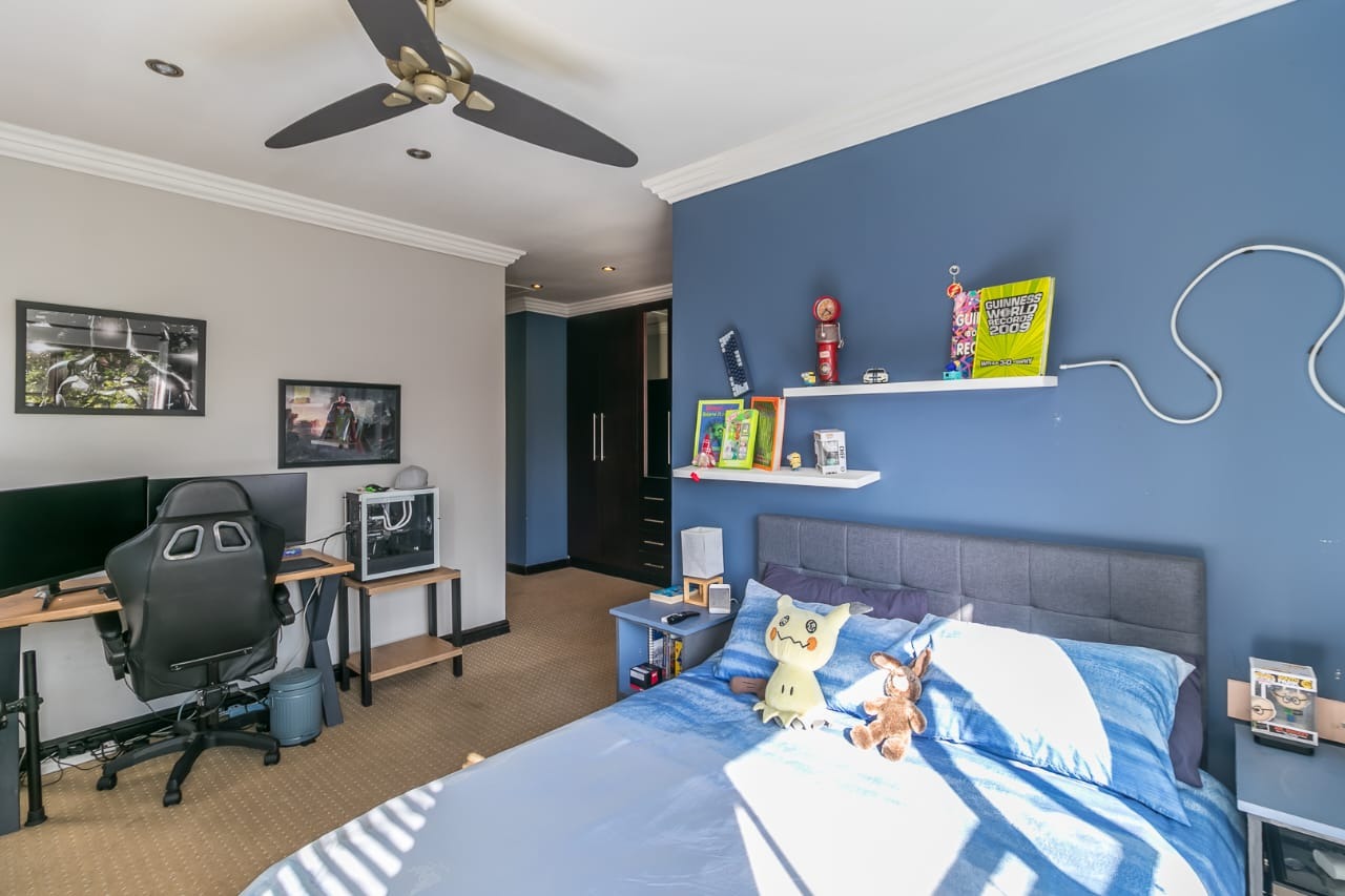 Spacious Living: With 5 expansive bedrooms (and the potential to convert to 8), this home is perfect for large families. Each bedroom features built-in cupboards except the guest bedroom, many with en-suite bathrooms. The staff quarters have been transformed into a large office space, while approved plans allow for the addition of a flat for extended family or guests.