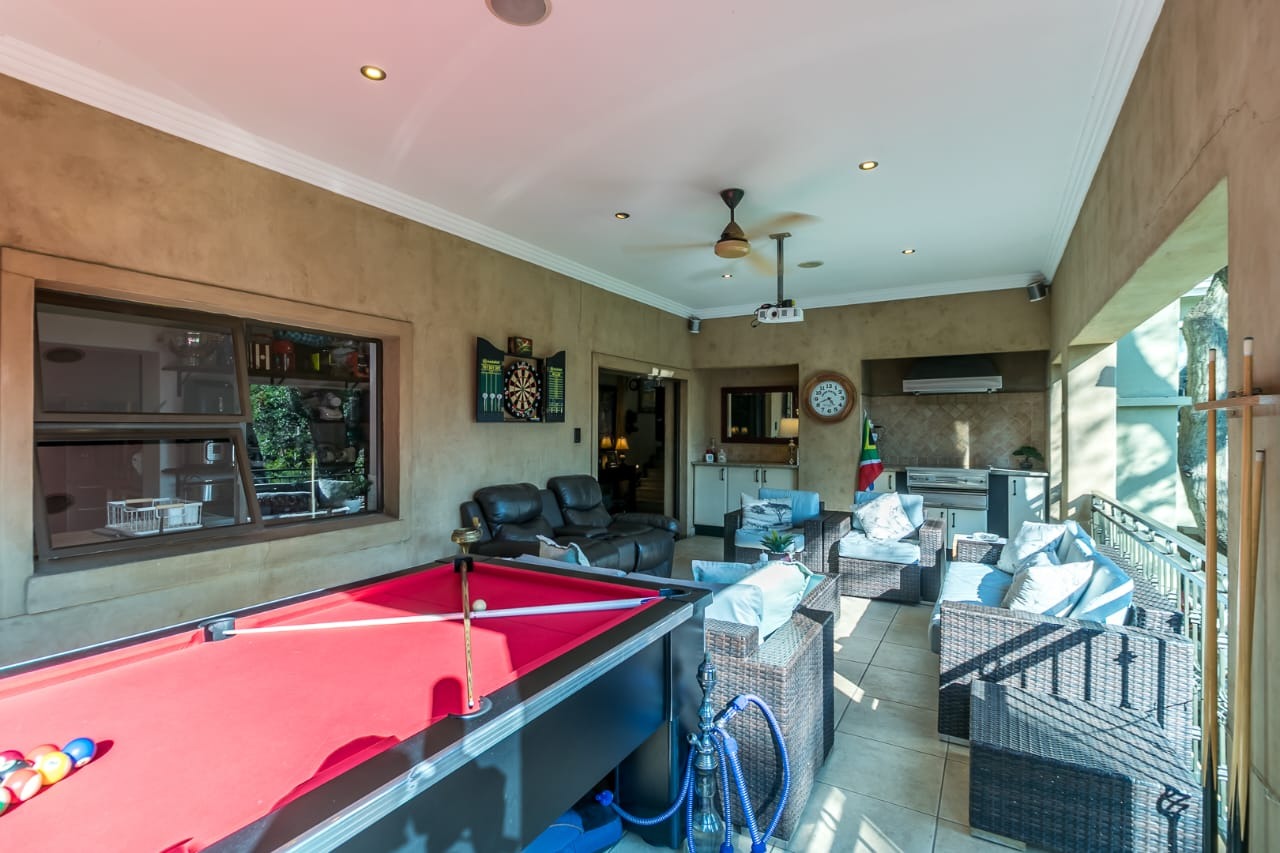 Entertainment Haven: The property features a large 100,000L pool, a pizza oven, a gas braai, and multiple patio areas perfect for hosting gatherings. A 3D full HD projector with a 120" drop-down screen on the main patio elevates outdoor entertainment.