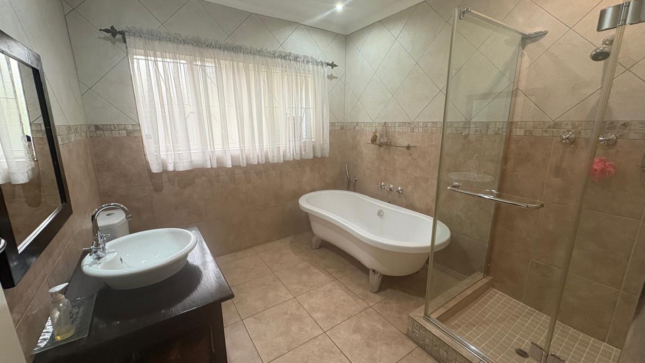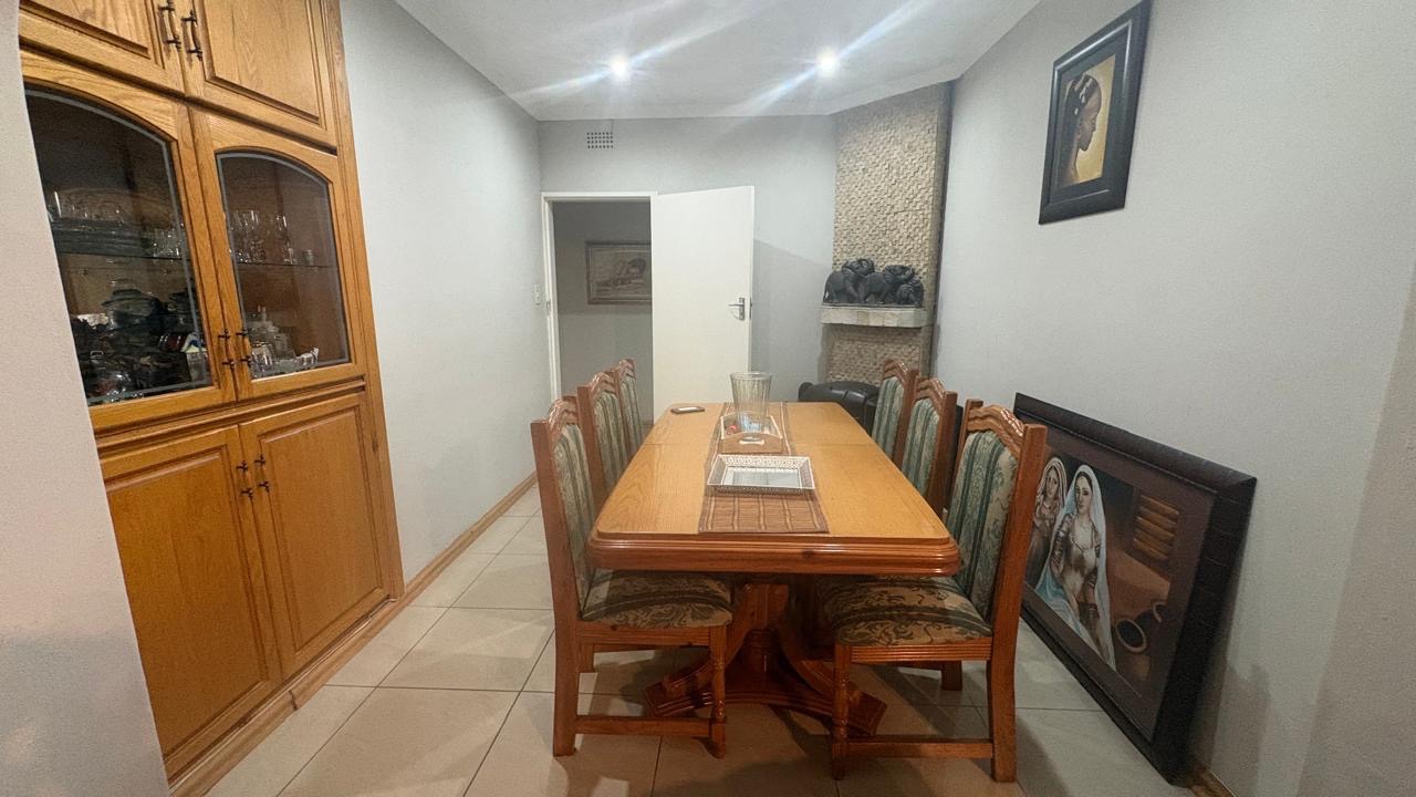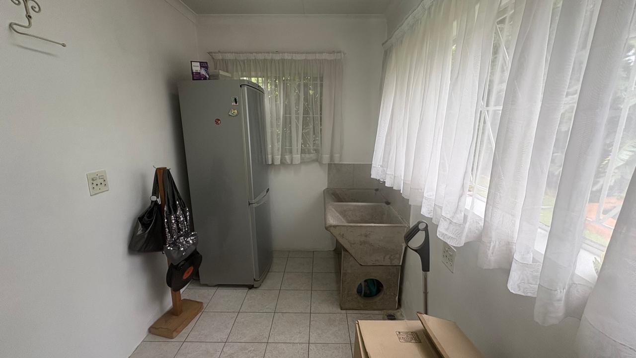 There is a double garage and a paved driveway including a carport providing ample parking for up to three vehicles. There is an alarm system and security bars on windows and the main gate, ensuring peace of mind. Additional features include a dedicated laundry area.