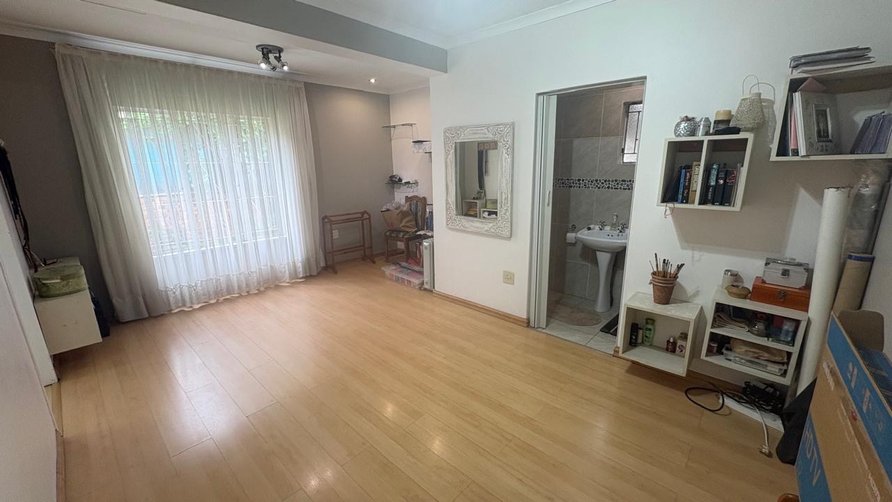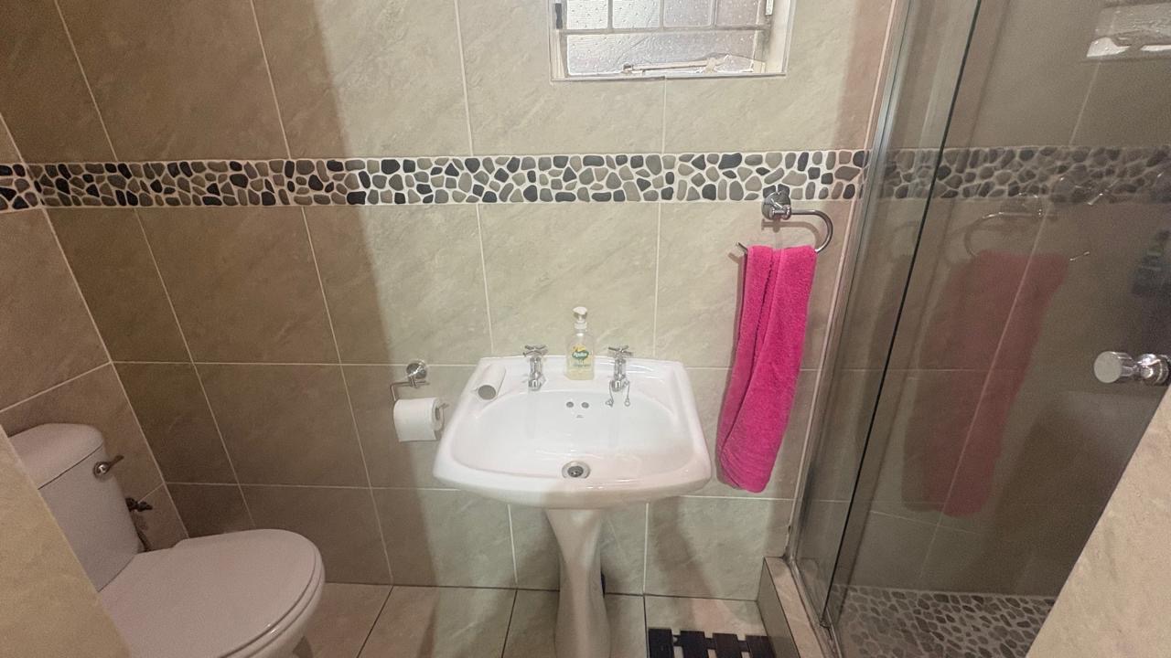 There is a double garage and a paved driveway including a carport providing ample parking for up to three vehicles. There is an alarm system and security bars on windows and the main gate, ensuring peace of mind. Additional features include a dedicated laundry area.
