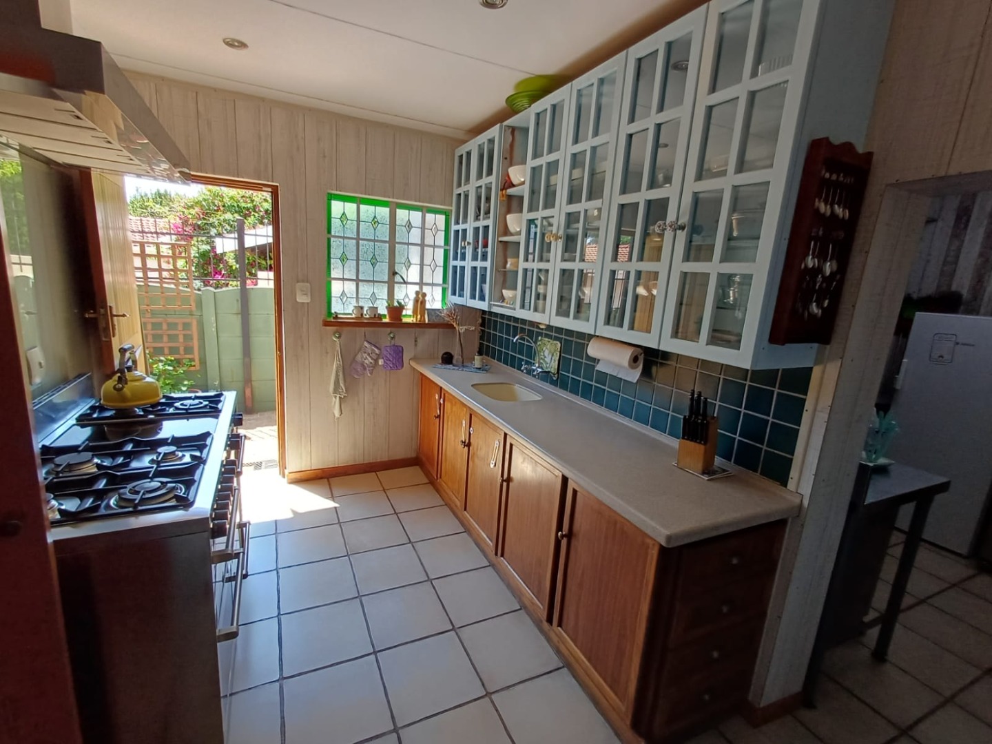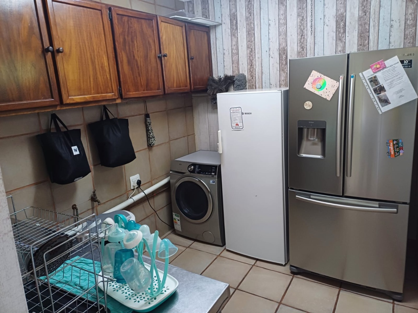 Security is paramount within this security estate, featuring 24-hour security, an access gate, alarm system, security gate, and burglar bars, all within a totally walled perimeter. The home is equipped with modern amenities for sustainable living, including solar panels, a battery inverter, a gas geyser, and water tanks, alongside fibre internet connectivity.