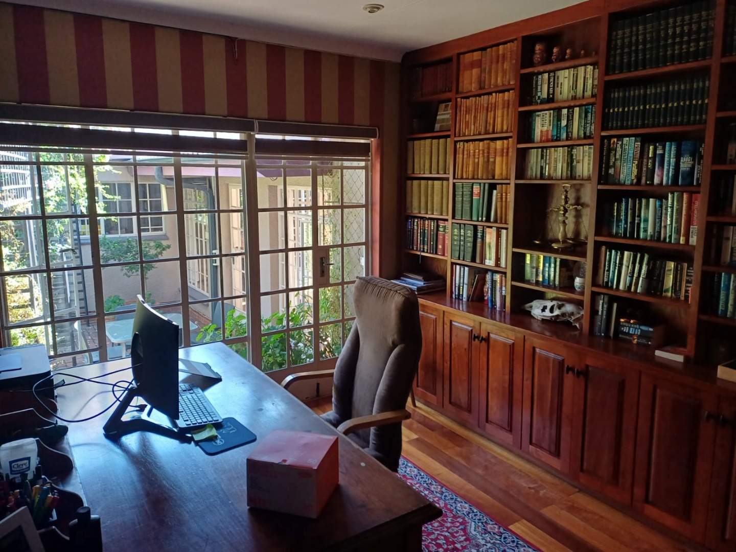 Discover this inviting family home nestled within a secure estate in Morehill, Benoni, offering a generous 1278 sqm erf. The residence welcomes you with an elegant entrance hall, leading into two spacious lounges and two distinct dining rooms, perfect for both formal entertaining and relaxed family gatherings. A dedicated family TV room provides additional living space, complemented by a cozy fireplace and a built-in bar, creating an ideal setting for comfort and socialising.