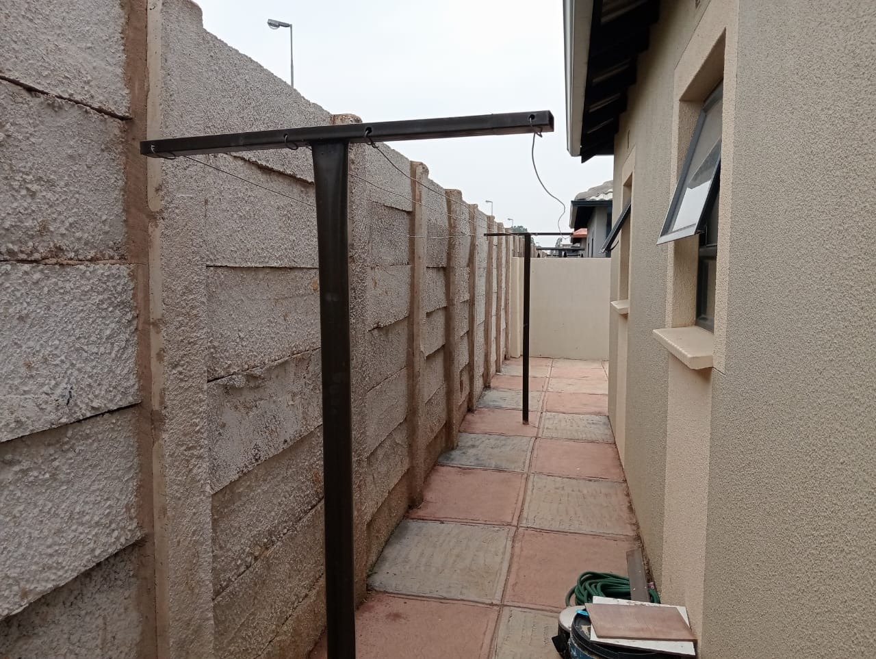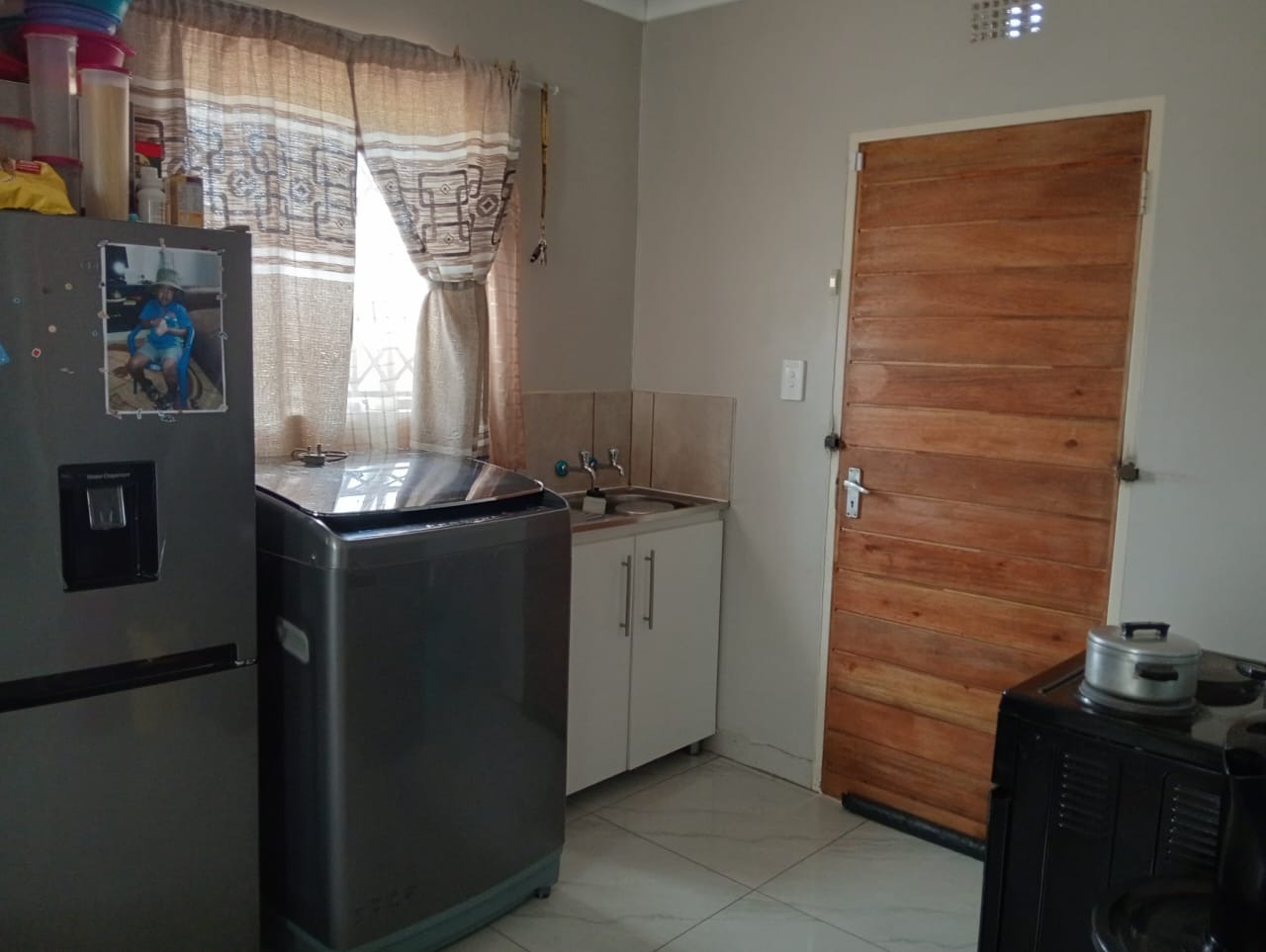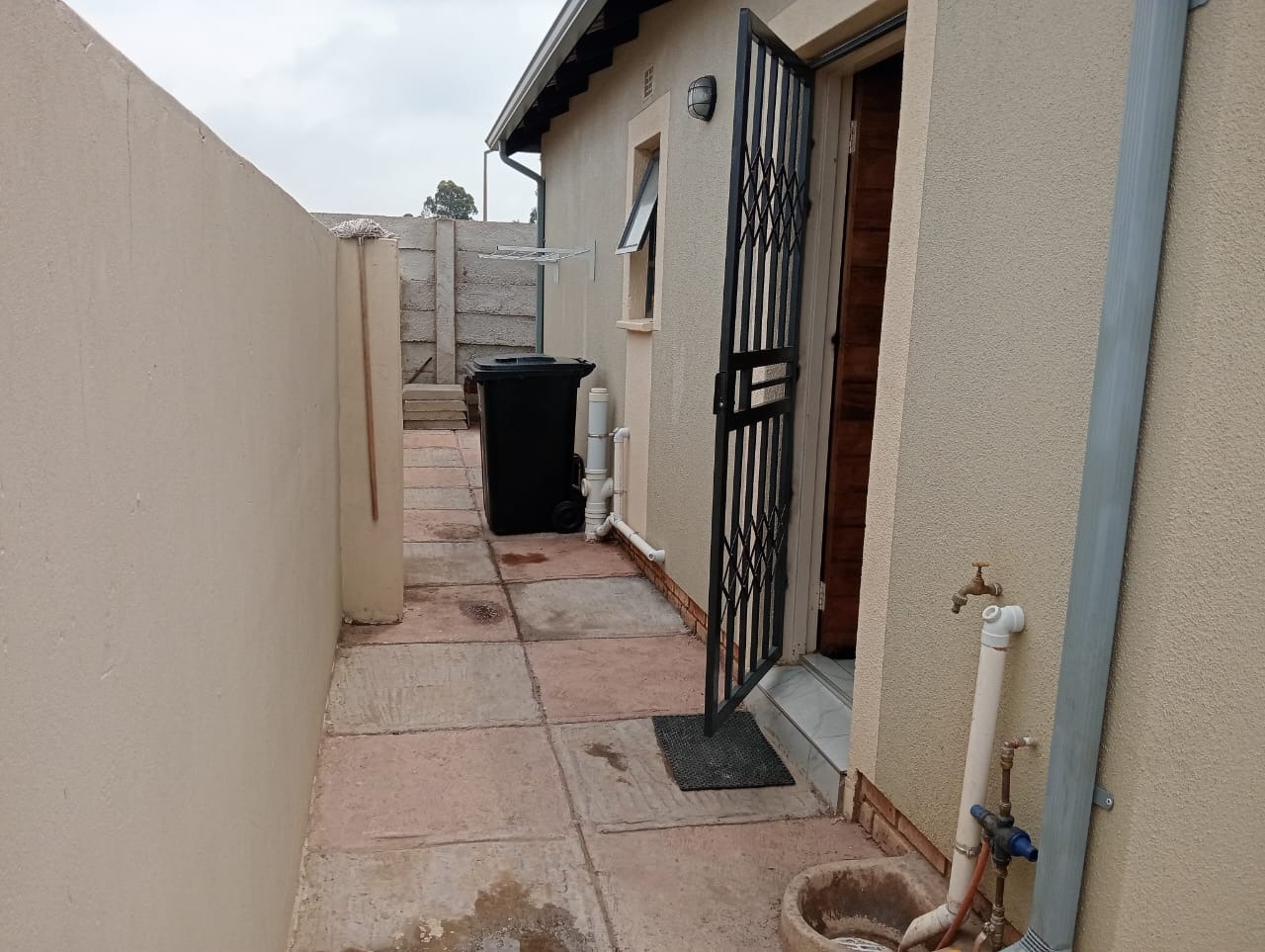 This modern 2-bedroom home in New Modder, Benoni, presents a neat and secure kerb appeal. The property features a well-maintained exterior with a tiled roof, complemented by robust security measures including high perimeter walls, a secure metal gate, and window bars, with an ADT security system visible. The paved driveway and outdoor areas offer low-maintenance living, while solar water heaters contribute to energy efficiency. The property benefits from 24-hour security and a security post, ensuring peace of mind. Step inside to discover a comfortable and functional interior. The home boasts a single lounge area, designed with an open-plan layout, providing a versatile space for relaxation and entertainment. Tiled flooring throughout ensures easy maintenance and a clean aesthetic. The living room is spacious, accommodating an L-shaped sofa and a modern entertainment unit, benefiting from natural light. The compact kitchen is practical, equipped with a sink, and offers space for essential appliances like a refrigerator and washing machine, as seen in the dedicated utility corner. This home features two well-proportioned bedrooms and a single bathroom, providing comfortable accommodation. The interior maintains a neutral palette, offering a blank canvas for personal touches. While green space is limited, the fully paved outdoor areas are ideal for those seeking minimal garden upkeep. The property is wheelchair-friendly and allows pets, catering to diverse lifestyle needs. Connectivity is excellent with fibre internet available, supporting modern living and remote work. Situated in Benoni, this suburban location offers convenient access to various amenities, schools, and transport routes, making it a practical choice for residents. Key Features: * 2 Bedrooms, 1 Bathroom * 1 Lounge, 1 Kitchen * 130 sqm Floor Size, 146 sqm Erf Size * Modern Exterior with Tiled Roof * High Perimeter Walls & Security Gate * 24-Hour Security & Security Post * Paved Driveway & Outdoor Areas * Fibre Internet Connectivity * Solar Water Heaters * Pet-Friendly & Wheelchair Accessible