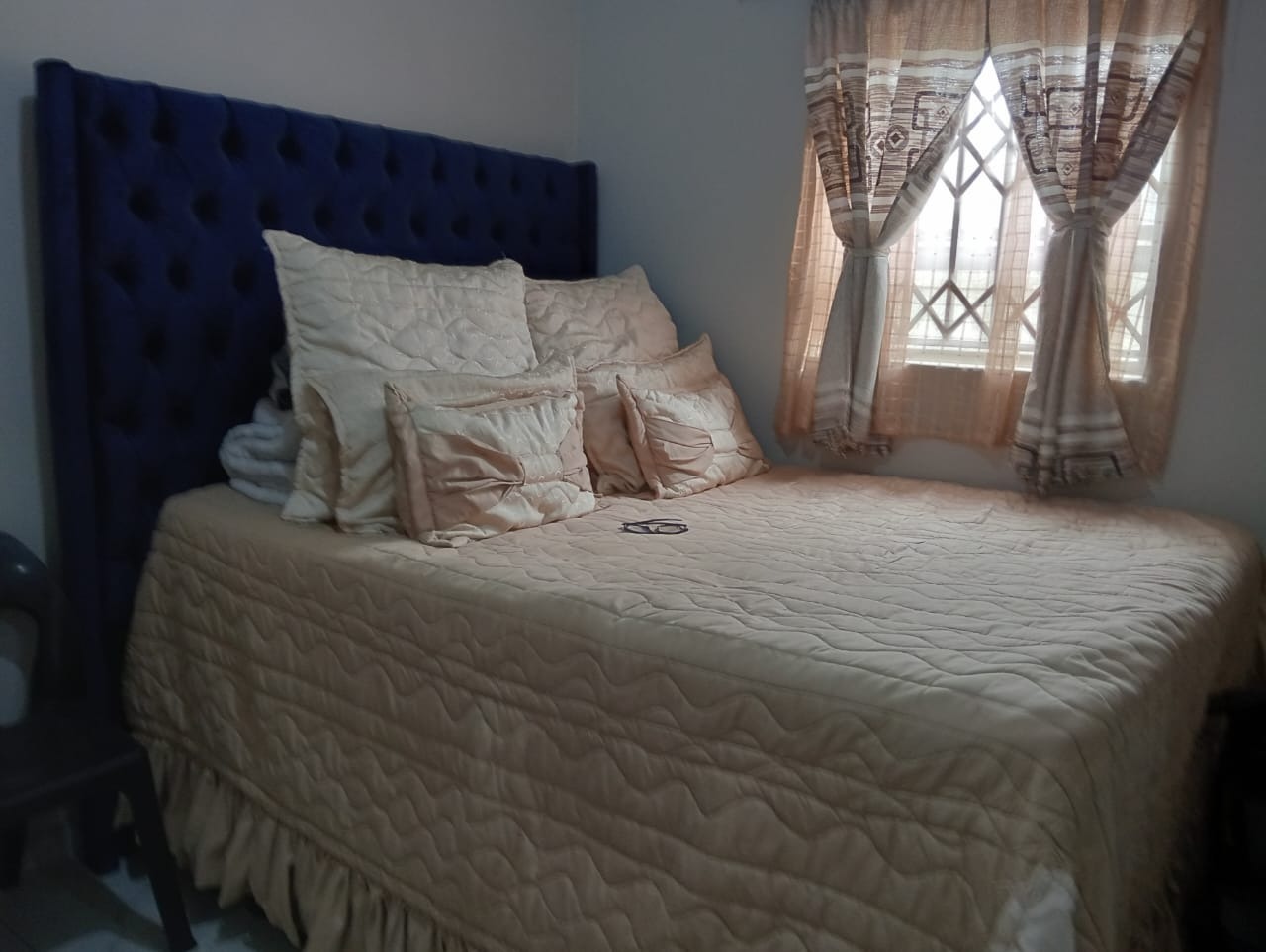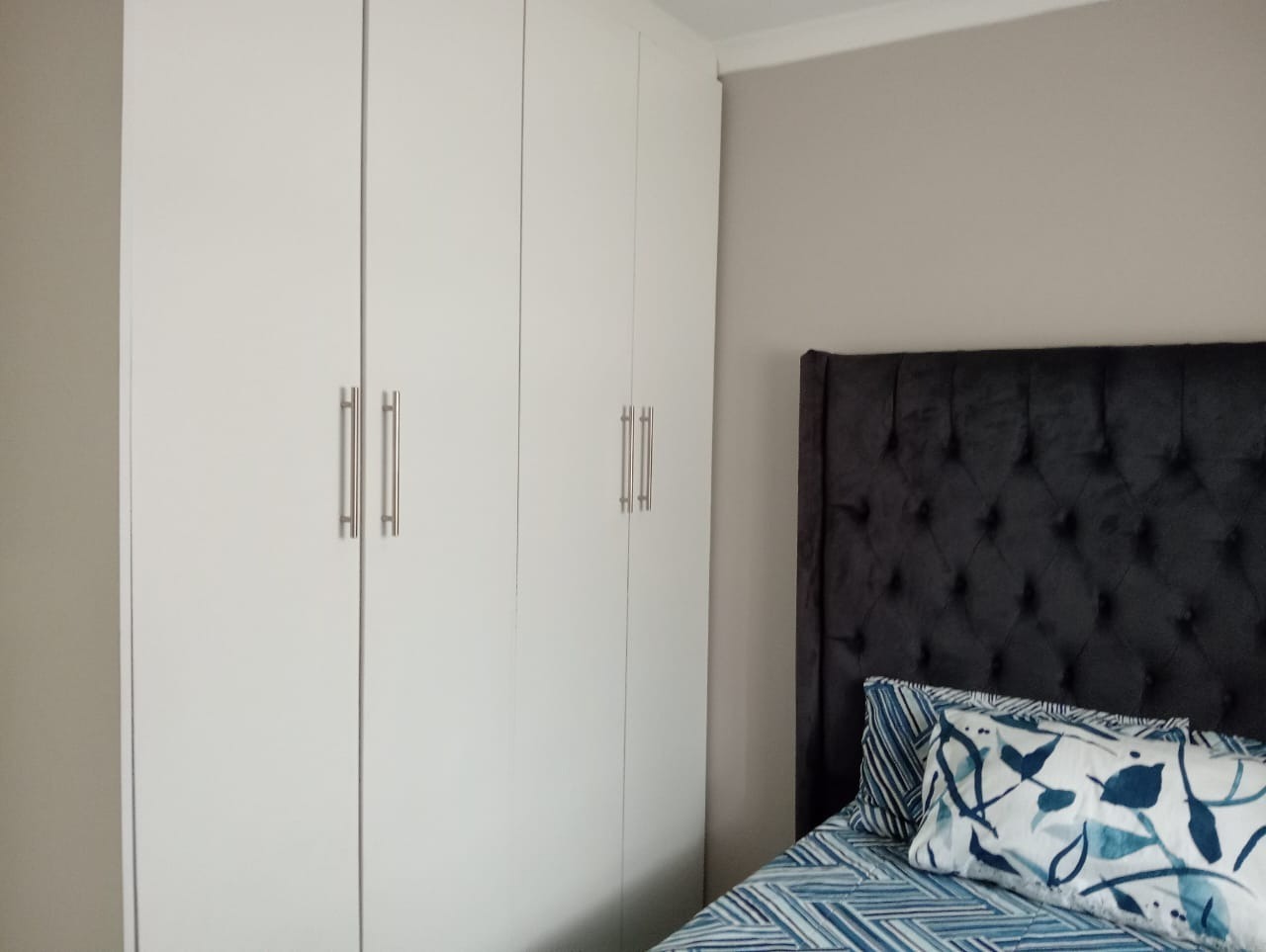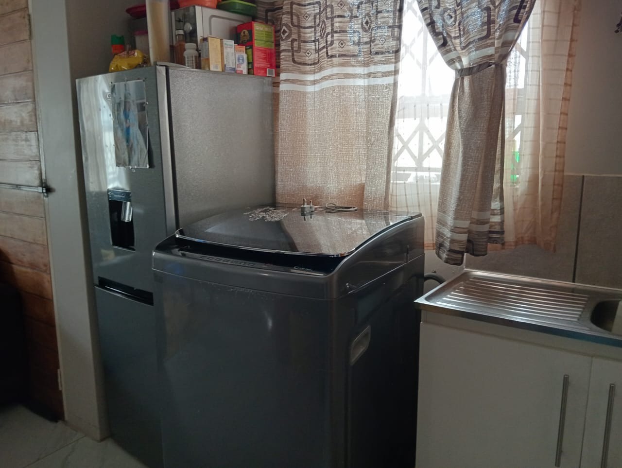 This modern 2-bedroom home in New Modder, Benoni, presents a neat and secure kerb appeal. The property features a well-maintained exterior with a tiled roof, complemented by robust security measures including high perimeter walls, a secure metal gate, and window bars, with an ADT security system visible. The paved driveway and outdoor areas offer low-maintenance living, while solar water heaters contribute to energy efficiency. The property benefits from 24-hour security and a security post, ensuring peace of mind. Step inside to discover a comfortable and functional interior. The home boasts a single lounge area, designed with an open-plan layout, providing a versatile space for relaxation and entertainment. Tiled flooring throughout ensures easy maintenance and a clean aesthetic. The living room is spacious, accommodating an L-shaped sofa and a modern entertainment unit, benefiting from natural light. The compact kitchen is practical, equipped with a sink, and offers space for essential appliances like a refrigerator and washing machine, as seen in the dedicated utility corner. This home features two well-proportioned bedrooms and a single bathroom, providing comfortable accommodation. The interior maintains a neutral palette, offering a blank canvas for personal touches. While green space is limited, the fully paved outdoor areas are ideal for those seeking minimal garden upkeep. The property is wheelchair-friendly and allows pets, catering to diverse lifestyle needs. Connectivity is excellent with fibre internet available, supporting modern living and remote work. Situated in Benoni, this suburban location offers convenient access to various amenities, schools, and transport routes, making it a practical choice for residents. Key Features: * 2 Bedrooms, 1 Bathroom * 1 Lounge, 1 Kitchen * 130 sqm Floor Size, 146 sqm Erf Size * Modern Exterior with Tiled Roof * High Perimeter Walls & Security Gate * 24-Hour Security & Security Post * Paved Driveway & Outdoor Areas * Fibre Internet Connectivity * Solar Water Heaters * Pet-Friendly & Wheelchair Accessible