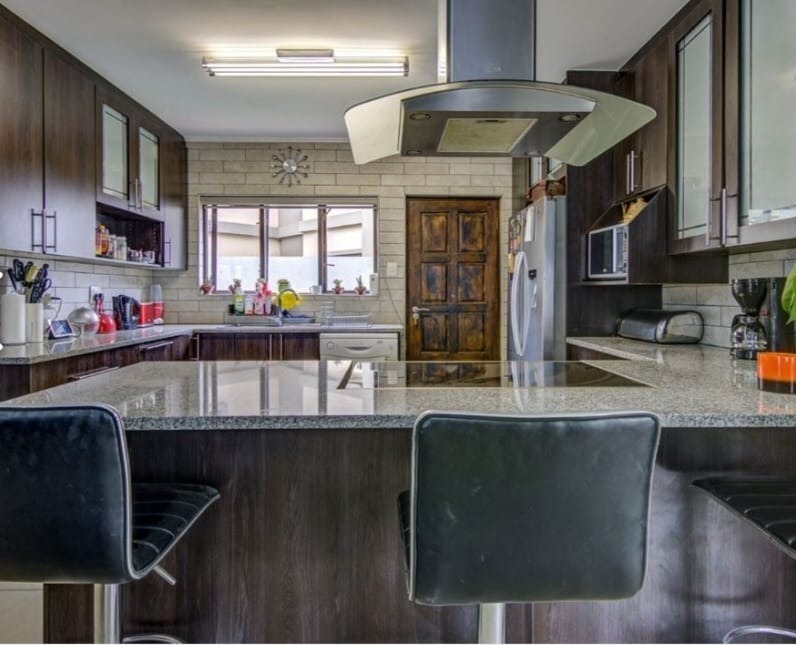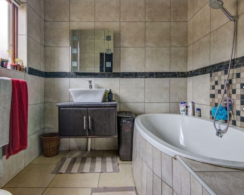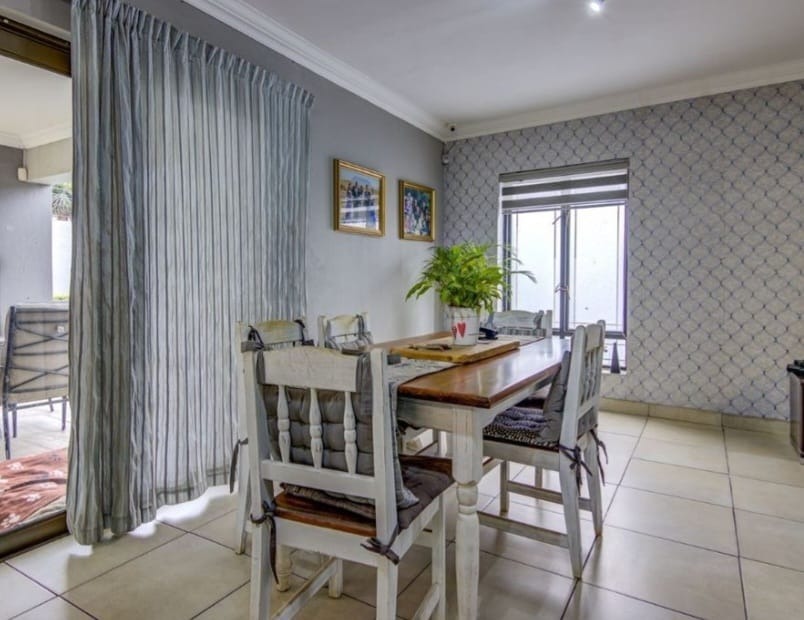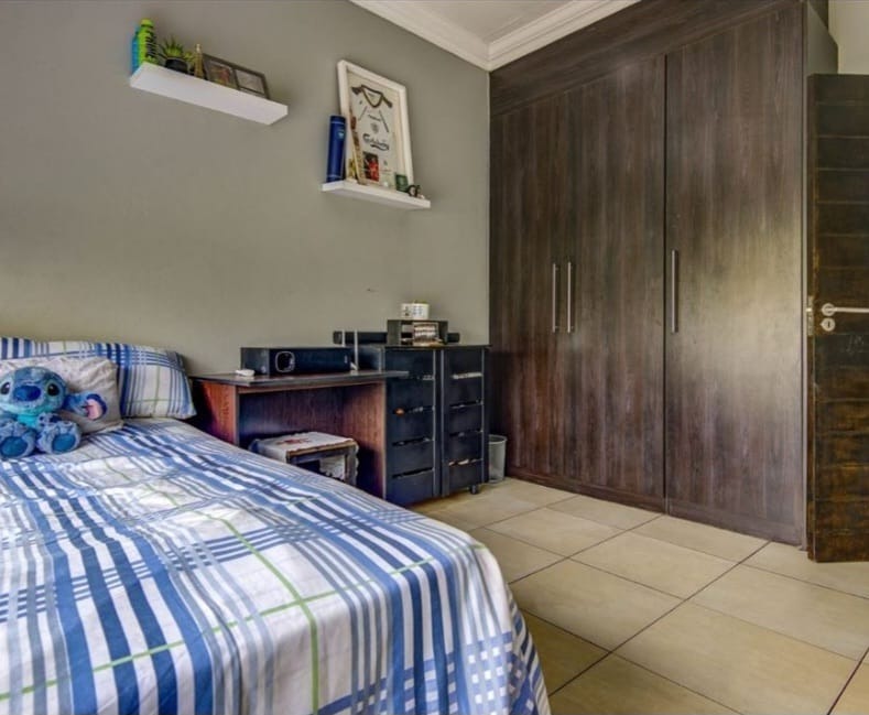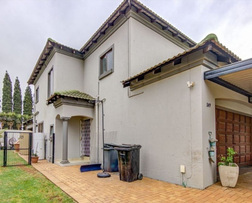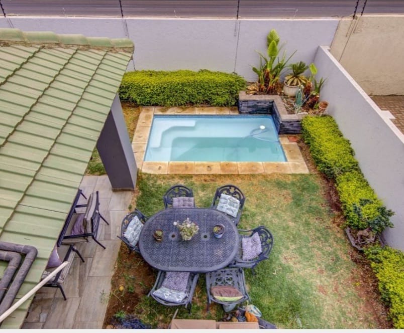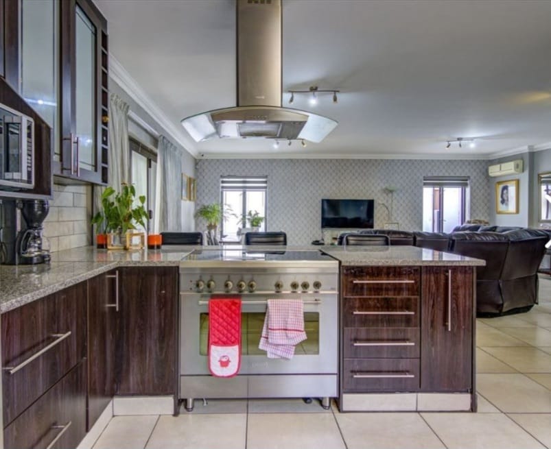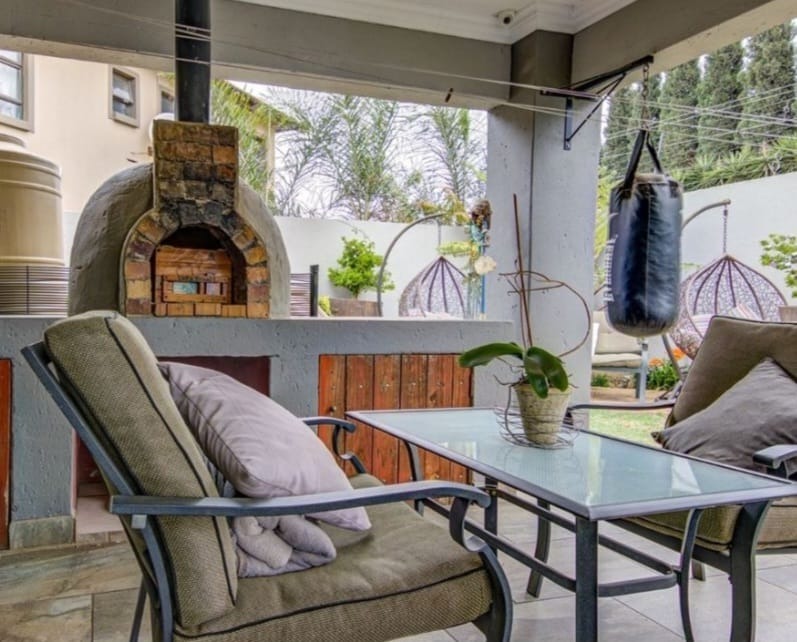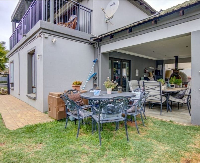 This distinguished residential property, situated within the esteemed Norton Home Estate in Benoni, South Africa, presents an exceptional opportunity for discerning homeowners. The contemporary two-story residence boasts a modern exterior design, complemented by a secure gated entry and a paved driveway leading to an integrated carport, ensuring both aesthetic appeal and functionality. Upon entry, residents are greeted by an expansive open-plan living area, seamlessly integrating the lounge, dining area, and a state-of-the-art kitchen. The kitchen is a focal point, featuring dark wood cabinetry, elegant granite countertops, a substantial island with breakfast bar seating, and integrated stainless steel appliances. Tiled flooring extends throughout these communal areas, enhancing the sense of flow and ease of maintenance. Ample natural light permeates the interior, creating an inviting atmosphere, further enhanced by an air conditioning unit in the living space for optimal comfort. The residence comprises three well-appointed bedrooms and two full bathrooms, providing comfortable and private accommodations. Outdoor living is paramount, with a large covered patio offering dedicated dining and lounge areas, perfect for entertaining. A built-in outdoor pizza oven elevates the al fresco experience, while a second-story balcony provides additional private outdoor space. Lush landscaping and a water conservation tank contribute to sustainable living practices. Norton Home Estate offers a tranquil and secure environment, ideal for family living. Its location in Benoni provides convenient access to essential amenities, educational institutions, and major transport routes, blending suburban serenity with urban accessibility. Key Features: * Three Bedrooms, Two Bathrooms * Modern Open-Plan Living Areas * Gourmet Kitchen with Granite Countertops and Island * Integrated Stainless Steel Appliances * Expansive Covered Patio with Built-in Pizza Oven * Second-Story Balcony * Secure Gated Estate Living * Double Garage and Additional Parking * Air Conditioning * Water Conservation Tank
