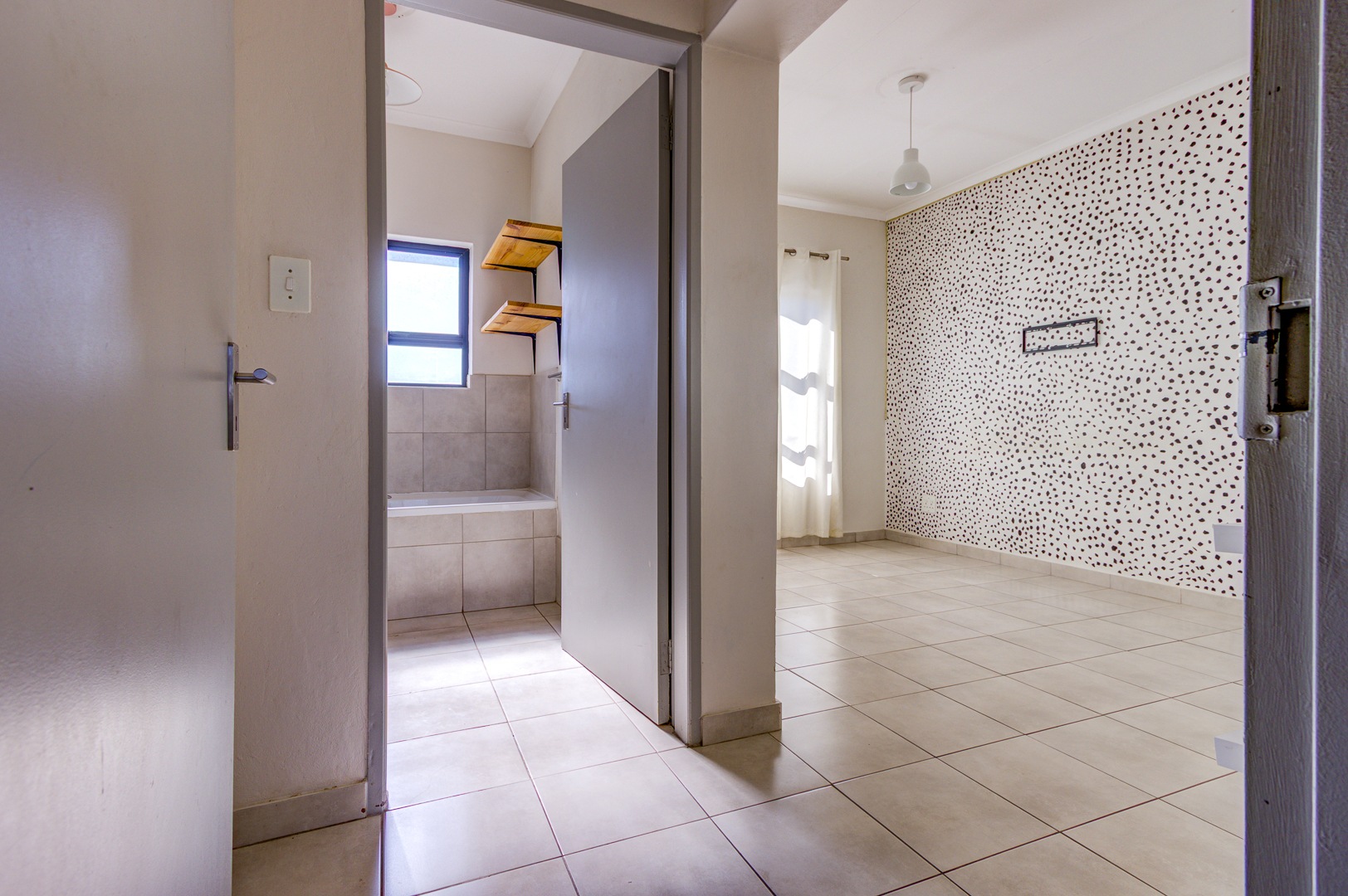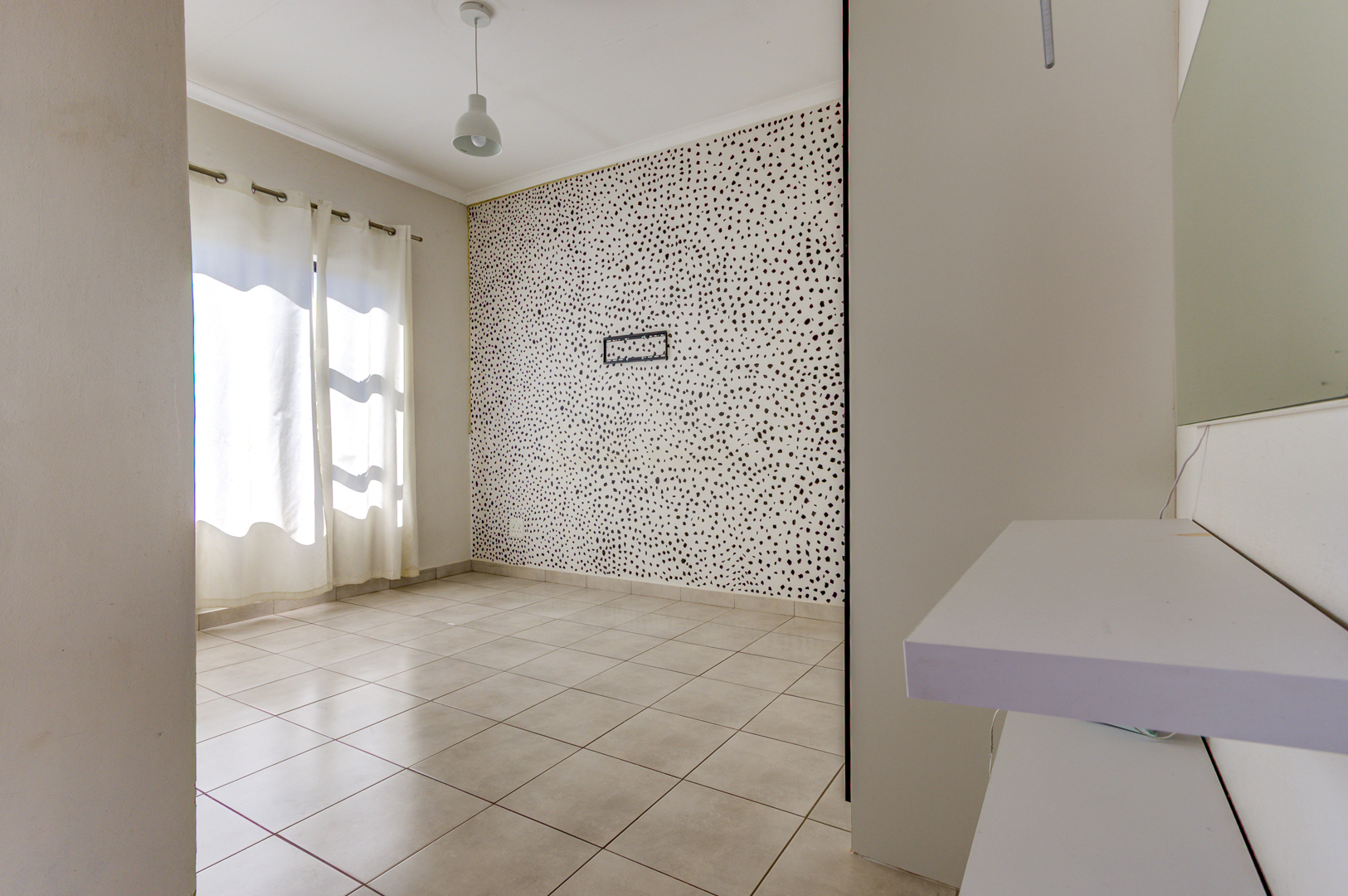 Security is a key feature of this complex, with a gated entrance, a dedicated guardhouse, and 24-hour security ensuring peace of mind. Additional security elements include burglar bars and a totally walled perimeter. The unit also benefits from two dedicated parking bays.