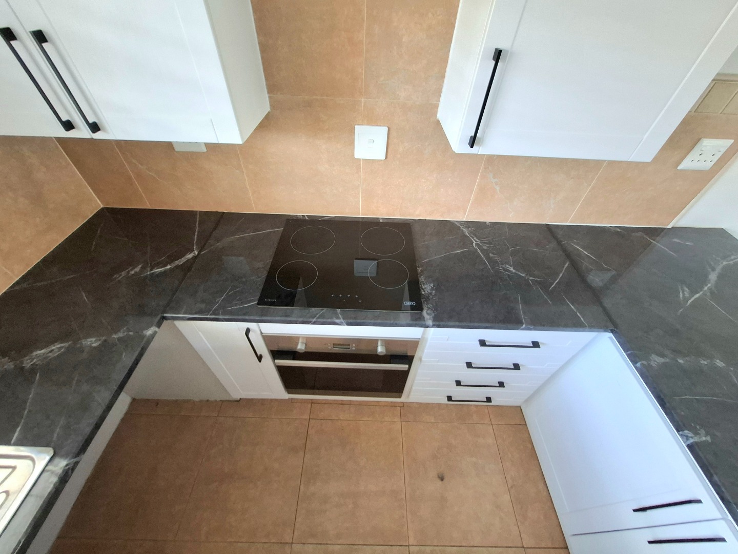 This meticulously presented 2 Bedroom, 1 Bathroom residence offers an exceptional opportunity within the esteemed Norton Park Retirement Village in Benoni, South Africa. Spanning 81.00 sqm of refined living space, this property is designed for comfort and convenience. The interior boasts a contemporary open plan layout, seamlessly integrating the living area and a modern kitchen. The kitchen is appointed with sleek white cabinetry, dark marble effect countertops, a built-in oven, and a stylish breakfast bar illuminated by elegant pendant lighting. Neutral tiled flooring and crown molding extend throughout, creating a cohesive and sophisticated aesthetic.