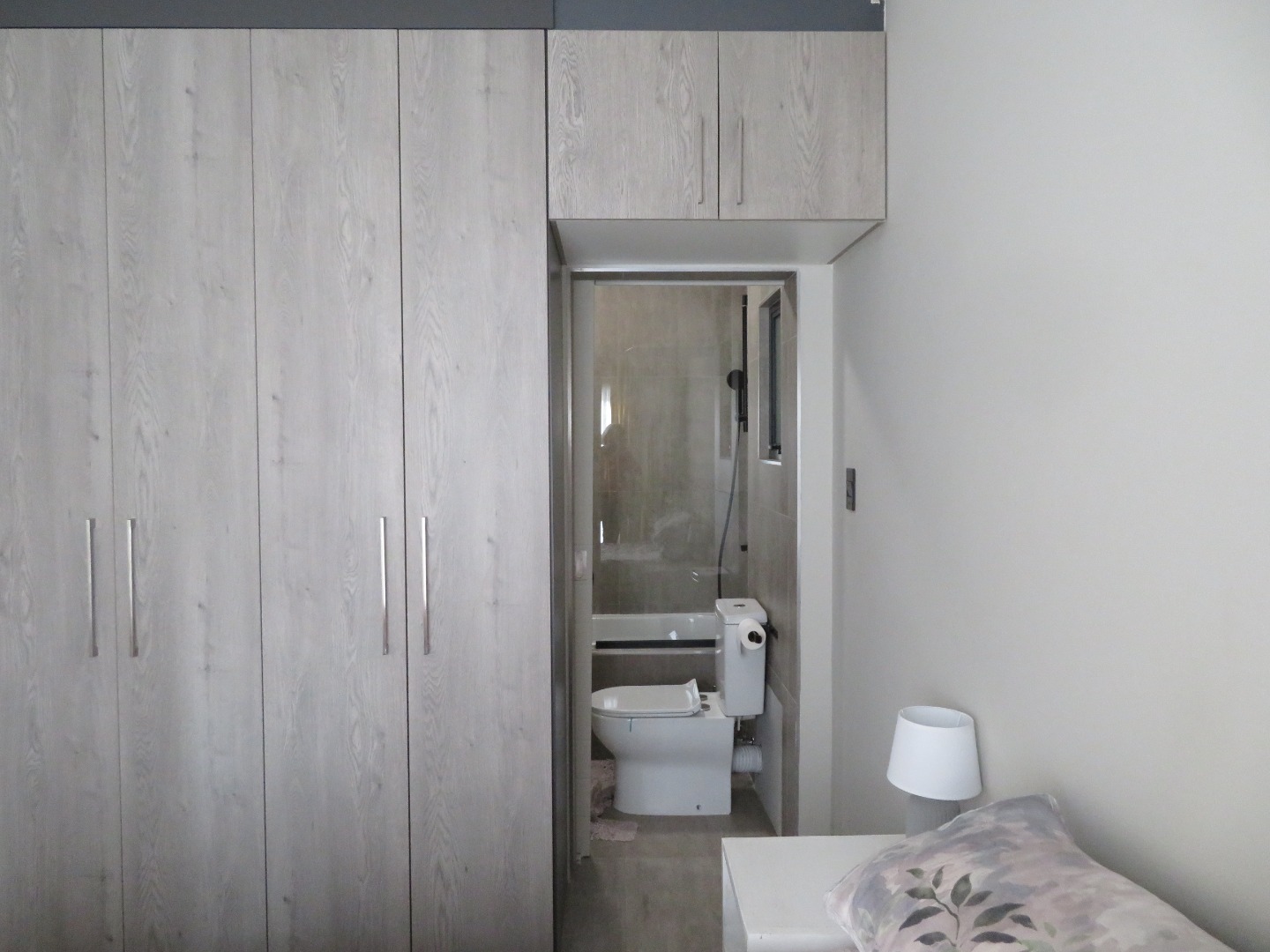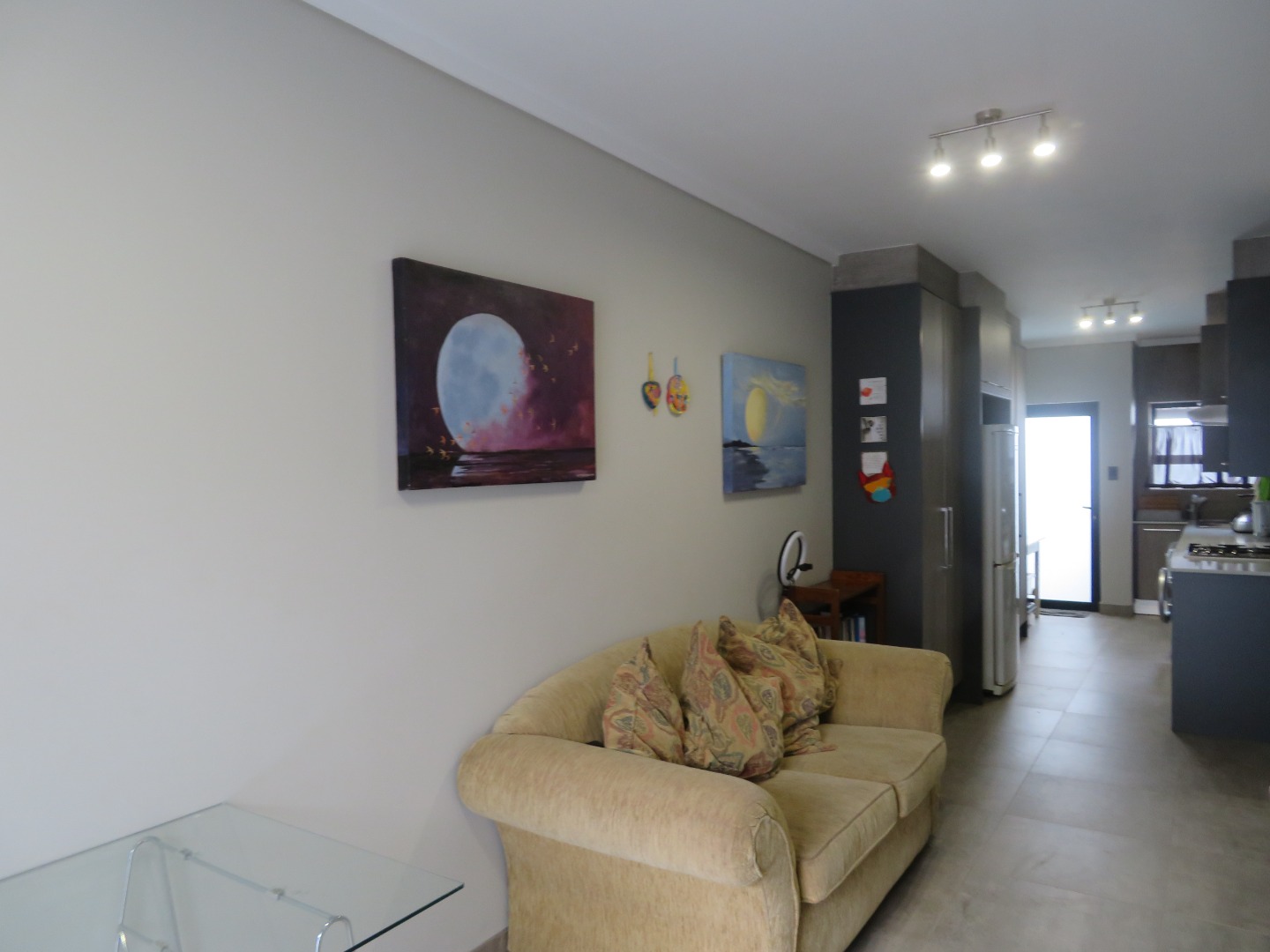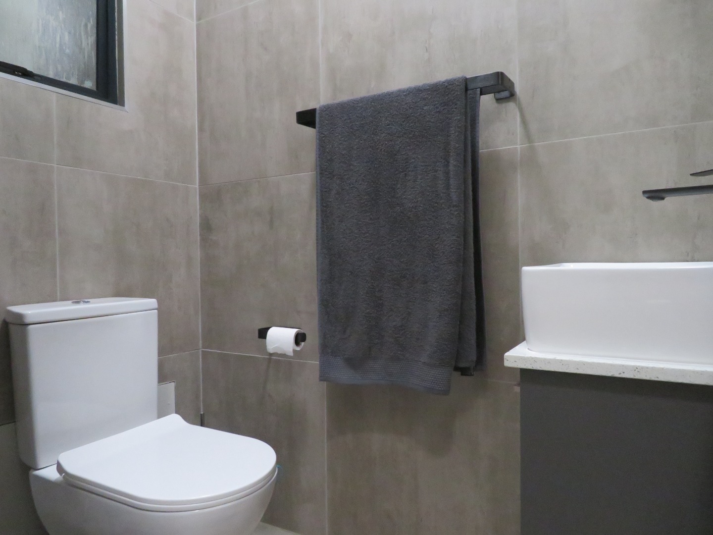 Step into contemporary living with this stylish 2-bedroom, 2-bathroom unit located within a secure complex in Rynfield, Benoni. Boasting a modern exterior aesthetic with clean lines, dark-framed windows, and a sophisticated blend of white and dark grey textured walls, this residence offers immediate kerb appeal. The sheltered entrance leads into a thoughtfully designed 59 sqm interior, featuring an open-plan layout that seamlessly connects the living area with a sleek, modern kitchen. The kitchen is equipped with dark cabinetry and stainless steel appliances, creating a functional and elegant space for daily living. Tiled flooring extends throughout the unit, ensuring durability and easy maintenance. Natural light floods the living spaces through large sliding glass doors, enhancing the bright and airy ambiance. The two comfortable bedrooms provide private retreats, complemented by two well-appointed bathrooms that continue the home's contemporary design theme. Sheer curtains offer both privacy and a soft diffusion of light, contributing to a serene atmosphere. Beyond the interior, a private outdoor area awaits, featuring a low-maintenance artificial turf section and a tiled patio. This compact yet inviting space is perfect for enjoying quiet moments outdoors or entertaining guests. Security is paramount within this gated community, offering residents peace of mind with 24-hour security, an access gate, and an intercom system. The entire complex is totally walled, providing an added layer of safety. Furthermore, the unit is fibre-ready, ensuring high-speed internet connectivity for all your digital needs. This modern home in Benoni presents an ideal opportunity for those seeking a secure, low-maintenance lifestyle in a well-established area. Key Features: * Modern 2-Bedroom, 2-Bathroom Unit * 59 sqm Floor Size * Contemporary Open-Plan Living * Sleek Kitchen with Dark Cabinetry * Private, Low-Maintenance Patio * Secure Gated Community * 24-Hour Security & Access Control * Fibre Connectivity * Tiled Flooring Throughout