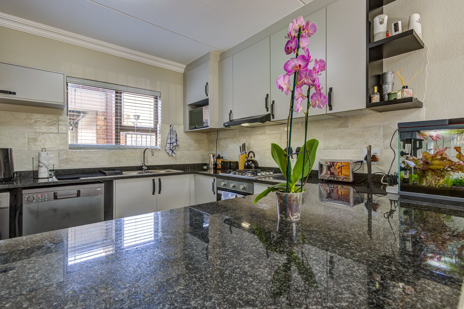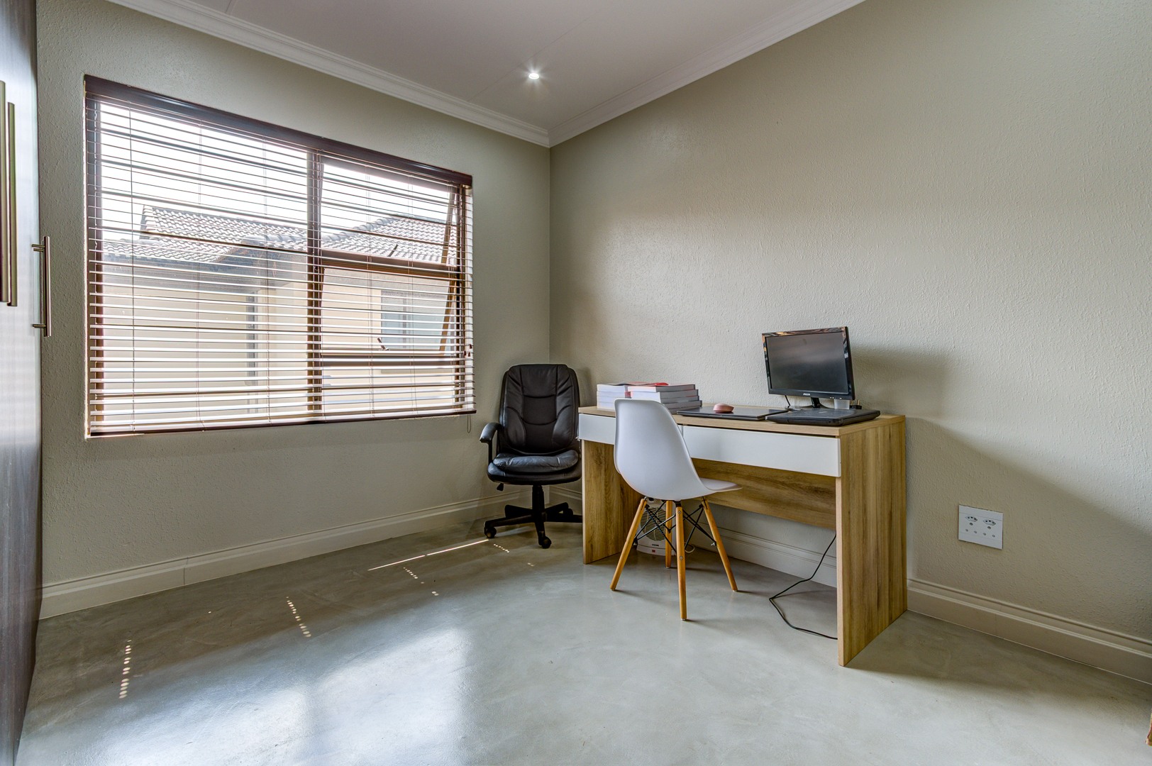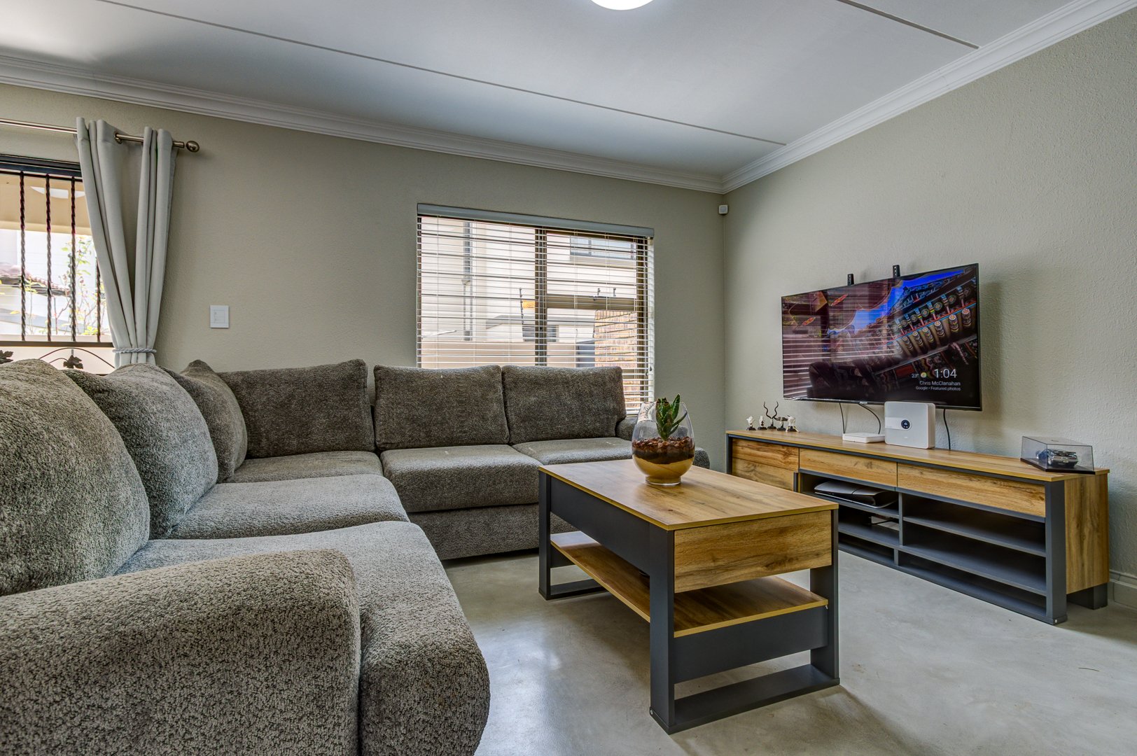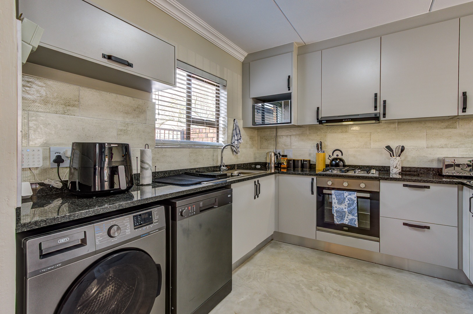 Upstairs you'll find two well sized bedrooms, each offering comfort and privacy. The home boasts 2 well designed bathrooms adding to the luxurious feel. A private garden area provides a touch of greenery, while the double automated garage ensures secure parking with extra storage. A solar geyser provides saving and convenience during load shedding.