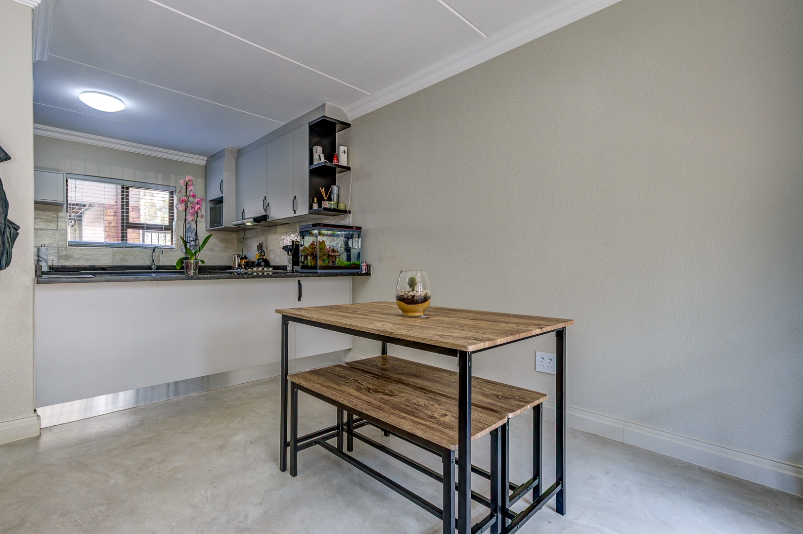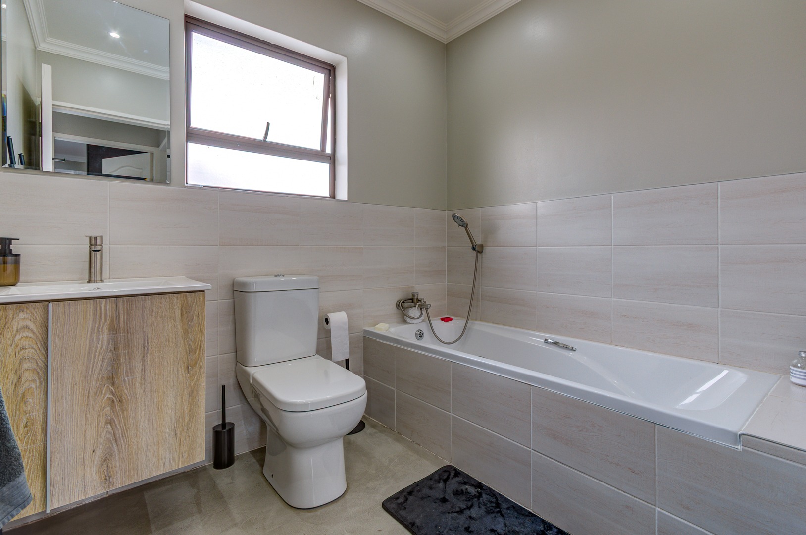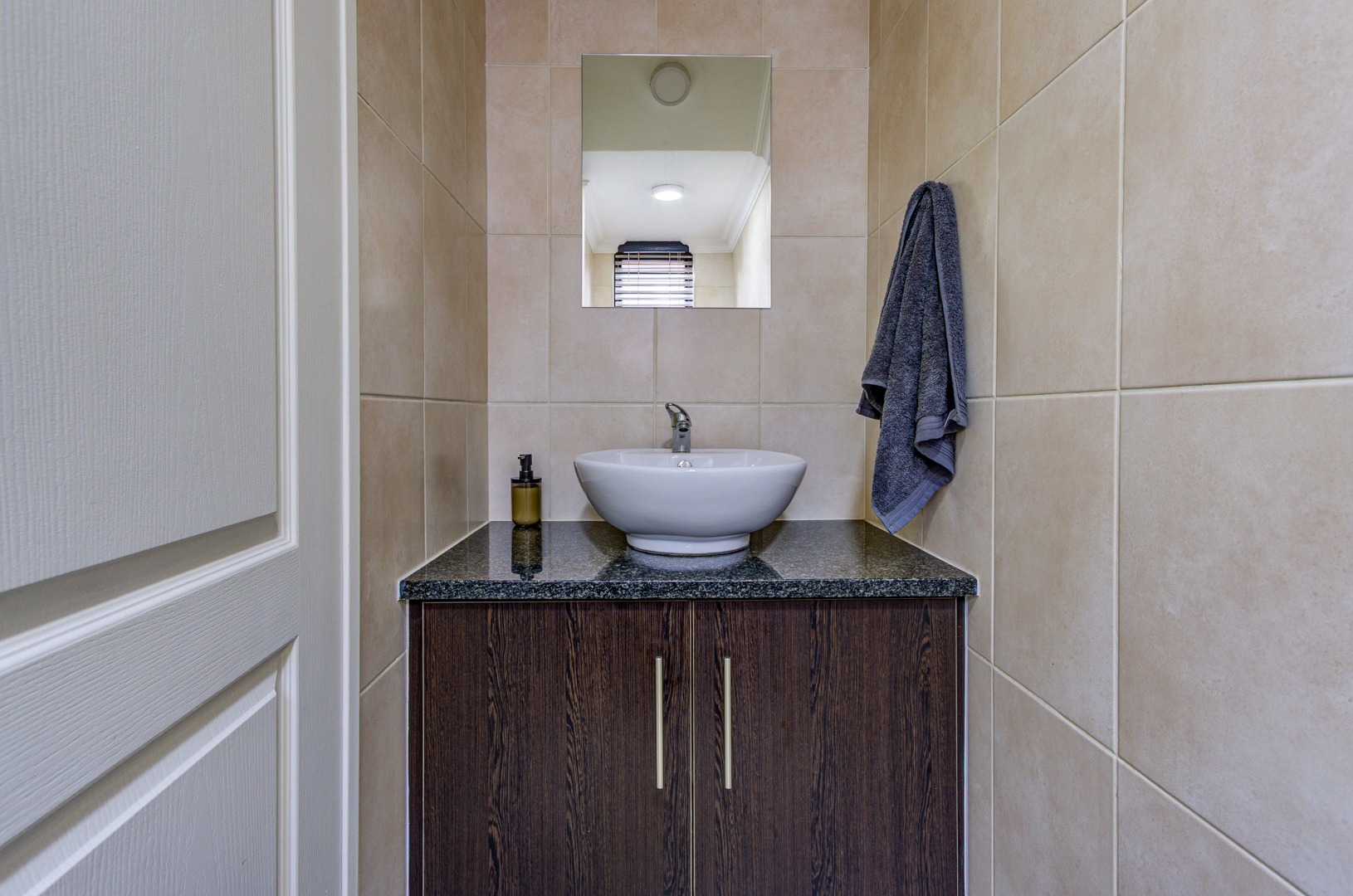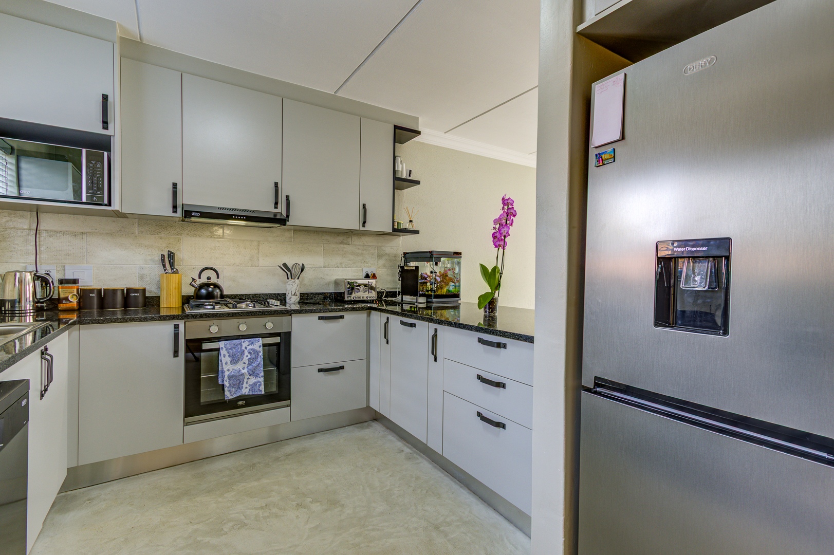 Upstairs you'll find two well sized bedrooms, each offering comfort and privacy. The home boasts 2 well designed bathrooms adding to the luxurious feel. A private garden area provides a touch of greenery, while the double automated garage ensures secure parking with extra storage. A solar geyser provides saving and convenience during load shedding.