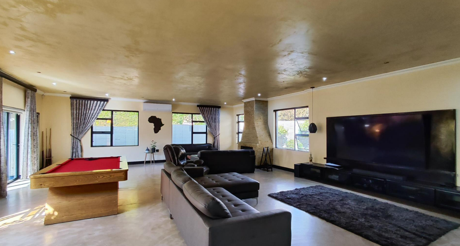 Step inside to discover a spacious 630 sqm floor plan designed for seamless open-plan living and entertaining. The integrated lounge, dining, and recreation areas are bathed in natural light from ample windows, creating an inviting atmosphere. This versatile space boasts a fireplace, a large wall-mounted TV, and a pool table, ensuring year-round enjoyment within the dedicated family TV room.