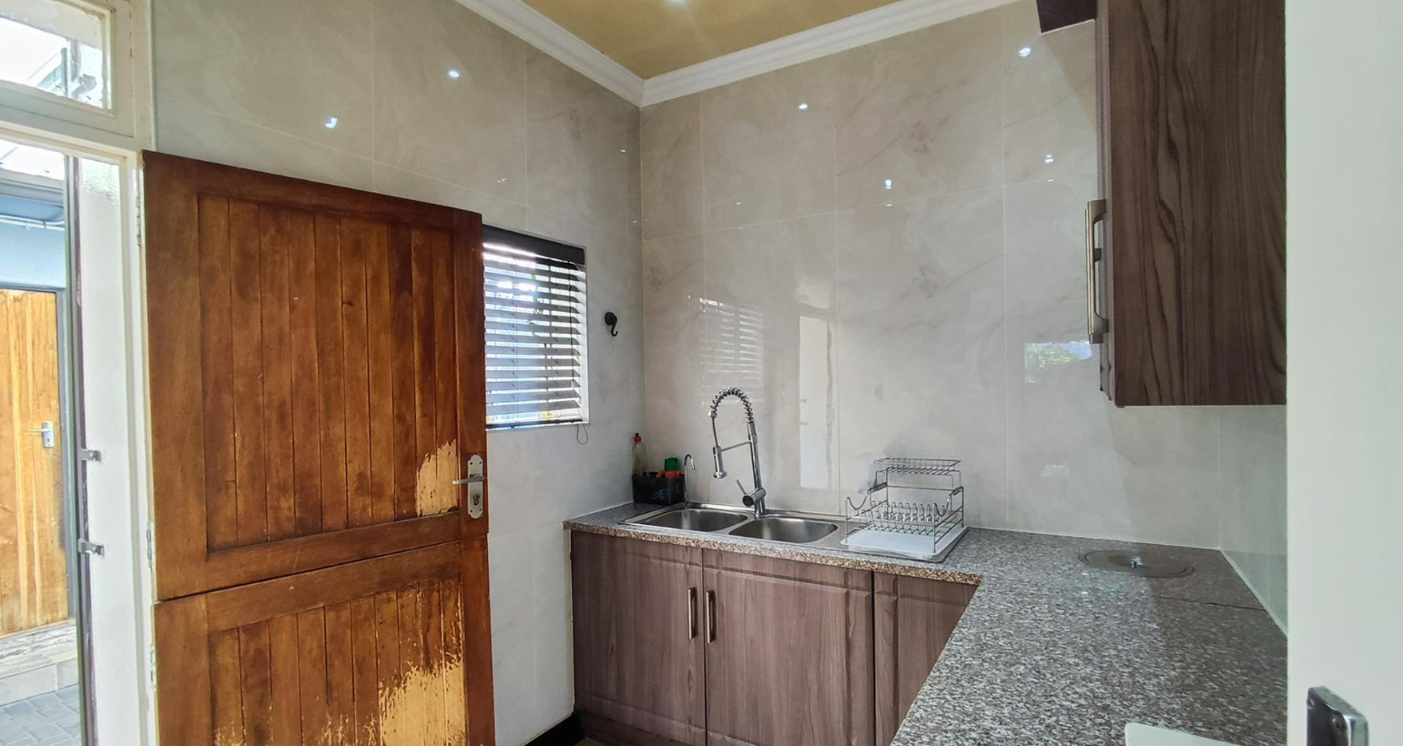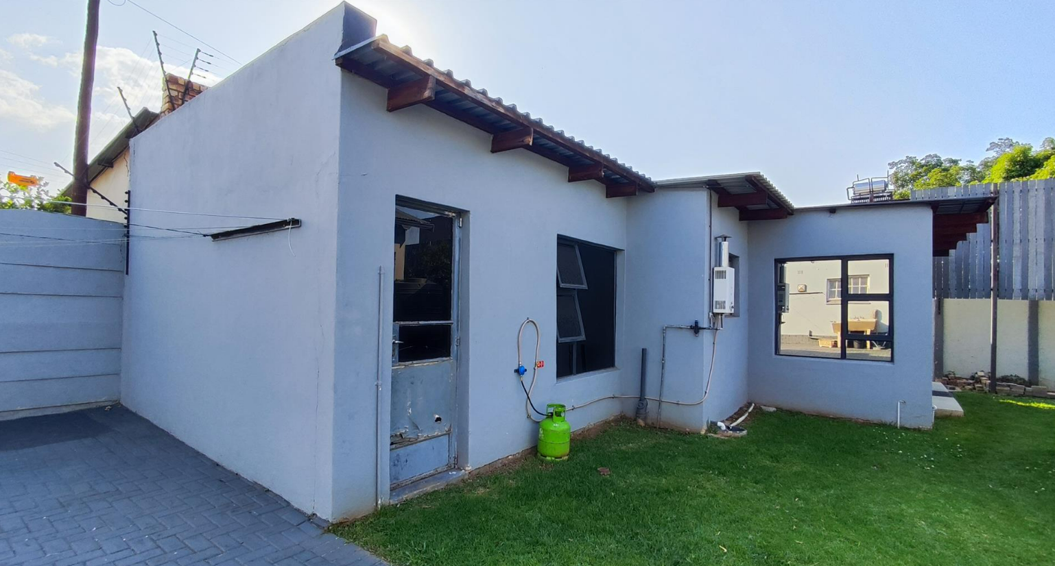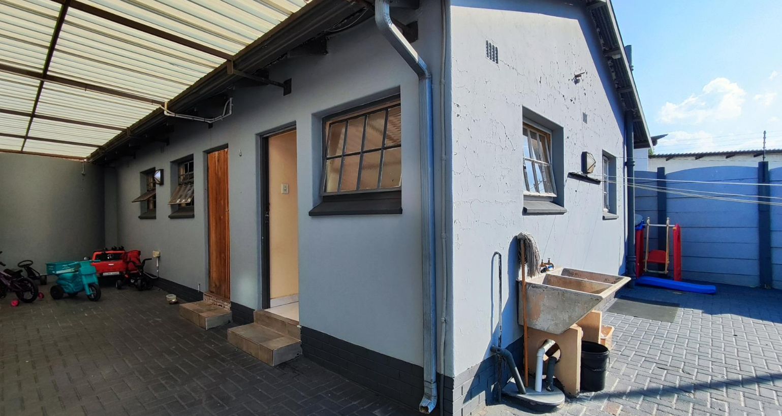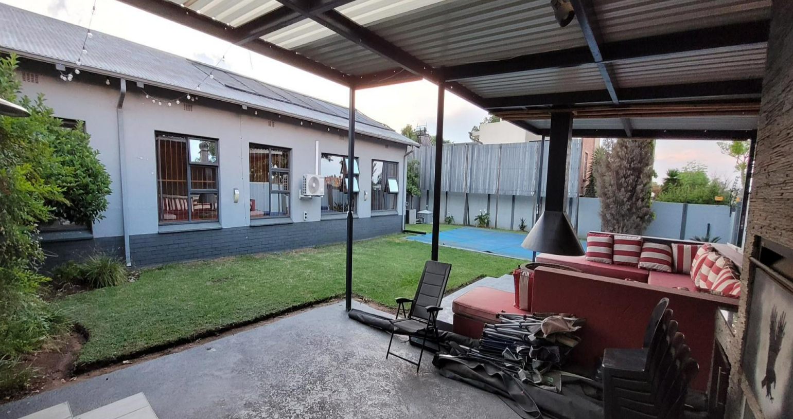 This modern residential property, located in the desirable Rynfield suburb of Benoni, South Africa, offers exceptional living on a generous 1170 sqm erf. The home immediately impresses with its well-maintained, beautifully landscaped garden, featuring mature palm trees and a lush lawn. A contemporary grey exterior is complemented by a decorative water feature, enhancing its inviting kerb appeal.
