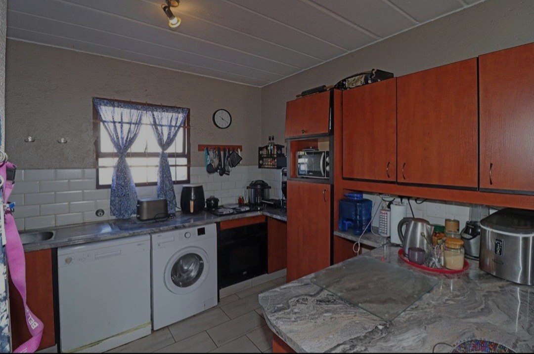 Discover this inviting 3-bedroom, 2-bathroom residence nestled within a secure complex in Rynfield, Benoni. Spanning 79 square meters, this home offers a practical open-plan layout designed for comfortable living. The main living area features durable laminate flooring and flows seamlessly into the well-appointed kitchen. Here, you'll find ample storage cabinetry, a functional breakfast bar perfect for casual dining, and space for essential appliances, creating a cohesive and engaging central hub for daily activities. The property comprises three comfortable bedrooms, providing private retreats for residents. At least one bedroom benefits from convenient built-in white wardrobes, offering practical storage solutions. The two bathrooms are designed to serve the household efficiently, ensuring convenience and privacy for all occupants. Step outside to a private outdoor oasis, featuring a covered patio ideal for entertaining or relaxation, complete with space for a grill. The generous garden boasts mature trees and lush greenery, offering natural shade and a tranquil environment. Enjoy the added luxury of a swimming pool, perfect for cooling off on warm South African days. This pet-friendly property allows your furry companions to enjoy the outdoor space too. Security is paramount, with this home situated within a security complex benefiting from 24-hour security, electric fencing, burglar bars, and a security gate, all within a totally walled perimeter for enhanced peace of mind. Modern connectivity is assured with fibre internet availability. This sought-after Benoni suburb is known for its family-friendly atmosphere and convenient access to local amenities. Key Features: * 3 Bedrooms, 2 Bathrooms * Open-plan Living & Kitchen * Private Garden with Pool * Covered Patio * Secure Complex with 24-Hour Security * Electric Fencing & Burglar Bars * Fibre Ready * Pet-Friendly
