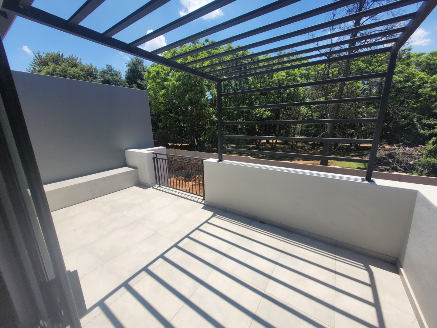 The home features three comfortable bedrooms and 3.5 bathrooms, including three en-suite bathrooms and a guest toilet, ensuring convenience and privacy. Outdoor living is enhanced by a private patio and a balcony, offering versatile spaces for relaxation or entertaining, complete with a built-in braai and garden.