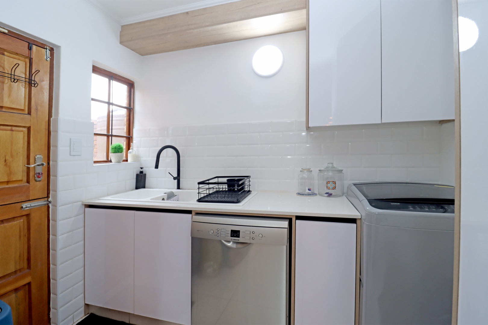 Security is paramount within this complex, offering 24-hour security, an access gate, electric fencing, burglar bars, and security gates for peace of mind. The property is also equipped with modern conveniences including fibre connectivity, 6 solar panels, a battery inverter with 2 backup batteries, and water tanks, promoting sustainable living.