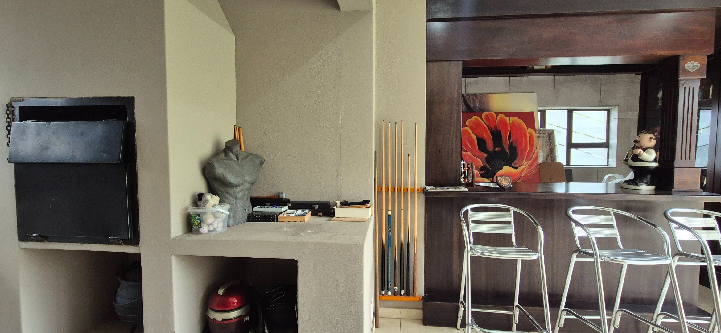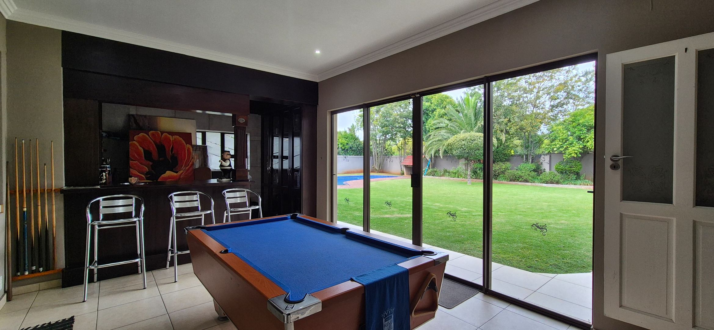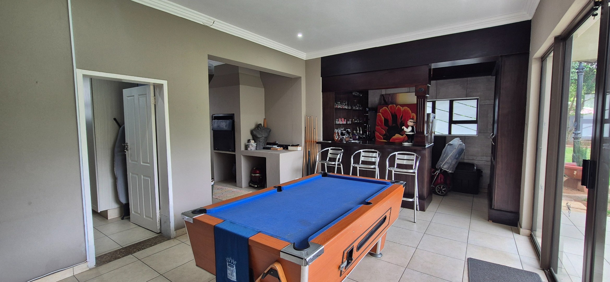 Billiard room with built-in bar and indoor braai