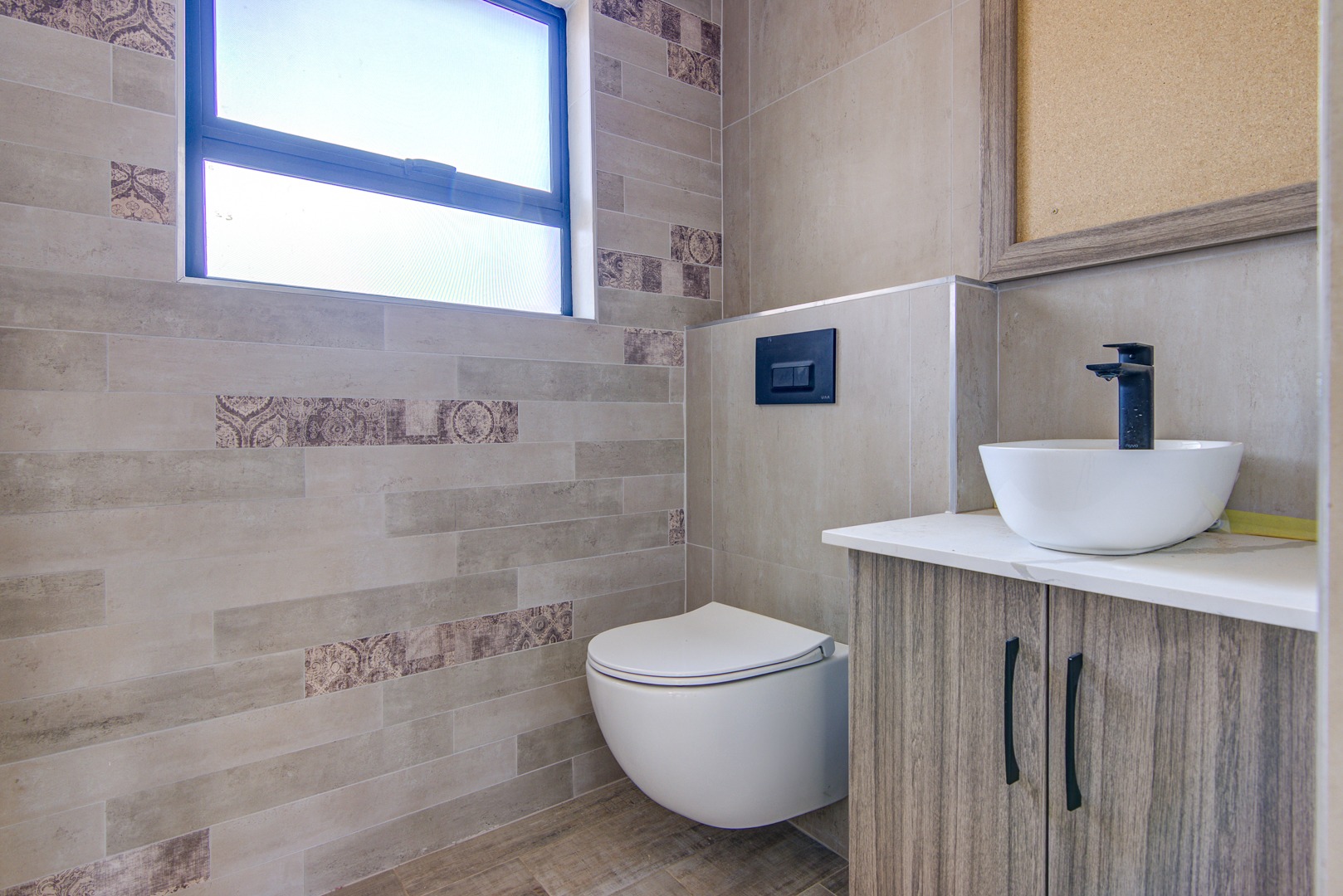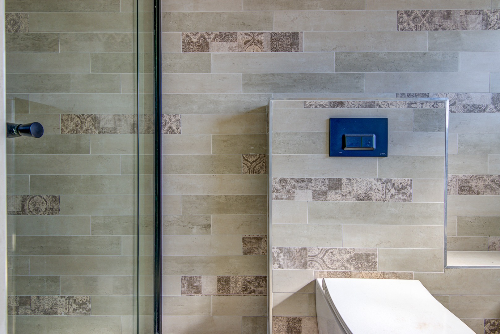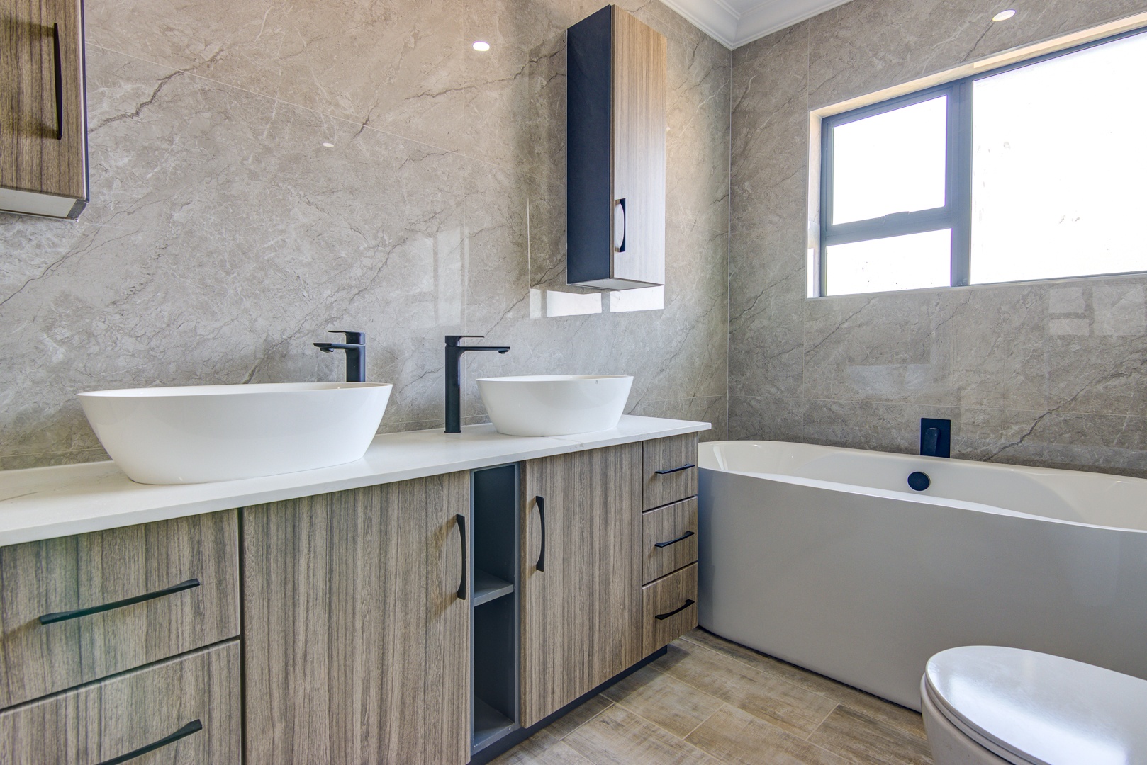 Down lights complete the picture. Guest bathroom.