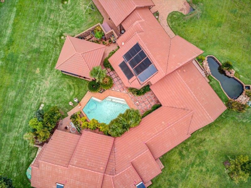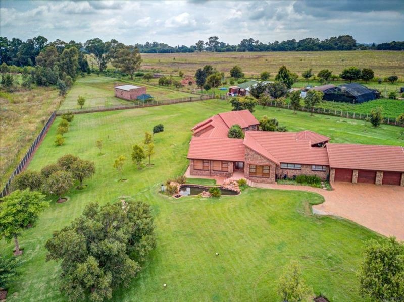 Nestled within the tranquil expanse of Vlakfontein, Benoni, this distinguished residential property offers an unparalleled country living experience. The sprawling single-story residence, characterized by its robust brick exterior and classic red-tiled roof, presents an impressive kerb appeal, set amidst meticulously manicured lawns and mature landscaping on a substantial 10,800 square metre erf. A long, private paved driveway leads to a triple garage, ensuring ample secure parking and a grand entrance. Internally, the home is thoughtfully designed for sophisticated living, featuring four spacious bedrooms and three well-appointed bathrooms, including a luxurious en-suite. The layout encompasses two expansive lounges, a dedicated dining room, and a functional kitchen complemented by a pantry. An integrated study provides an ideal space for professional pursuits, while the entrance hall creates a welcoming first impression. The open-plan design fosters a seamless flow throughout the primary living areas. Outdoor amenities are extensive, catering to both relaxation and entertainment. A private swimming pool invites leisurely recreation, complemented by a lapa for shaded gatherings. The vast garden, enhanced by paving and a decorative pond, offers scenic views and a serene environment. Practical features include a borehole, water tanks, and a solar geyser, promoting self-sufficiency and reduced utility costs. Security is paramount, with an alarm system, access gate, and burglar bars providing peace of mind. This property represents a rare opportunity to acquire a substantial estate combining privacy, comfort, and rural charm. Vlakfontein, situated in Benoni, offers a serene rural lifestyle while maintaining convenient access to urban amenities. This area is highly sought after for its spacious properties and tranquil atmosphere, ideal for those desiring a peaceful retreat. Key Features: * Four Bedrooms, Three Bathrooms (One En-suite) * Two Lounges, Dining Room, Kitchen with Pantry * Dedicated Study and Entrance Hall * Private Swimming Pool and Lapa * Triple Garage and Extensive Paved Driveway * 10,800 sqm Erf with Manicured Gardens and Pond * Borehole, Water Tanks, and Solar Geyser * Alarm System, Access Gate, and Burglar Bars