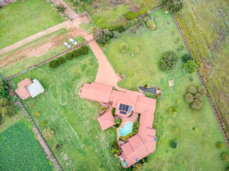 Nestled within the tranquil expanse of Vlakfontein, Benoni, this distinguished residential property offers an unparalleled country living experience. The sprawling single-story residence, characterized by its robust brick exterior and classic red-tiled roof, presents an impressive kerb appeal, set amidst meticulously manicured lawns and mature landscaping on a substantial 10,800 square metre erf. A long, private paved driveway leads to a triple garage, ensuring ample secure parking and a grand entrance. Internally, the home is thoughtfully designed for sophisticated living, featuring four spacious bedrooms and three well-appointed bathrooms, including a luxurious en-suite. The layout encompasses two expansive lounges, a dedicated dining room, and a functional kitchen complemented by a pantry. An integrated study provides an ideal space for professional pursuits, while the entrance hall creates a welcoming first impression. The open-plan design fosters a seamless flow throughout the primary living areas. Outdoor amenities are extensive, catering to both relaxation and entertainment. A private swimming pool invites leisurely recreation, complemented by a lapa for shaded gatherings. The vast garden, enhanced by paving and a decorative pond, offers scenic views and a serene environment. Practical features include a borehole, water tanks, and a solar geyser, promoting self-sufficiency and reduced utility costs. Security is paramount, with an alarm system, access gate, and burglar bars providing peace of mind. This property represents a rare opportunity to acquire a substantial estate combining privacy, comfort, and rural charm. Vlakfontein, situated in Benoni, offers a serene rural lifestyle while maintaining convenient access to urban amenities. This area is highly sought after for its spacious properties and tranquil atmosphere, ideal for those desiring a peaceful retreat. Key Features: * Four Bedrooms, Three Bathrooms (One En-suite) * Two Lounges, Dining Room, Kitchen with Pantry * Dedicated Study and Entrance Hall * Private Swimming Pool and Lapa * Triple Garage and Extensive Paved Driveway * 10,800 sqm Erf with Manicured Gardens and Pond * Borehole, Water Tanks, and Solar Geyser * Alarm System, Access Gate, and Burglar Bars