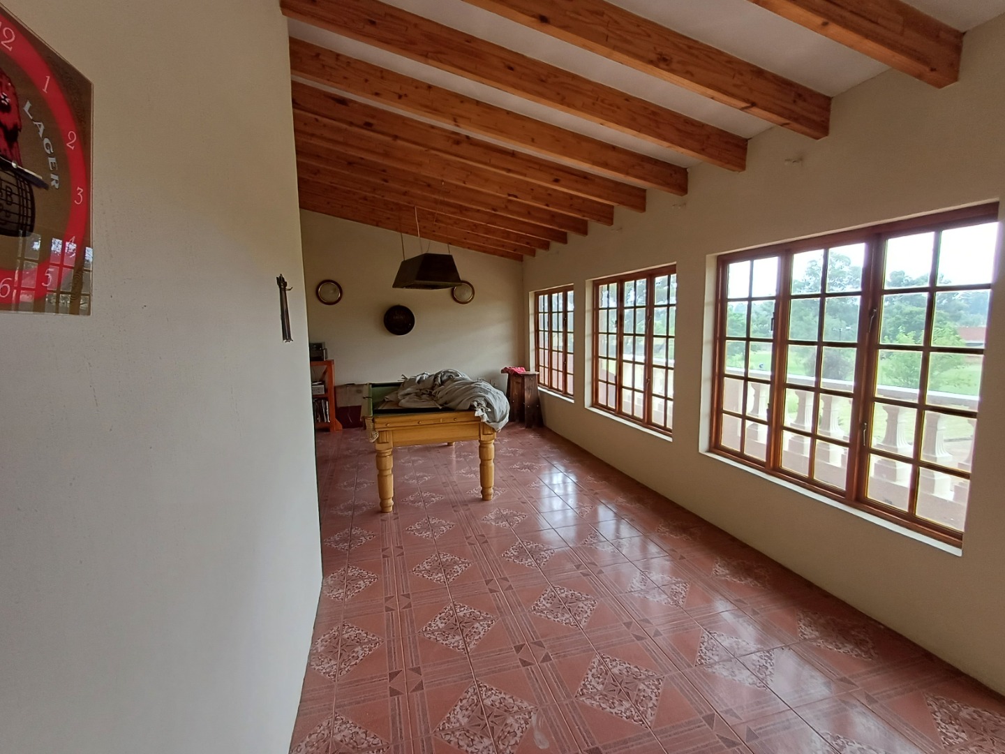 Nestled in the serene agricultural holdings of Zesfontein AH, Benoni, this expansive residential property offers a unique opportunity for versatile living and investment. Spanning an impressive 48188 square metres, this country living estate provides a tranquil escape with ample space and privacy, ideal for large families, multi-generational living, or those seeking a property with significant potential for guest accommodation or a lifestyle farm. The property immediately impresses with its durable brick exterior and well-maintained tiled roof, presenting a classic and robust kerb appeal. The approach features a well-defined driveway leading to an integrated double garage, part of the extensive 11-garage capacity available on the premises, ensuring abundant parking and storage solutions. Surrounding the residence are meticulously kept garden areas and expansive, treed lawns, creating a picturesque and peaceful environment perfect for outdoor activities and relaxation. Mature trees provide natural shade and enhance the overall aesthetic, contributing to a truly tranquil setting. Inside, the residence boasts an exceptional layout designed for comfort and flexibility, featuring a remarkable 12 bedrooms and 9 bathrooms, including 4 en-suite facilities. The living spaces are equally generous, with 6 distinct lounges and 4 dining rooms, offering numerous options for entertaining, family gatherings, or creating separate living quarters. Tiled flooring throughout ensures easy maintenance, while large glass doors invite abundant natural light, creating bright and airy interiors. Some living areas benefit from vaulted ceilings, adding to the sense of space and grandeur, complemented by security bars on windows and doors for enhanced peace of mind. The property is equipped with 4 modern kitchens, each thoughtfully designed to cater to diverse culinary needs. These kitchens feature stylish light grey shaker-style cabinetry, sleek white countertops, and practical central islands that provide additional workspace. Integrated appliances, including double ovens and built-in gas hobs, ensure a contemporary cooking experience. Wood-look flooring adds warmth, while large windows flood the spaces with natural light. While some utility areas may include visible washing machines, the overall design prioritises functionality and modern aesthetics. Bedrooms are designed for comfort and privacy, with features such as large windows that allow for ample natural light. Specific rooms offer unique touches like fabric canopies over beds, wall-mounted televisions, and charming bay windows with built-in seating and storage, adding character and practicality. The sheer number of bedrooms and bathrooms underscores the property's capacity for accommodating a large household or multiple independent living arrangements, aligning perfectly with its dual living classification. This substantial property in Zesfontein AH, Benoni, represents a rare find, combining extensive living spaces with the peace and quiet of country living. Its generous erf size and numerous amenities make it an ideal choice for those seeking a versatile home with significant potential. Explore the possibilities this unique offering presents. Key Features: * 12 Spacious Bedrooms * 9 Bathrooms (4 En-suite) * 4 Modern Kitchens * 6 Generous Lounges * 4 Dedicated Dining Rooms * 11 Garages for Ample Parking * Expansive 48188 sqm Erf Size * Durable Brick Exterior with Tiled Roof * Large, Treed Lawns and Gardens * Ideal for Country Living and Dual Living
