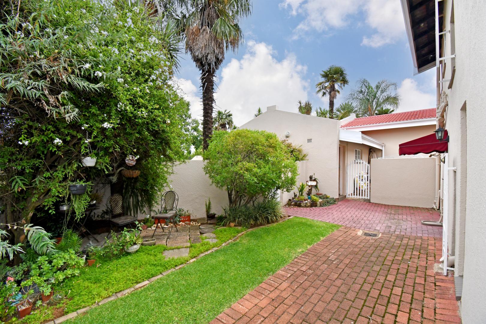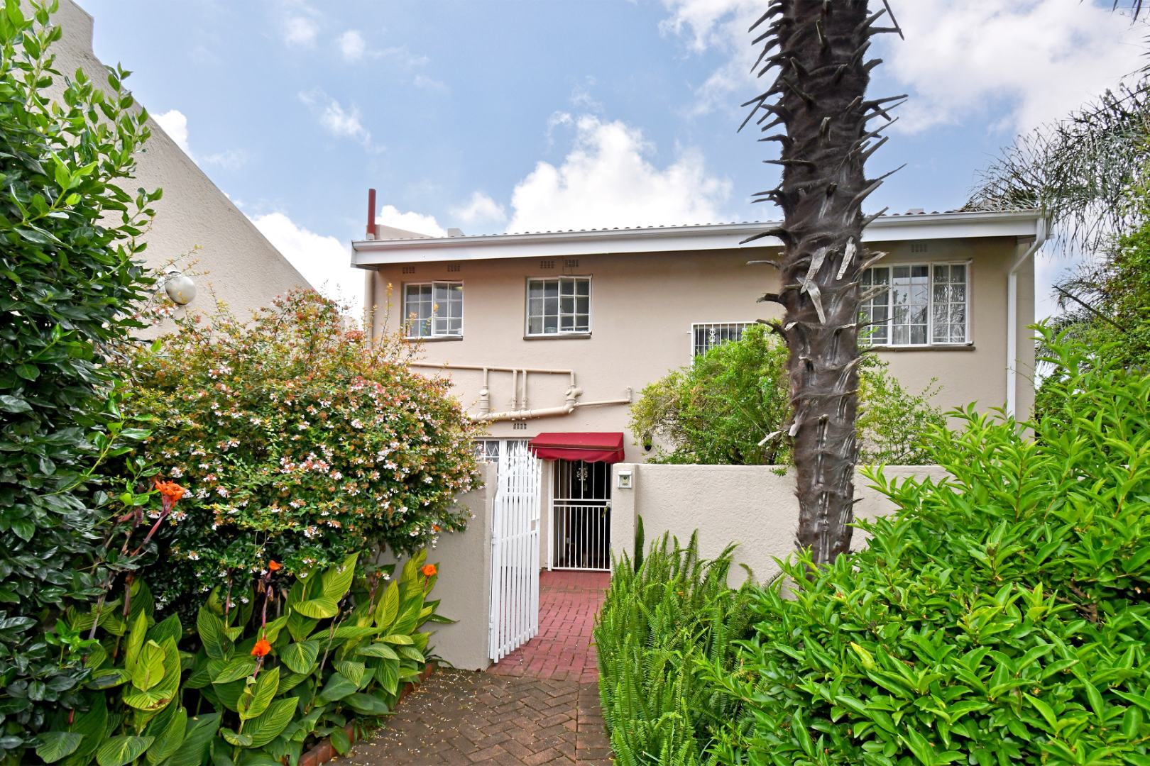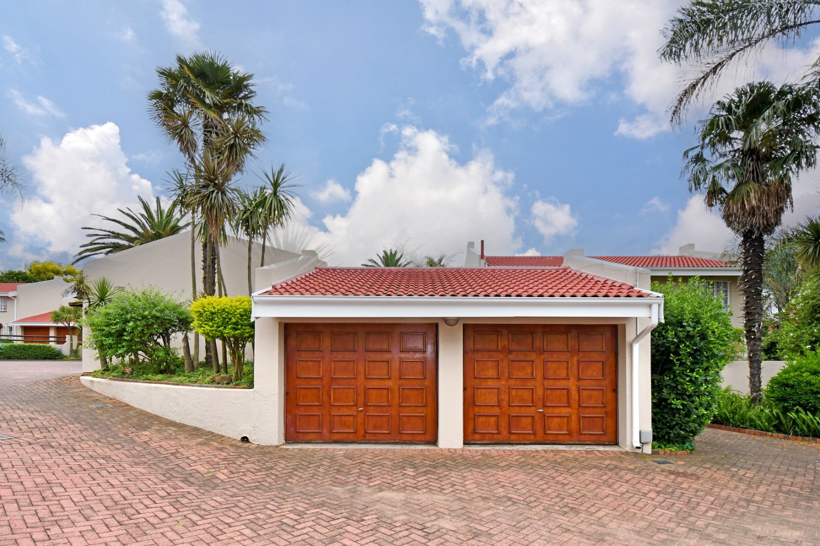 Discover this inviting duplex family home located in the desirable Atlasville suburb of Boksburg. The property immediately impresses with its well-maintained exterior, featuring a lush, mature garden, a welcoming brick pathway, and attractive dual wooden garage doors. A charming red tile roof adds to its kerb appeal, creating a warm first impression for this residential sale opportunity.