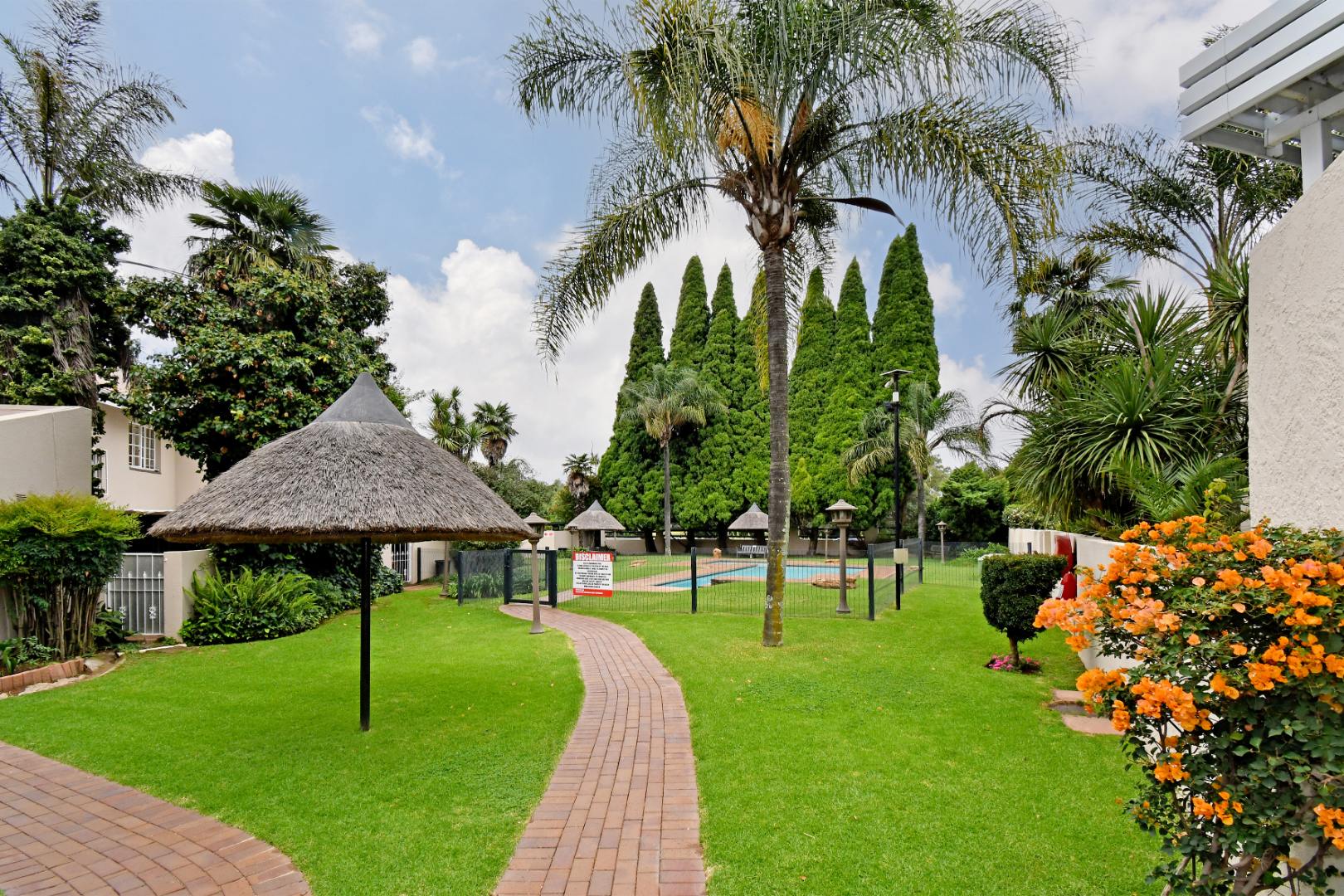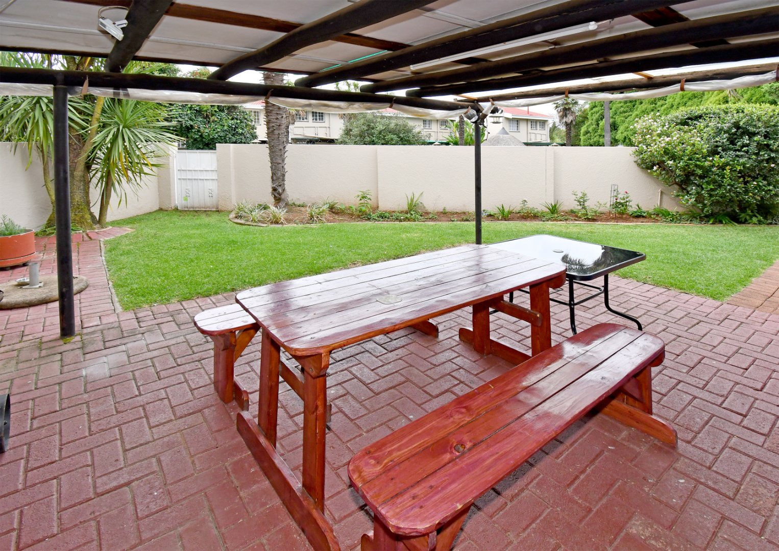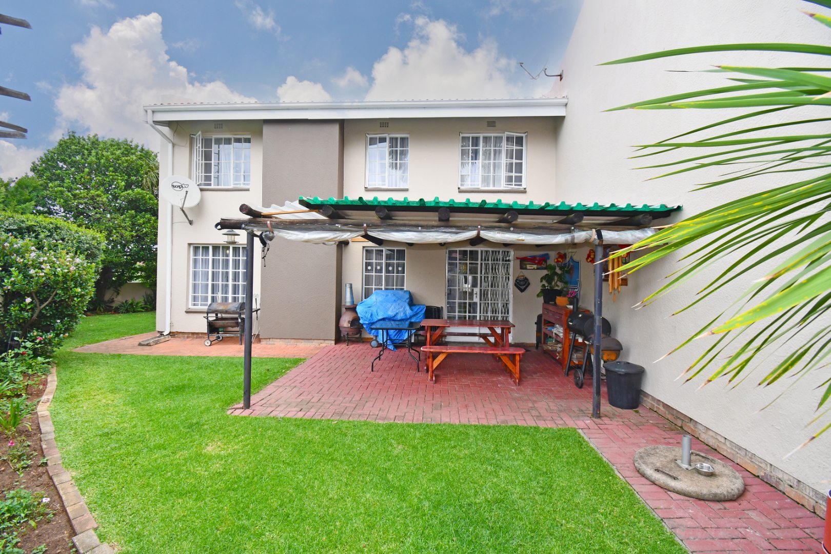Discover this inviting duplex family home located in the desirable Atlasville suburb of Boksburg. The property immediately impresses with its well-maintained exterior, featuring a lush, mature garden, a welcoming brick pathway, and attractive dual wooden garage doors. A charming red tile roof adds to its kerb appeal, creating a warm first impression for this residential sale opportunity.