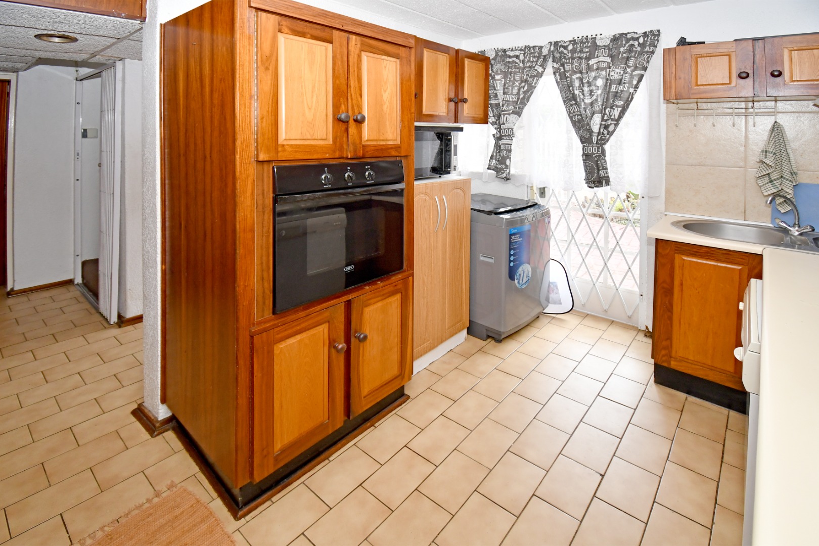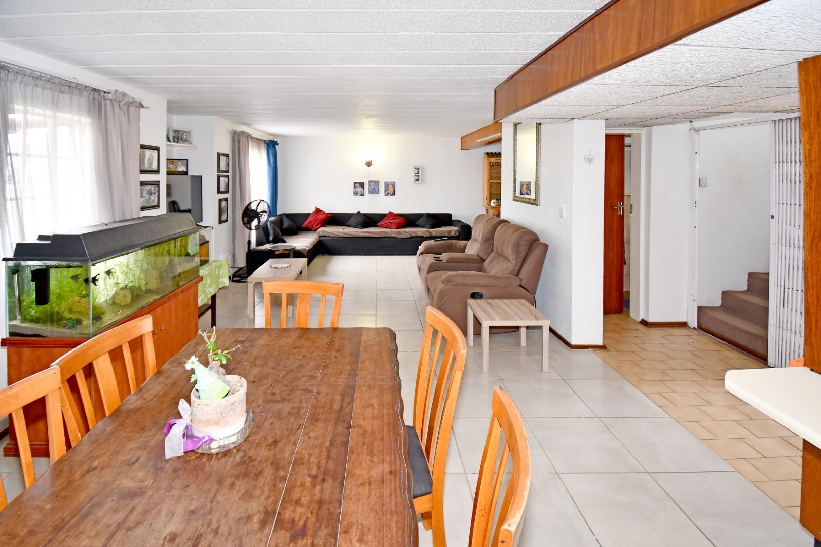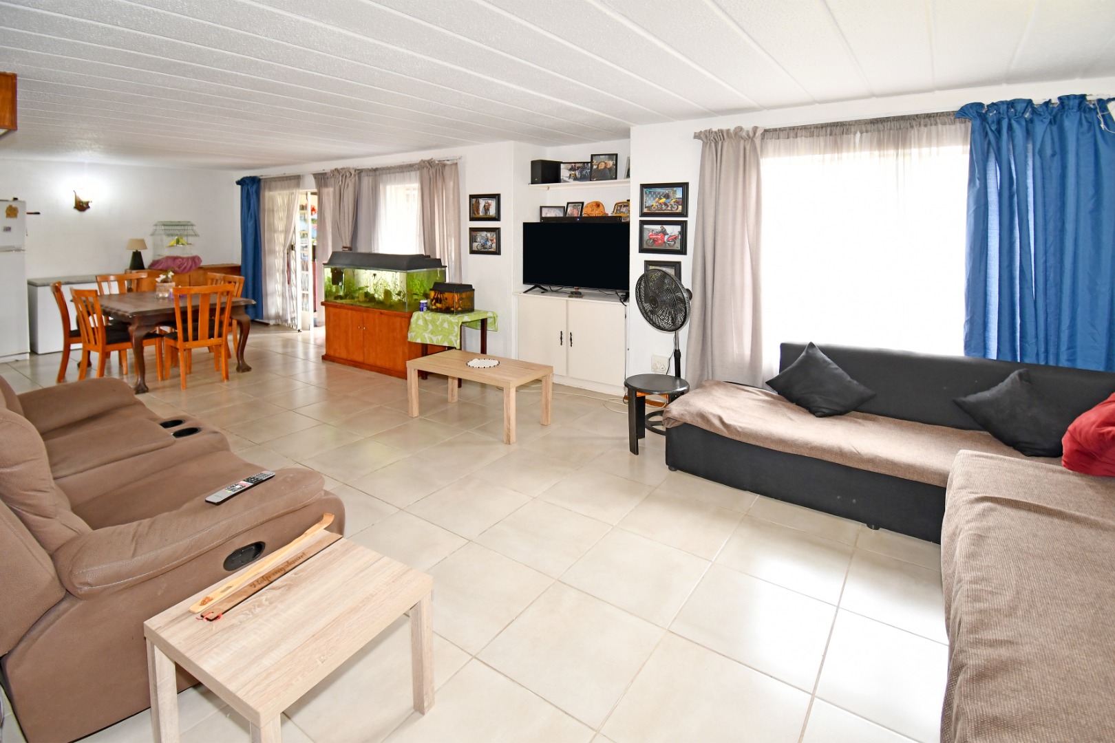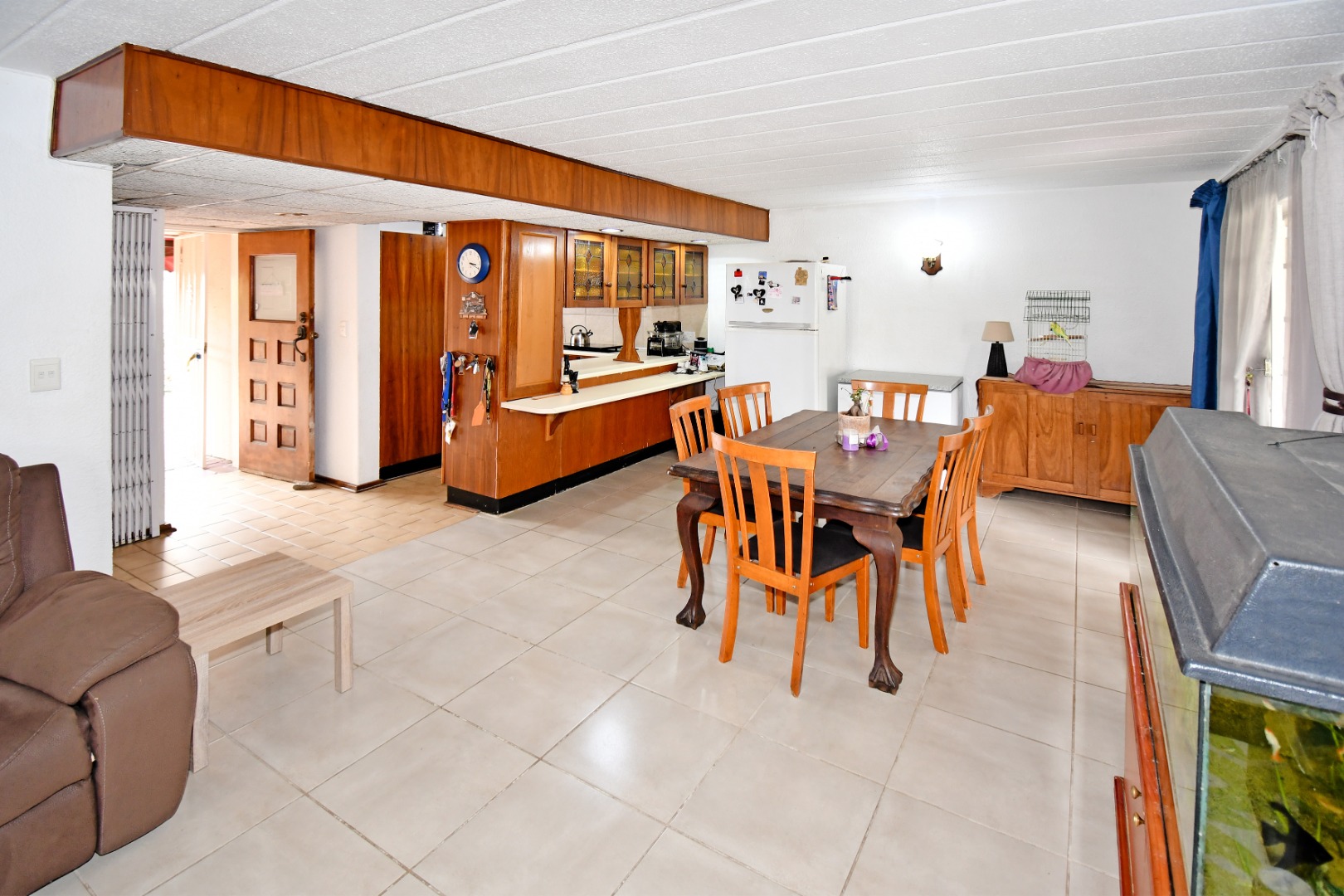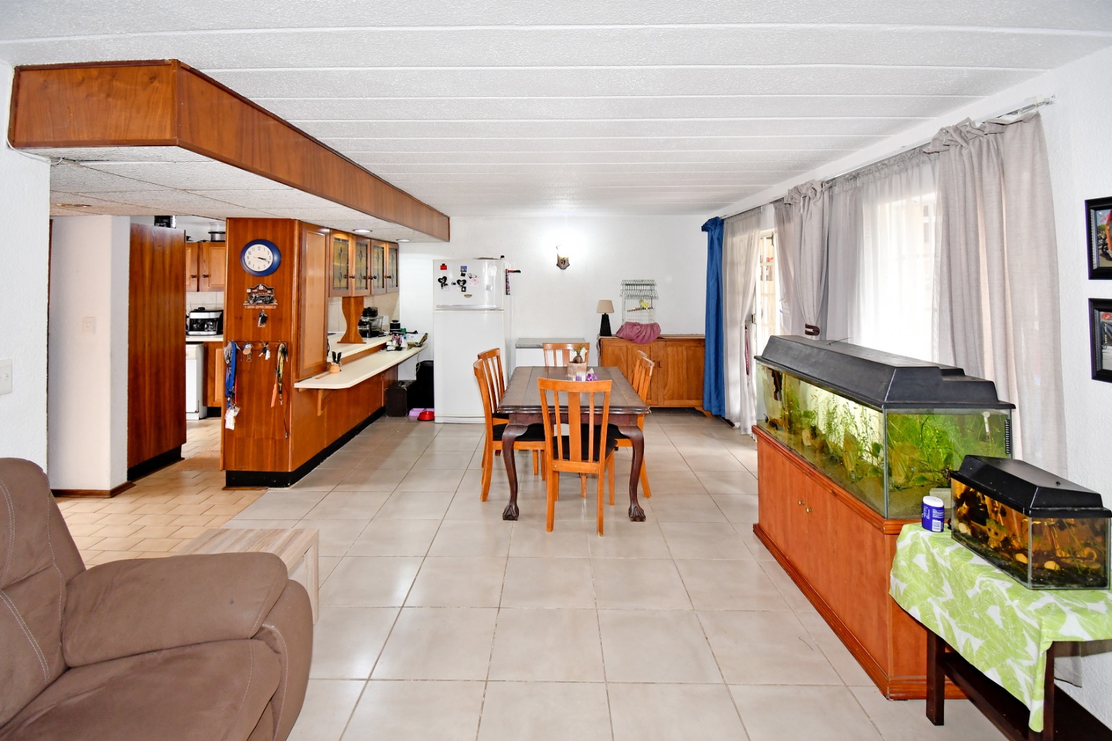 Step inside to an open-plan layout designed for comfortable living, connecting the lounge, dining area, and kitchen. The interior features durable tiled flooring throughout, offering practicality and ease of maintenance. The functional kitchen provides ample wooden cabinet storage, catering to everyday needs. This 133 sqm home offers a practical flow for family life and entertaining.