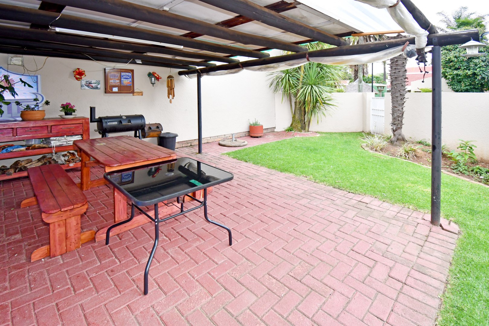 Security is a priority, with features including an alarm system, electric fencing, burglar bars, and a security gate, ensuring peace of mind within a totally walled perimeter. The property is also fibre-ready, providing high-speed internet connectivity essential for modern living. Pets are allowed, making this a perfect home for animal lovers.