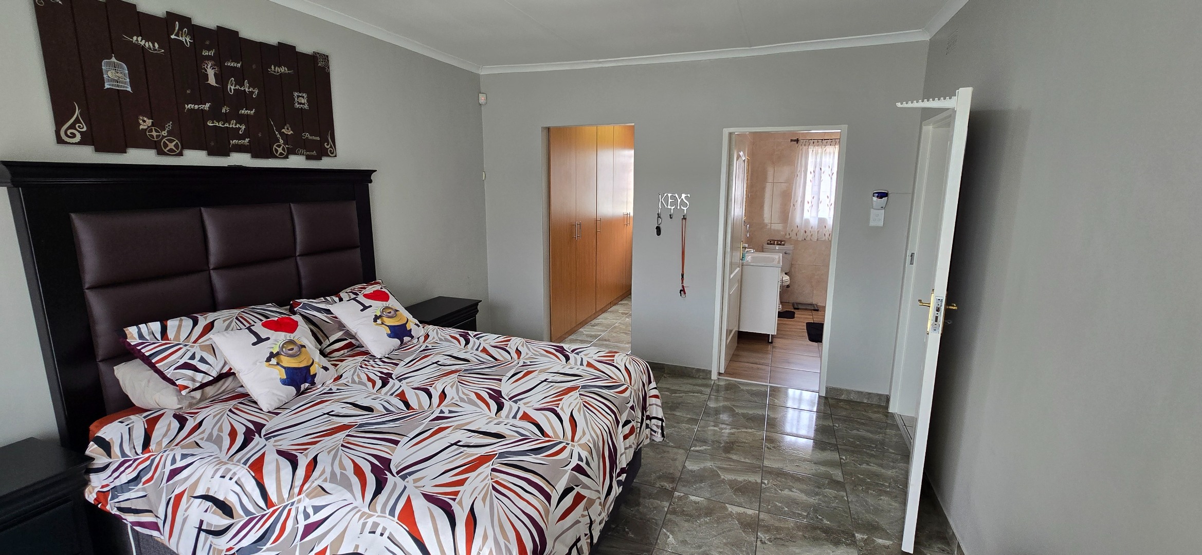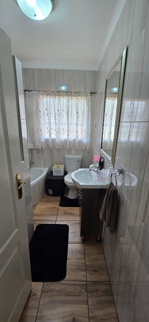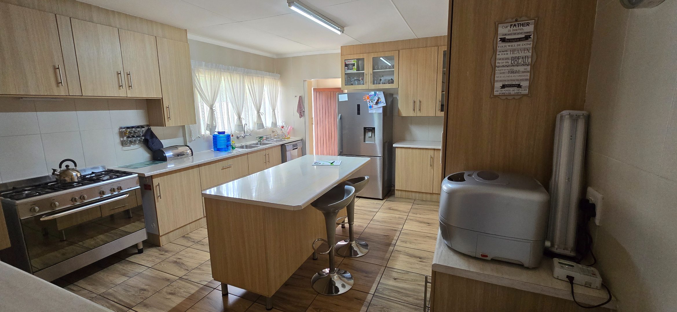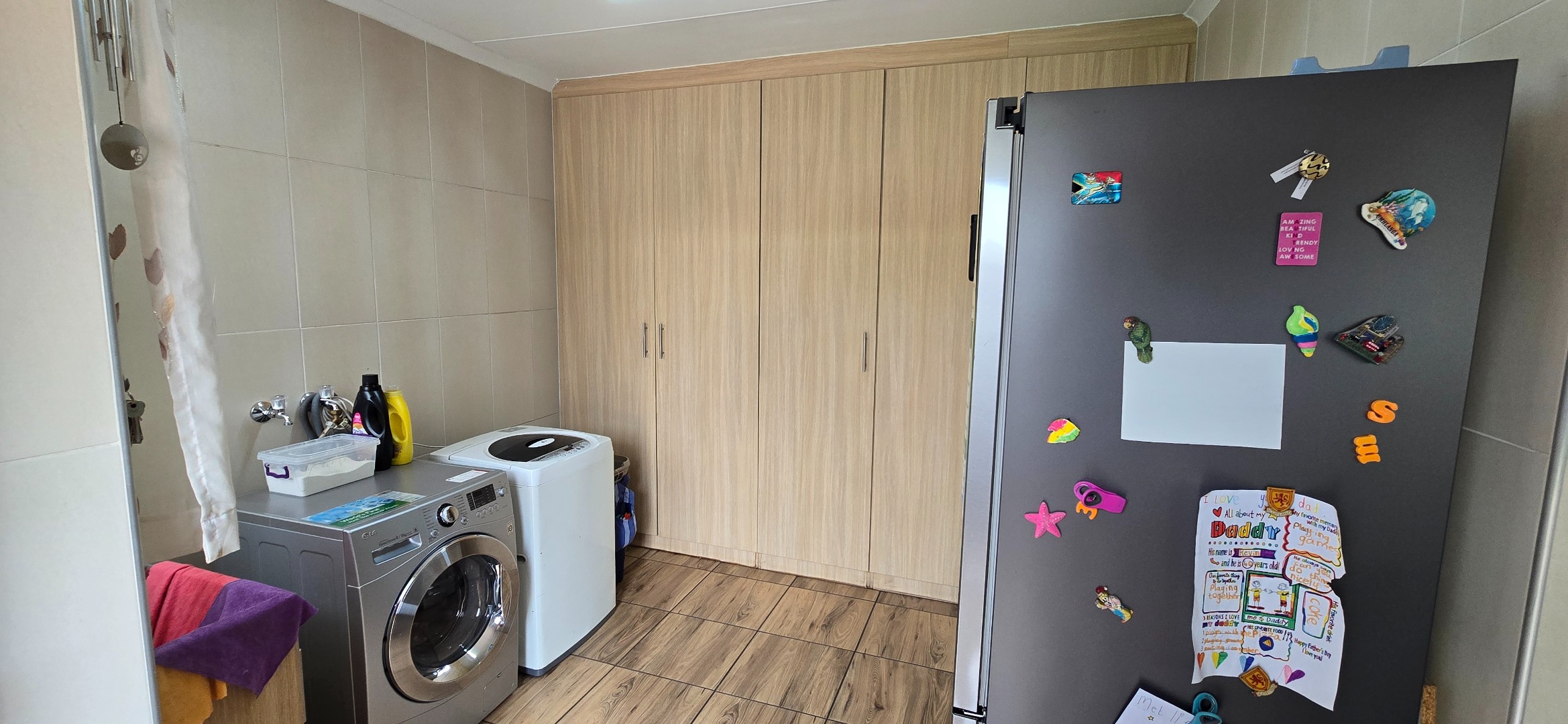 This distinguished residential property, situated on a generous 1000 sqm erf in a tranquil cul-de-sac within the sought-after Bardene suburb of Boksburg, presents an exceptional opportunity for sophisticated living. Boasting a substantial floor size of 304 sqm, this residence immediately impresses with its robust brick exterior and classic tiled roof, exuding a timeless appeal. The meticulously maintained lawn and landscaping contribute to its inviting kerb appeal, while the paved driveway leads to extensive covered parking, including a double garage and a large carport capable of accommodating multiple vehicles or even a caravan. The property's frontage is further enhanced by practical security features such as window bars and a visible solar-powered outdoor light, ensuring both aesthetic appeal and peace of mind. Upon entering, one is greeted by an inviting entrance hall, secured with a trellis gate, leading into the heart of the home. The interior is characterized by a harmonious blend of neutral grey walls and durable, easy-to-maintain tiled flooring throughout, providing a versatile canvas for personal customization. The open-plan design seamlessly connects the lounge, dining room, and a dedicated family TV room, fostering an expansive and inclusive atmosphere ideal for both daily living and entertaining. Large windows throughout these areas ensure an abundance of natural light, creating bright and airy spaces. The modern kitchen stands as a focal point, featuring extensive light wood-look cabinetry, pristine white countertops, and a functional central island with bar seating. Equipped with a gas stove, double sink, and integrated stainless steel appliances, including a large fridge and dishwasher, this kitchen is designed for both culinary enthusiasts and practical family needs. Adjacent to the kitchen, a dedicated laundry area with full-height wooden cabinets offers ample storage and convenience, complemented by staff quarters for added utility. The residence comprises three well-proportioned bedrooms, providing comfortable private retreats for all occupants. These rooms maintain the property's consistent aesthetic with neutral walls and tiled flooring. The home features two meticulously appointed bathrooms, with one being a private en-suite, offering enhanced privacy and convenience for the primary bedroom. The thoughtful layout ensures functionality and comfort, catering to the demands of a contemporary lifestyle. Outdoor living is well-catered for, with the expansive erf providing ample space for recreation and relaxation. The property includes a built-in braai, perfect for outdoor entertaining and social gatherings. The large covered carport and double garage not only provide secure parking but also offer significant storage solutions. The overall design of the outdoor spaces complements the interior, creating a cohesive and functional living environment. Security is a paramount consideration, and this property is equipped with a comprehensive suite of features designed to ensure resident safety. These include an alarm system, CCTV surveillance, an electric perimeter fence, and security bars on all windows, alongside internal trellis gates. Furthermore, the property benefits from fibre connectivity, catering to modern communication requirements, and is pet-friendly, accommodating the needs of animal lovers. Situated in the desirable suburb of Bardene, Boksburg, this property benefits from a tranquil cul-de-sac location. Bardene offers convenient access to local amenities, schools, and major transport routes, enhancing its appeal for discerning homeowners. Key Features of this Exceptional Residence: * Three Bedrooms, Two Bathrooms (One En-suite) * Expansive 1000 sqm Erf with 304 sqm Floor Size * Modern Kitchen with Island, Gas Stove, and Integrated Appliances * Open-Plan Lounge, Dining Room, and Family TV Room * Comprehensive Security: Alarm, CCTV, Electric Fence, Security Gates * Double Garage and Large Covered Carport for Multiple Vehicles * Dedicated Laundry Area and Staff Quarters * Fibre Connectivity and Pet-Friendly Environment * Built-in Braai for Outdoor Entertaining