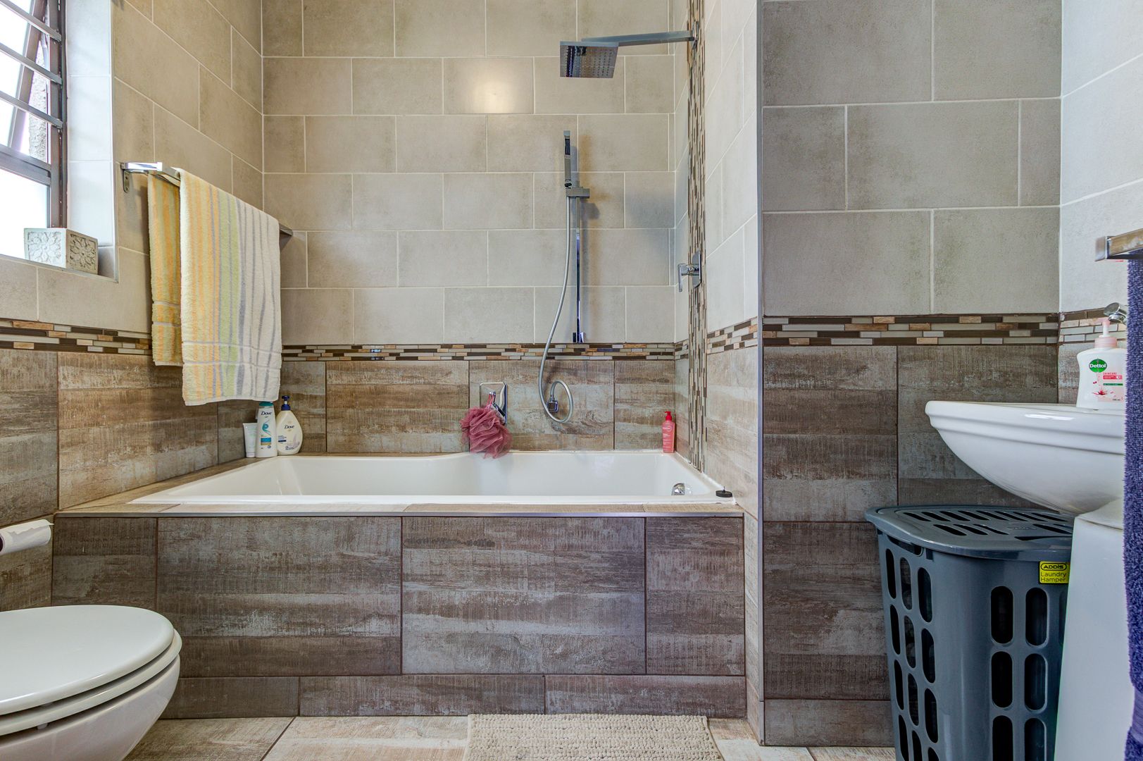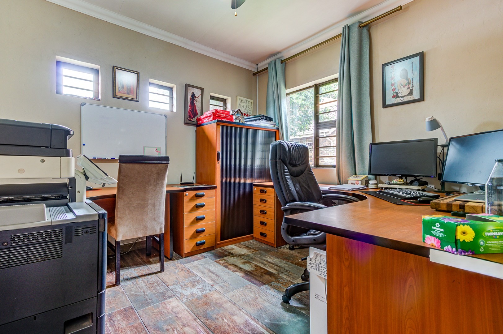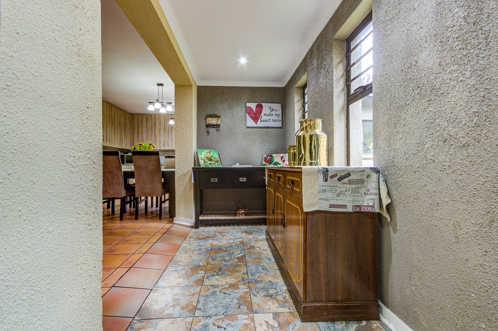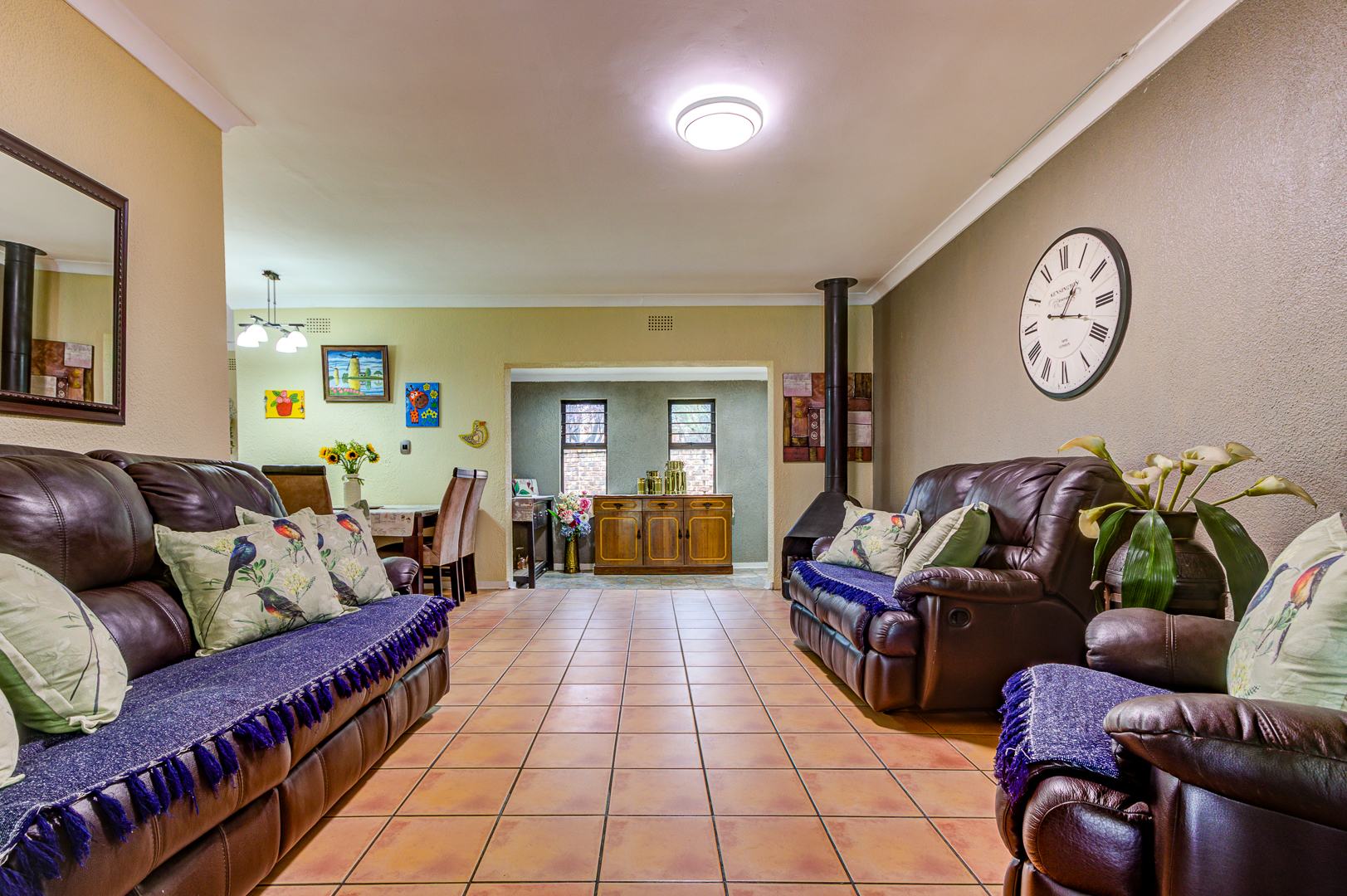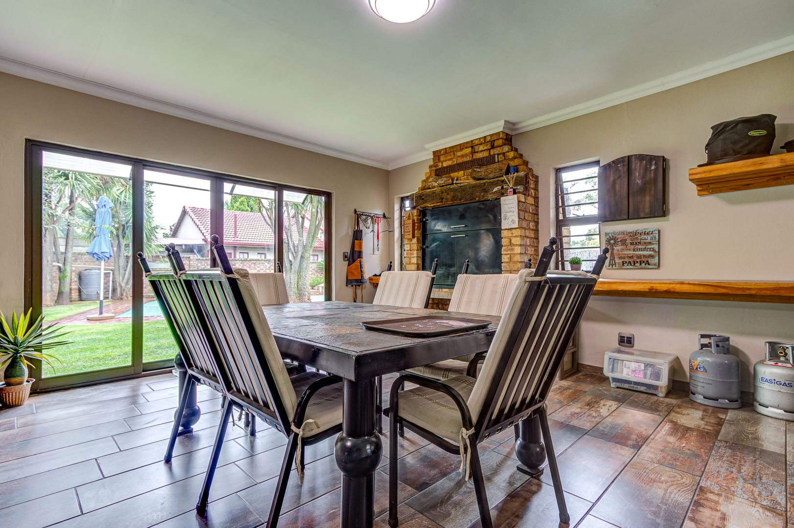 Beautiful and neat this home offers spacious open plan tiled living areas comprising of family lounge, inside entertainment room with built in jet master braai which can be used inside or outside, additional family tv room and dining area. There are aluminium windows with laminated glass throughout the home.