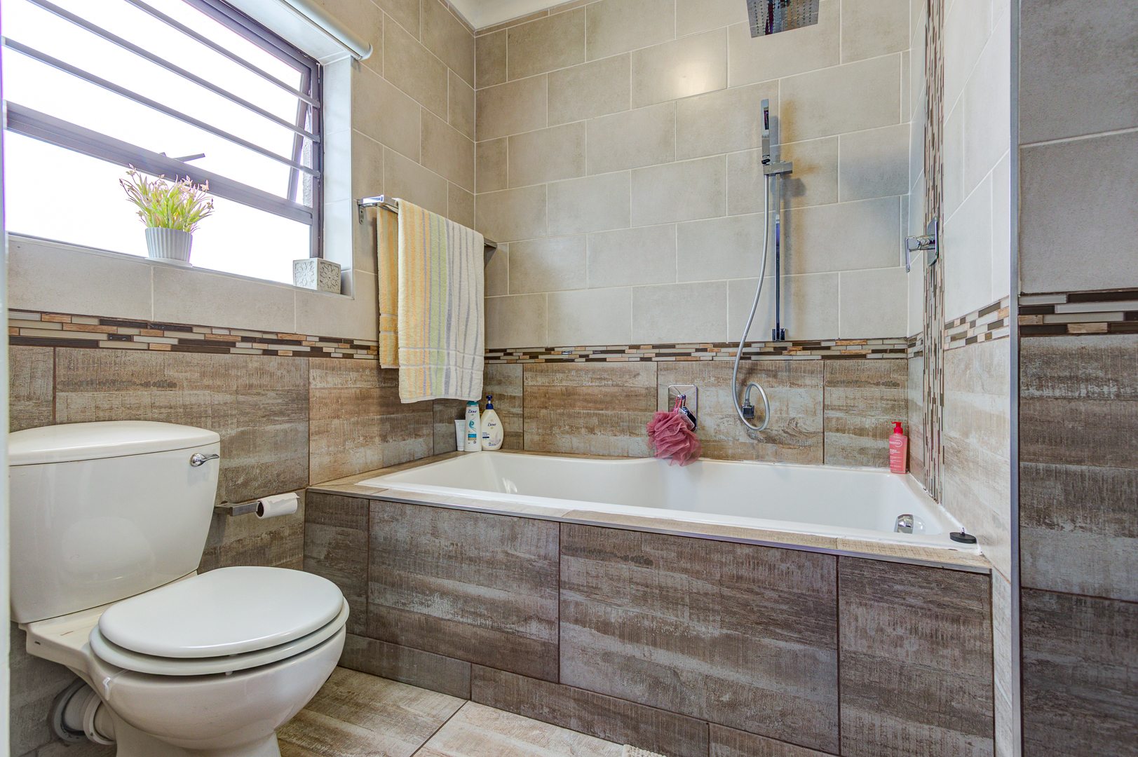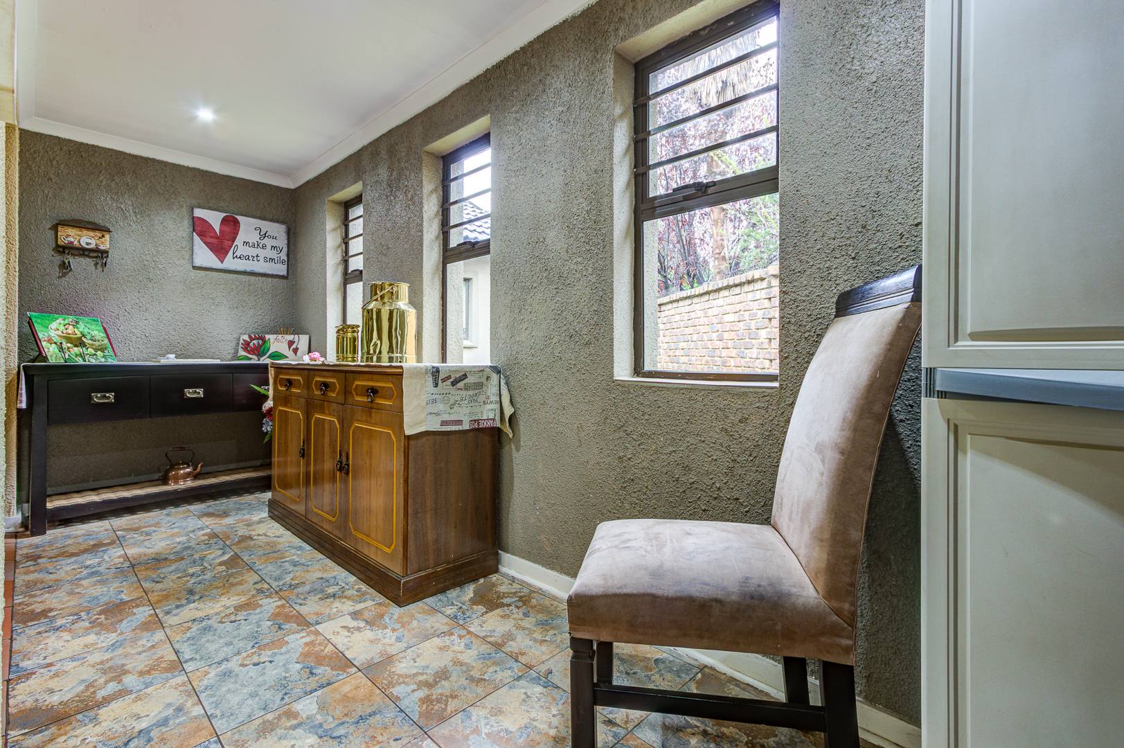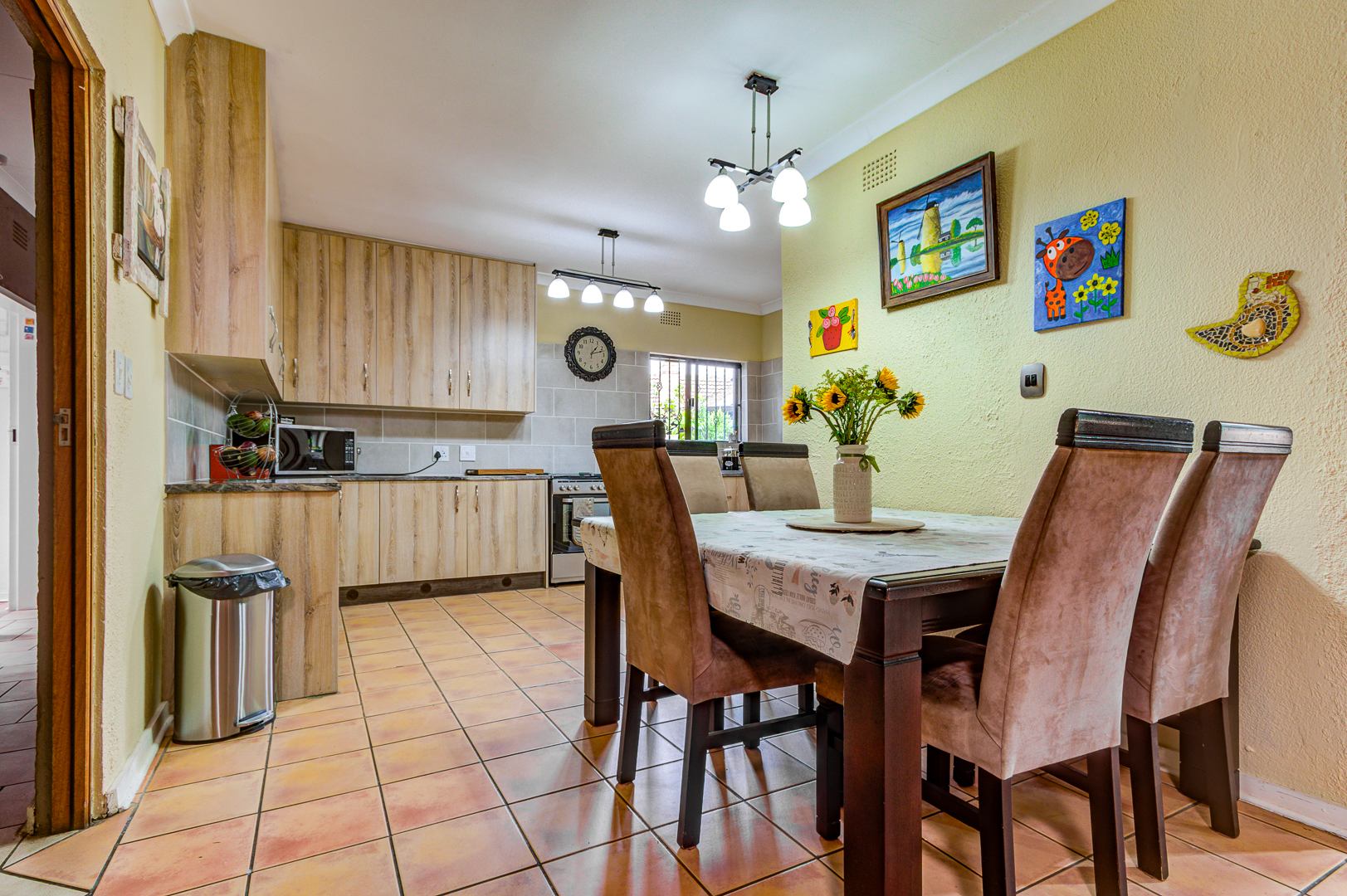 Beautiful and neat this home offers spacious open plan tiled living areas comprising of family lounge, inside entertainment room with built in jet master braai which can be used inside or outside, additional family tv room and dining area. There are aluminium windows with laminated glass throughout the home.