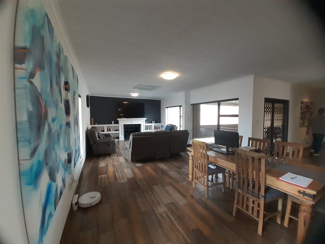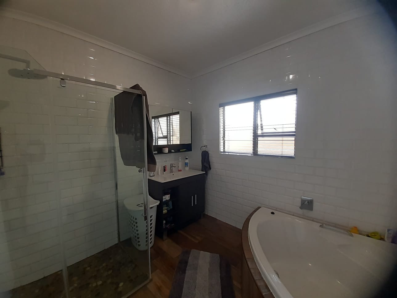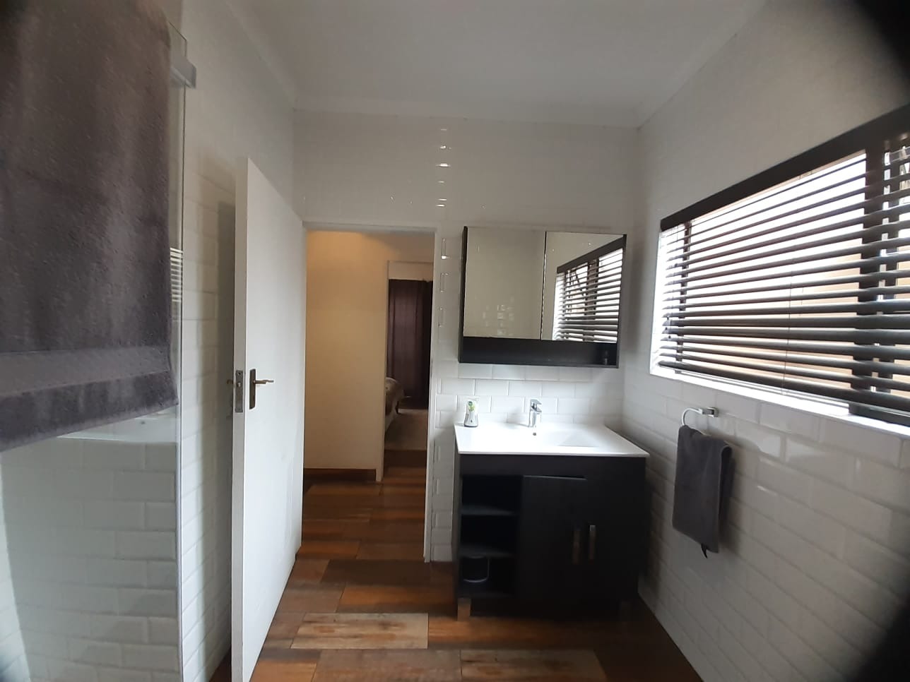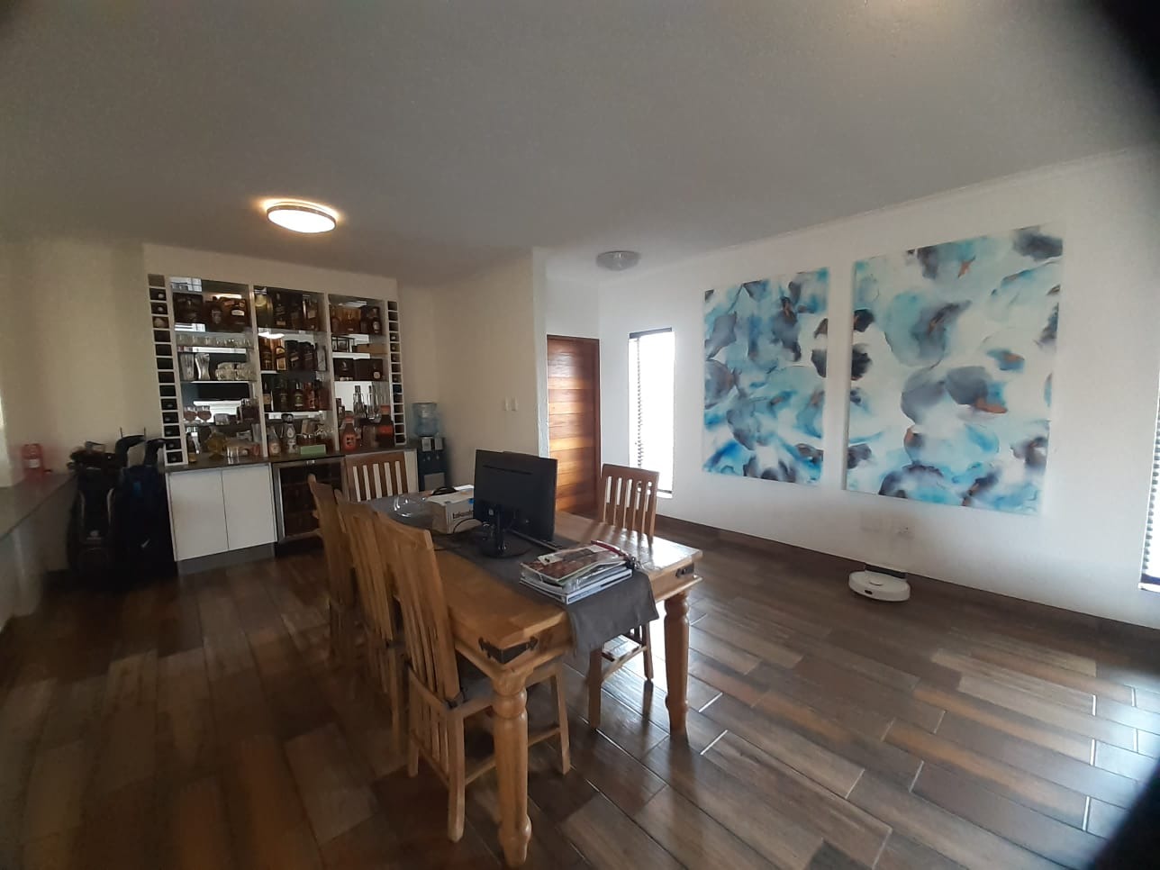 This distinguished residential property, situated within a secure estate in Bartletts, Boksburg, presents an impeccable exterior with a paved driveway leading to a double garage and a meticulously maintained garden. Upon entry, the residence reveals a spacious open-plan interior, characterized by contemporary wood-look tiled flooring and abundant natural light, seamlessly connecting the lounge, dining area, and kitchen.