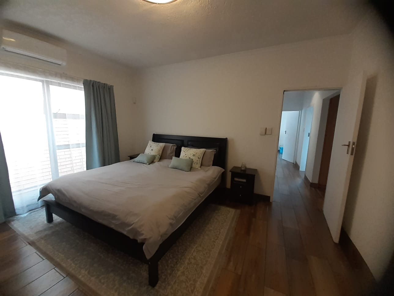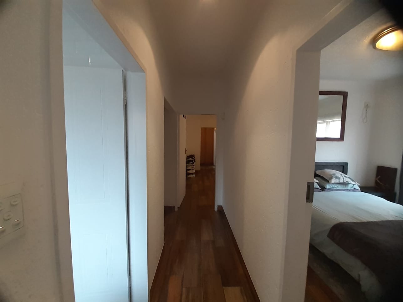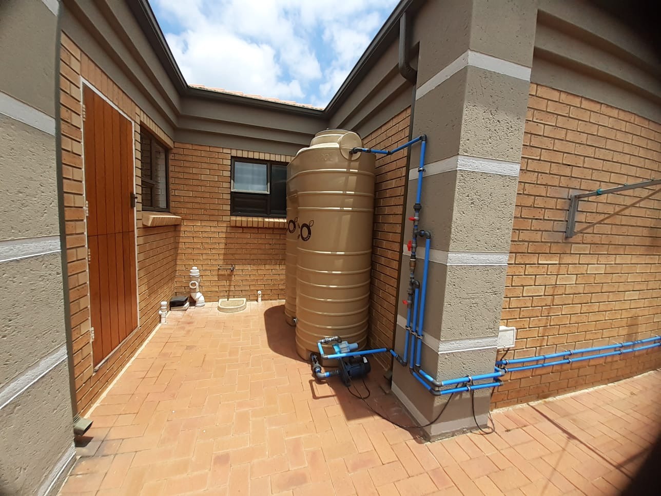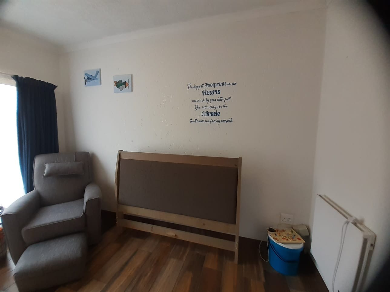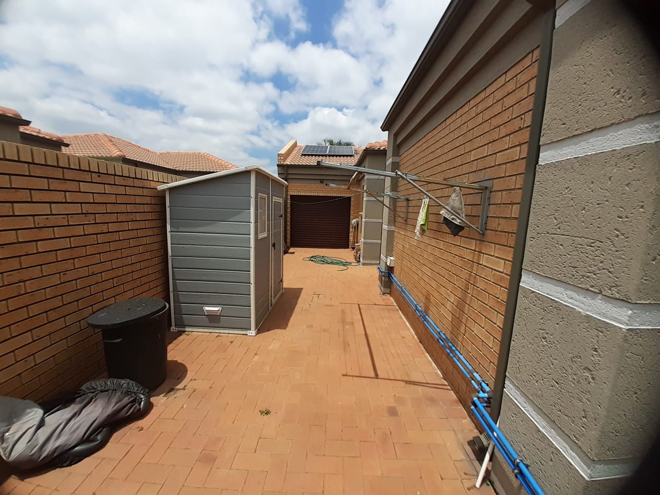 Externally, a generous covered patio offers an ideal setting for outdoor entertaining, overlooking a private garden. The property benefits from its location within a security estate, further enhanced by an access gate and integrated security gates on exterior doors, ensuring peace of mind for occupants.