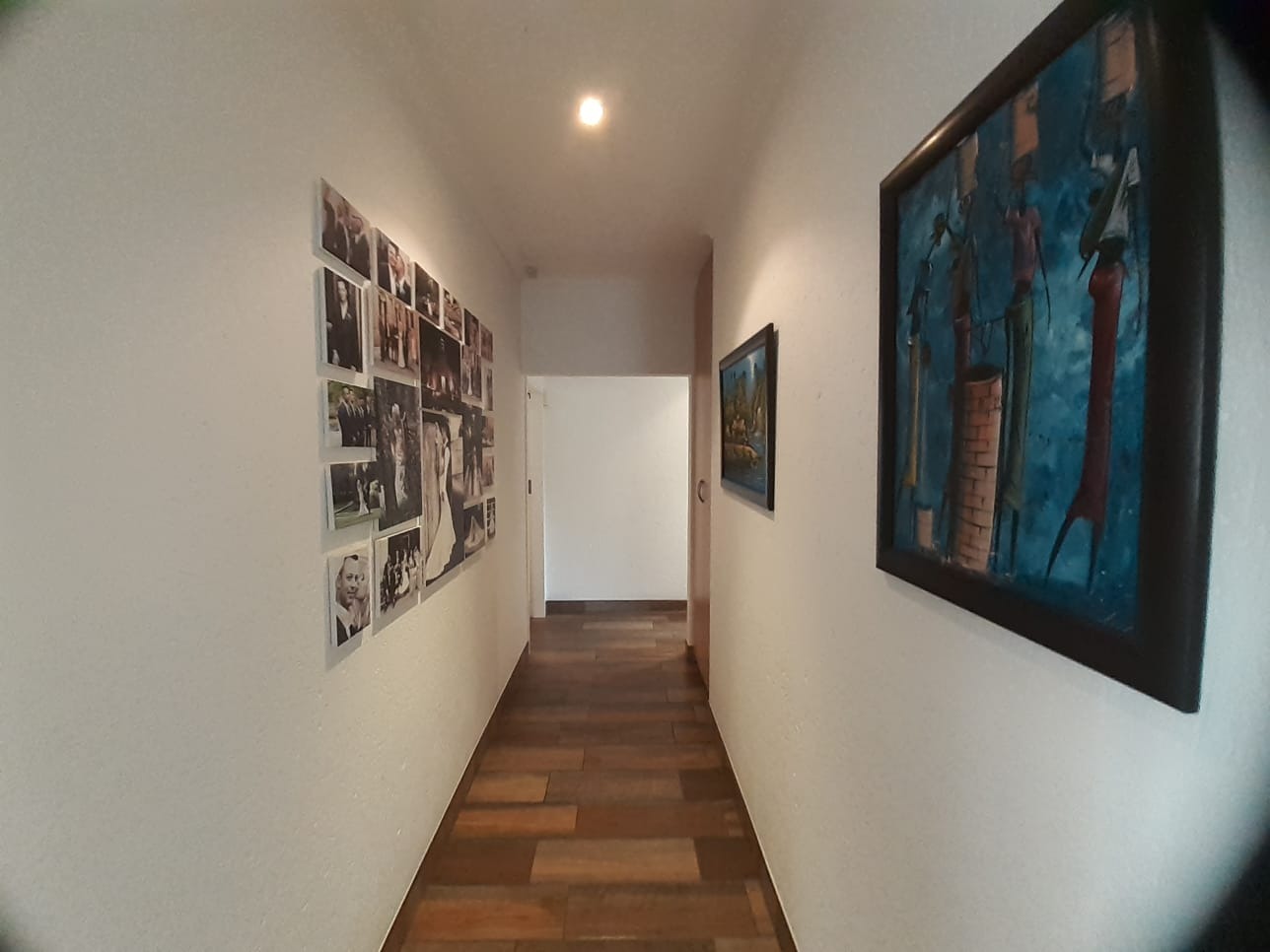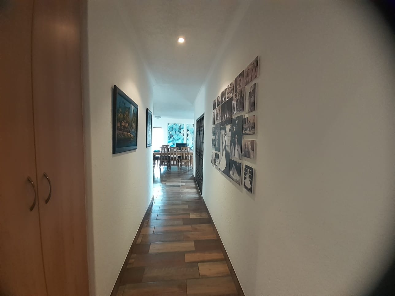 The modern kitchen boasts high-gloss white cabinetry, dark countertops, stainless steel appliances, and a central island, complemented by a dedicated pantry. The property comprises three well-appointed bedrooms and two bathrooms, including an elegant en-suite. Air conditioning ensures optimal comfort.