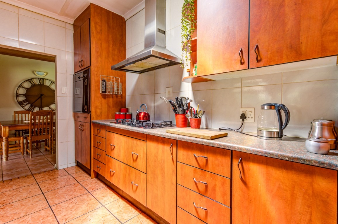 The kitchen offers ample cupboard space and a gas hob, providing practicality and efficiency for any home cook.