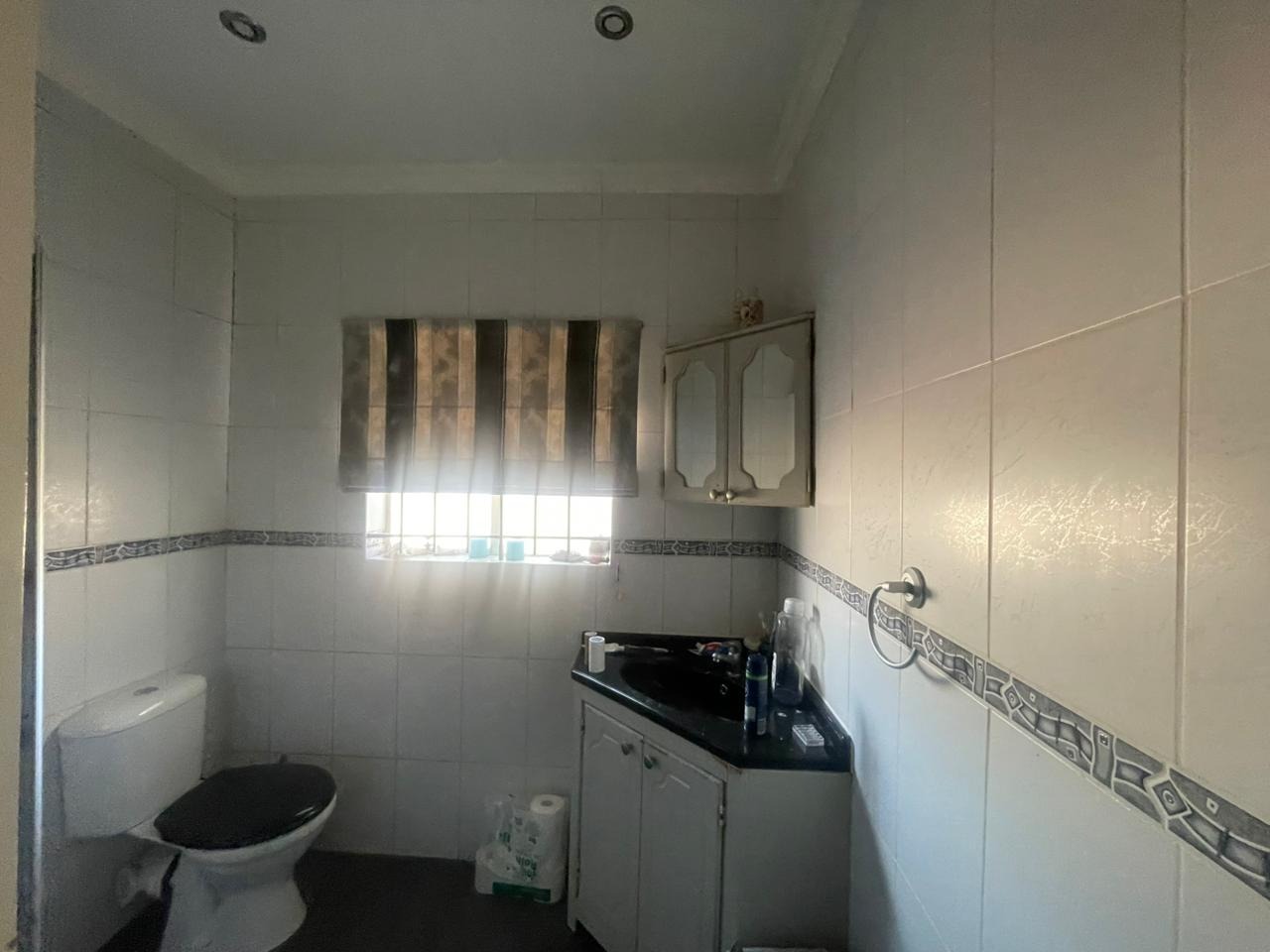 The home comprises three comfortable bedrooms, all with laminated flooring. The main bedroom boasts an en-suite bathroom with a bath and toilet. A second bathroom serves the remaining bedrooms, featuring a toilet and shower. Outside toilets are also available for added convenience.