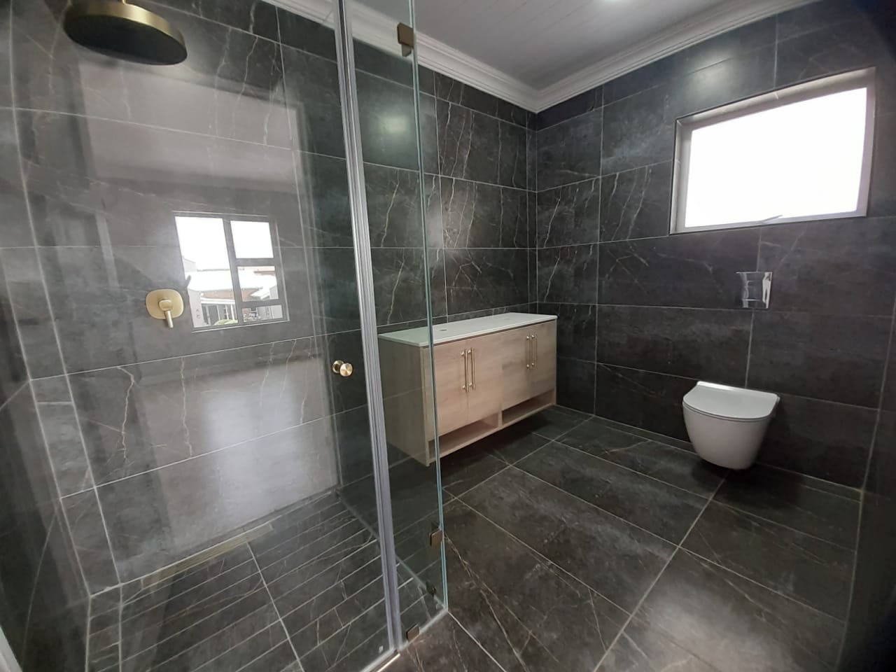 Discover this modern double-story residence located within a secure estate in Beyers Park, Boksburg, South Africa. The contemporary architecture features mixed material finishes and is complemented by a spacious cobblestone-paved driveway leading to an integrated double garage, offering ample parking and secure access. An upper-level balcony adds to the home's kerb appeal. Step inside to an expansive open-plan living area, designed for seamless indoor-outdoor flow with large bi-fold and sliding glass doors opening to a covered patio and garden. The interior boasts modern ceiling designs with recessed lighting and durable tiled flooring throughout. The kitchen, while awaiting final touches like countertops and appliances, presents a modern layout with an island and new cabinetry, including a pantry, ready for customisation to your taste. This home offers four spacious bedrooms, each with its own en-suite bathroom, totaling 4.5 bathrooms including a convenient guest toilet. The bathrooms are designed with contemporary flair, featuring stylish marble-effect tiling, walk-in showers with gold fixtures, floating vanities, and wall-hung toilets. One room also includes extensive built-in storage, ideal for a walk-in closet. Practical features include a dedicated laundry area and a garden space, providing a canvas for your landscaping vision. The property's location within a security estate ensures peace of mind, making it an ideal family home. Key Features: * 4 Bedrooms, 4.5 Bathrooms (4 En-suites) * Modern Double-Story Architecture * Open-Plan Living with Bi-Fold Doors * Unfinished Modern Kitchen with Island * Integrated Double Garage * Covered Patio and Balcony * Tiled Flooring Throughout * Security Estate Living