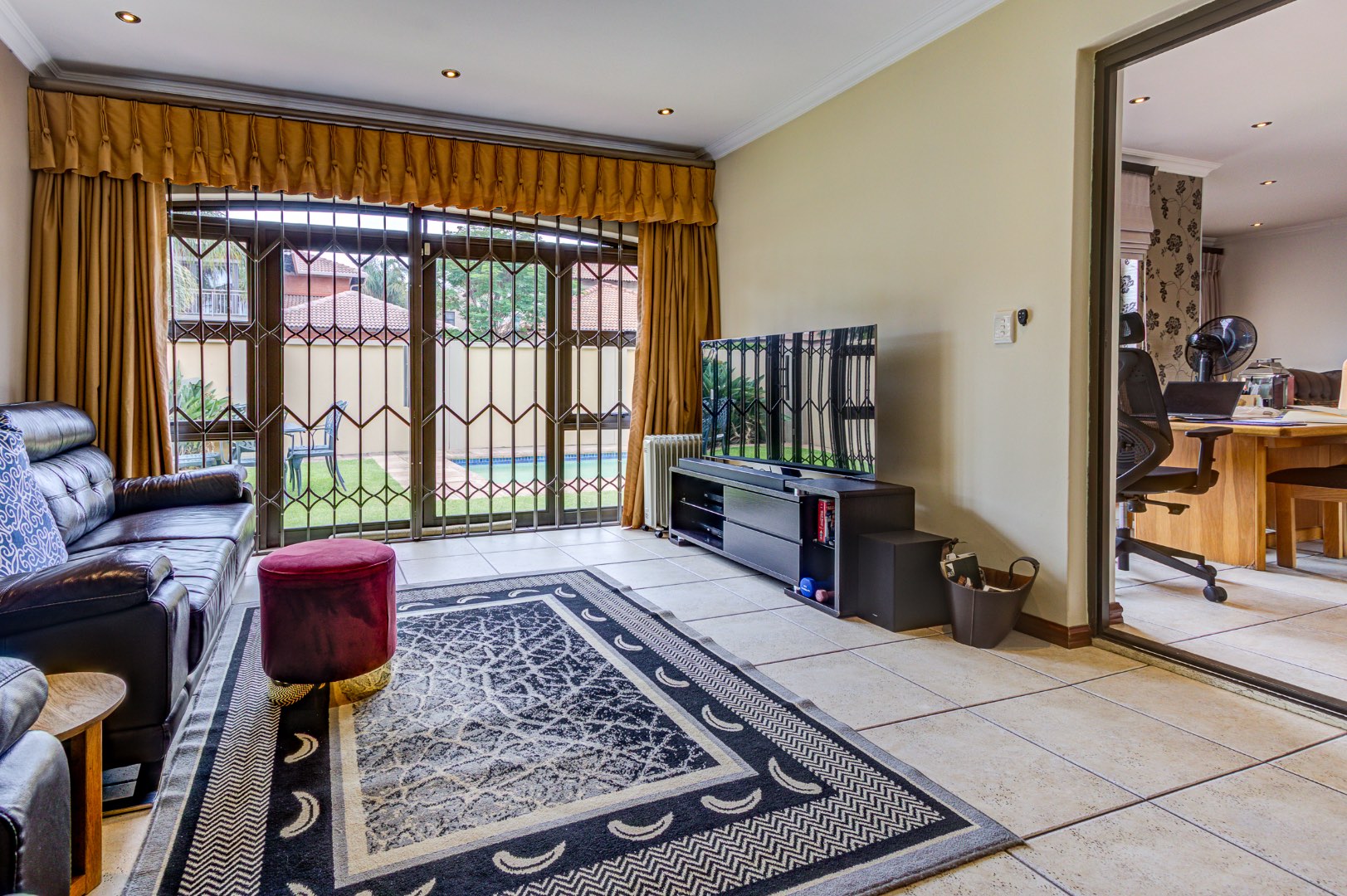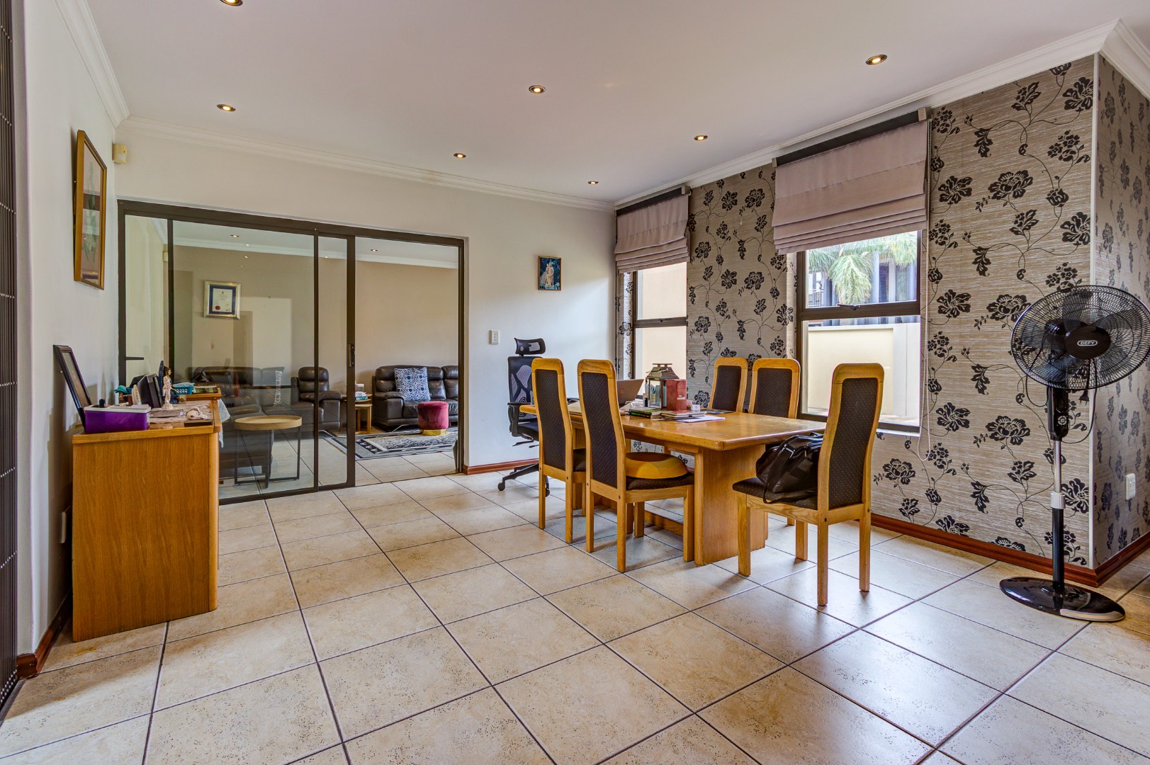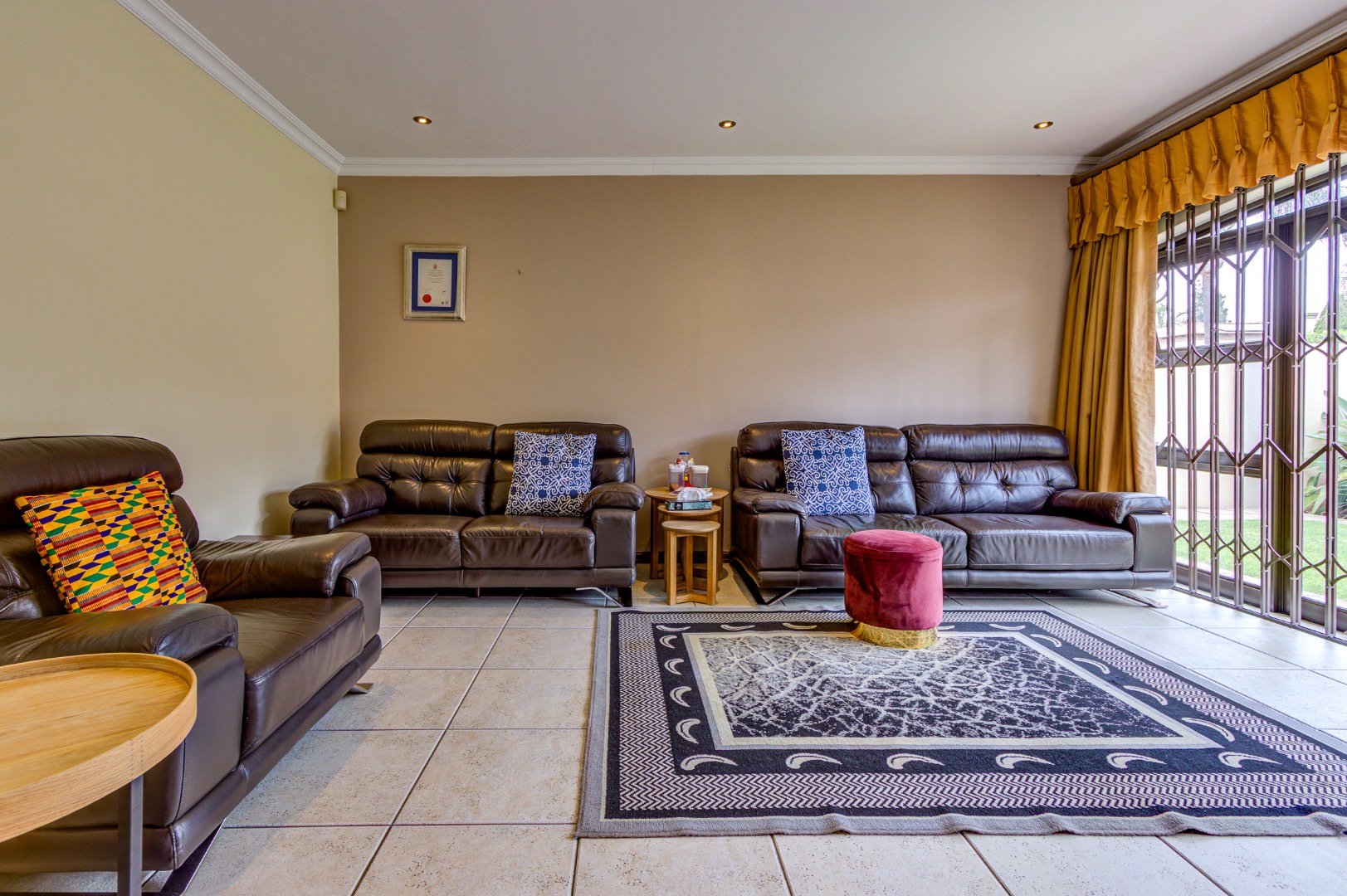 Ensuring peace of mind, this home is nestled within a security estate, benefiting from 24-hour security and an access gate, further enhanced by ground-floor security gates. Domestic room and outside toilet add to the property's comprehensive amenities.