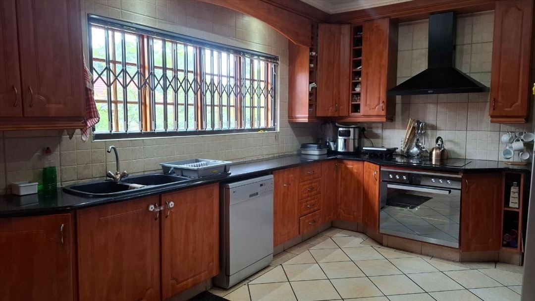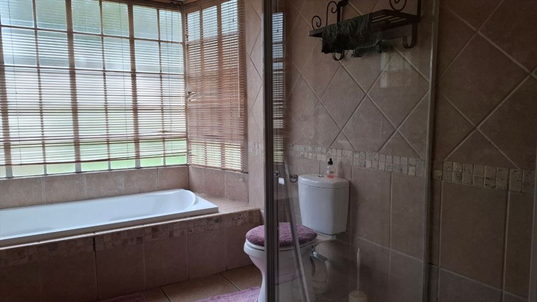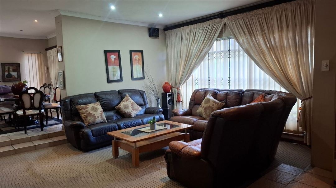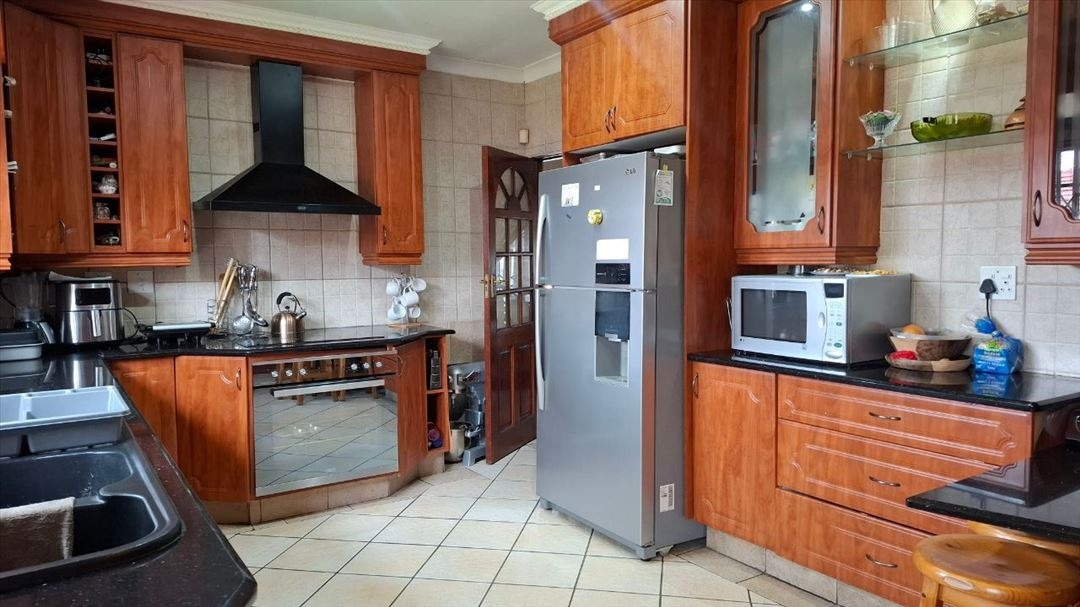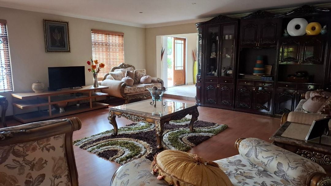 Inviting entrance hall. Large open plan lounge, dining room and a family room. A whopping 5 bedrooms. Main bedroom build on a masterly scale with an en-suite bathroom. 2 Bedrooms has their own en-suite bathrooms. Guest loo. Modern kitchen with granite tops, a breakfast counter and a pantry. Laundry room outside. Study with fitted units and build-in cupboards. Triple garage with automated doors. Private pool to make a splash in. Neat garden with borehole water. Excellent security measures in place. Lapa with a braai area. New Mosque coming up - walking distance making life MUCH easier for the family.