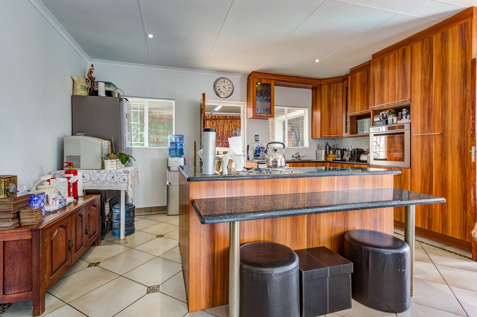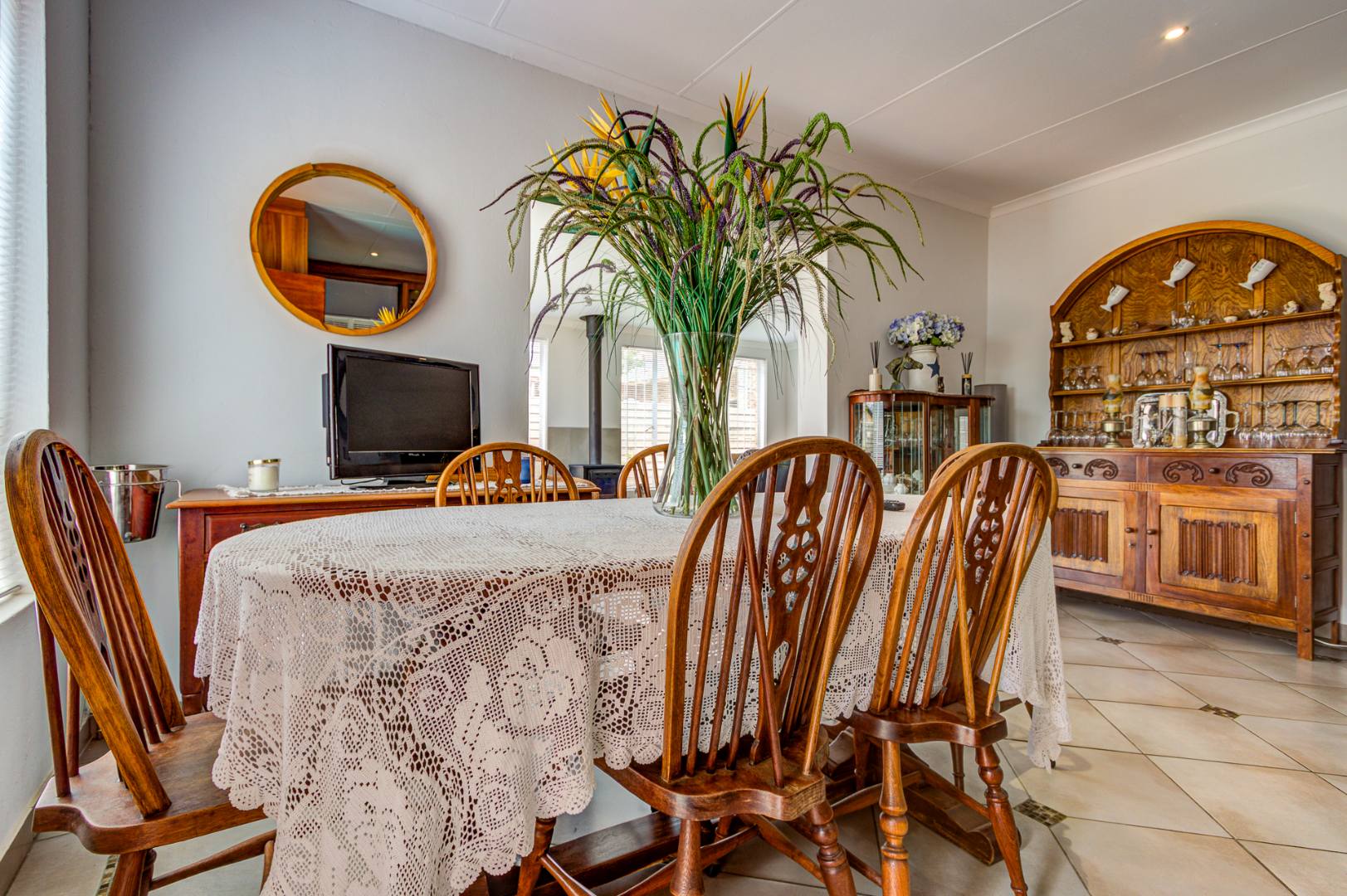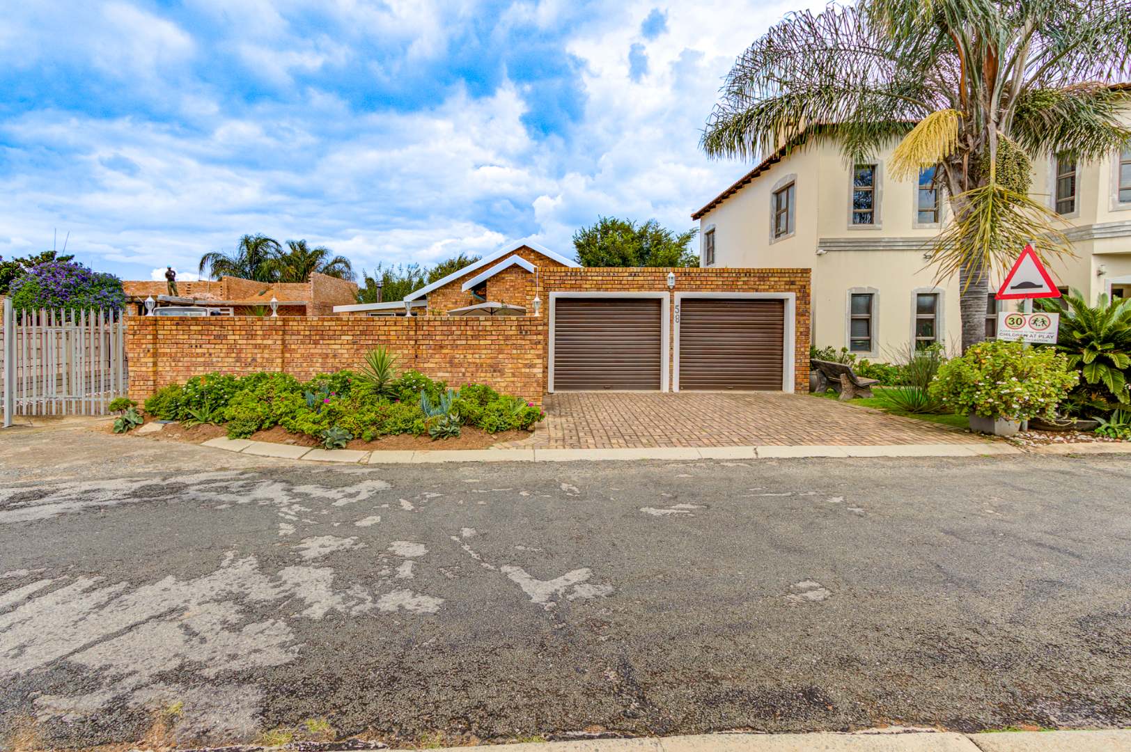 In addition to the double garages, one garage is a drive thru making provision under a carport of two extra vehicles.