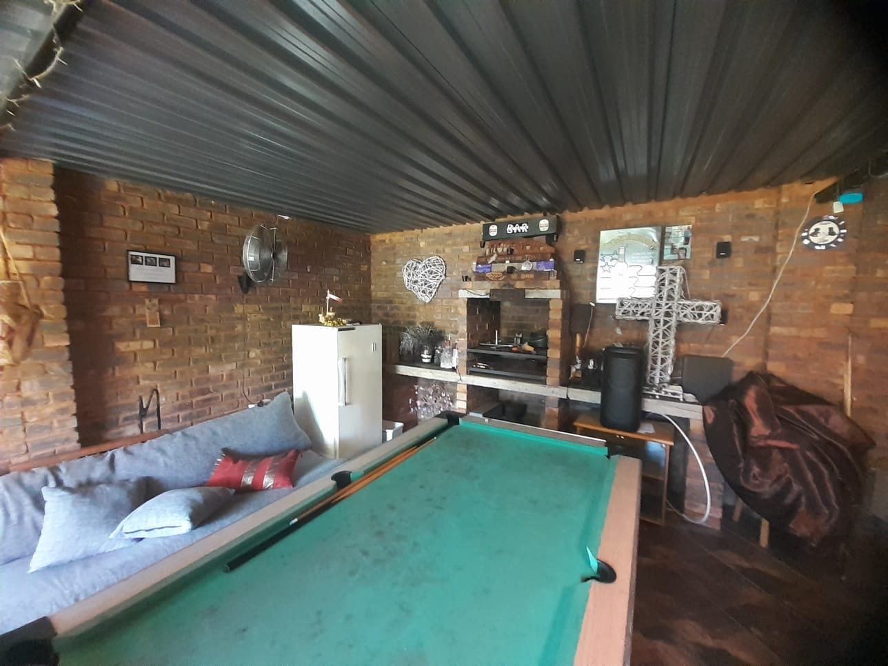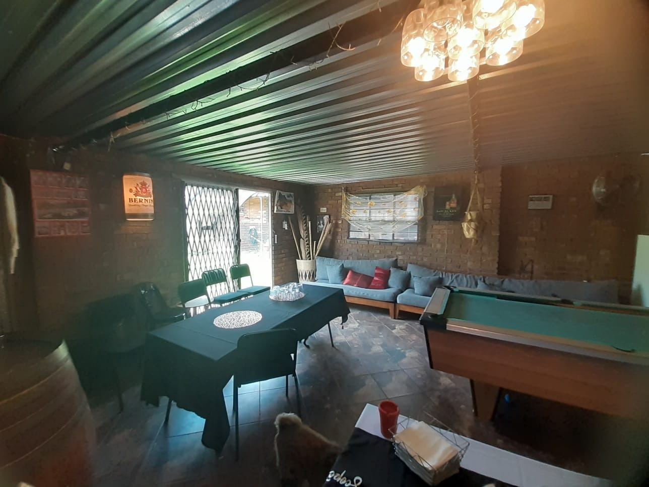 Outdoor living is a highlight, featuring a separate wooden entertainment structure, perfect for gatherings. A unique recreational area with exposed brick walls and a pool table provides an additional space for leisure. The property includes a dedicated laundry area, outside toilet, and is pet-friendly. Parking is abundant with a tandem garage and two additional parking spaces, ensuring secure accommodation for multiple vehicles.