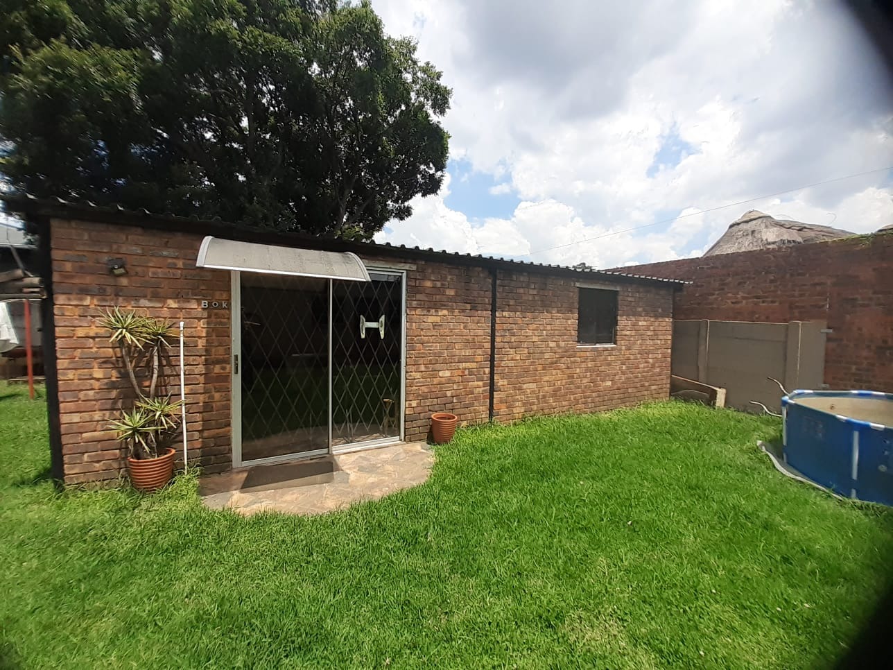 Discover this inviting 3-bedroom family home situated on a generous 694 sqm erf in the established suburb of Comet, Boksburg, South Africa. The property immediately impresses with its well-maintained lawn, and practical paved pathways, offering a welcoming kerb appeal.
