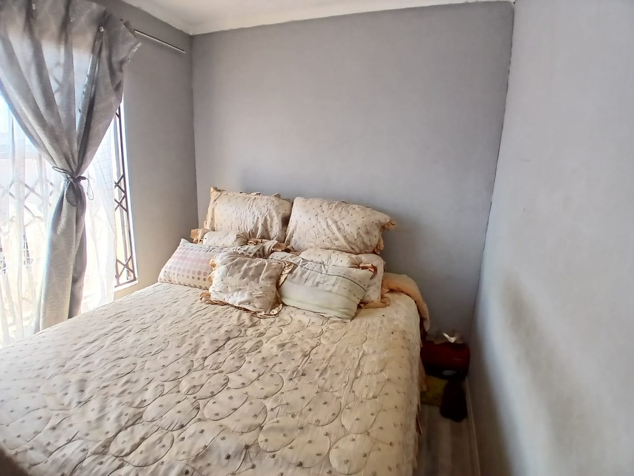 This inviting 2-bedroom, 1-bathroom home offers a comfortable living experience in the established suburb of Dawn Park, Boksburg. Situated on a generous 375 sqm erf, this property presents an excellent opportunity for first-time buyers or those looking to invest in a well-located area. The interior features a functional layout, including a welcoming lounge and a well-appointed kitchen, designed for practical daily living. The lounge area benefits from ample natural light, enhanced by modern laminate flooring and an attractive accent wall, creating a warm and inviting atmosphere. The open-plan special feature ensures a seamless flow within the main living spaces. The two bedrooms provide comfortable private retreats, serviced by a single, conveniently located bathroom. Externally, the property is designed with security and convenience in mind. It features a spacious paved driveway and outdoor areas, providing two dedicated parking spaces. The property is enclosed by high boundary walls, a secure metal gate, and security bars on all windows, ensuring peace of mind for residents. A separate outbuilding adds versatile space, ideal for a home office, workshop, or additional storage. While the garden area is currently unlandscaped, it offers significant potential for personalisation, allowing new owners to create their ideal outdoor oasis. The well-maintained tiled roof and light-colored exterior contribute to the property's neat appearance. Pets are allowed, making it suitable for animal lovers. Located in Dawn Park, a residential area within Boksburg, this home offers access to local amenities and transport routes. Boksburg is a vibrant city in South Africa, known for its community feel and accessibility to major urban centres, providing a balanced lifestyle. This property combines practical living with potential for enhancement, making it a valuable acquisition in a desirable location. Key Features: * 2 Bedrooms, 1 Bathroom * 1 Lounge, 1 Kitchen * 375 sqm Erf Size * 2 Parking Spaces * Paved Driveway & Yard * Secure Gated Entry & Walls * Window Security Bars * Separate Outbuilding * Landscaping Potential * Pets Allowed