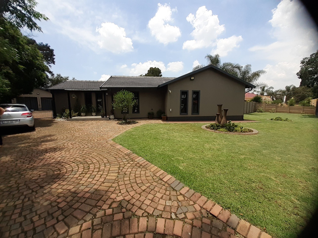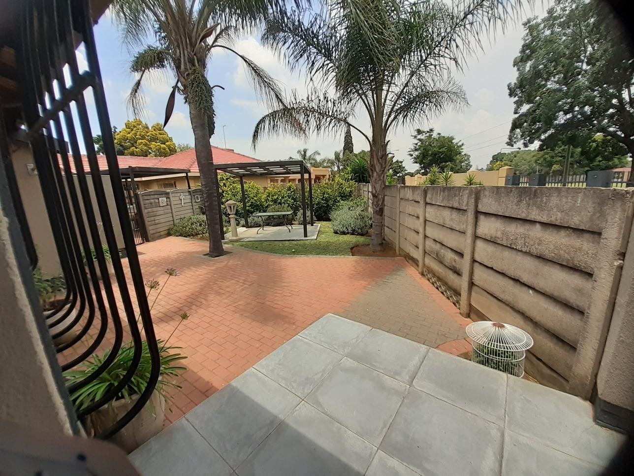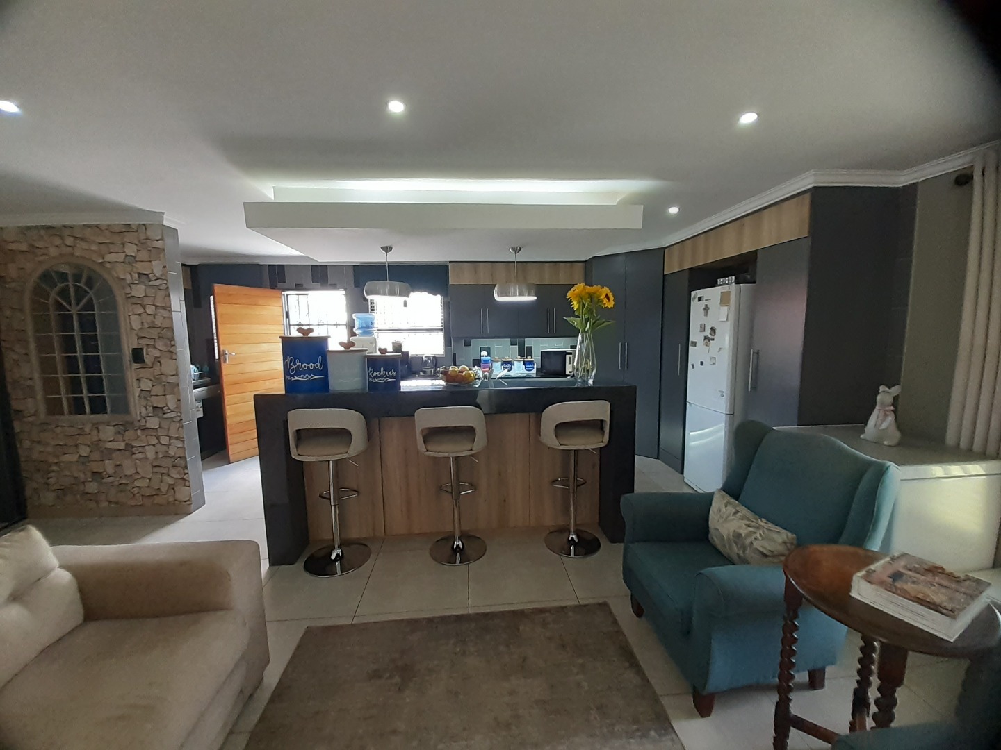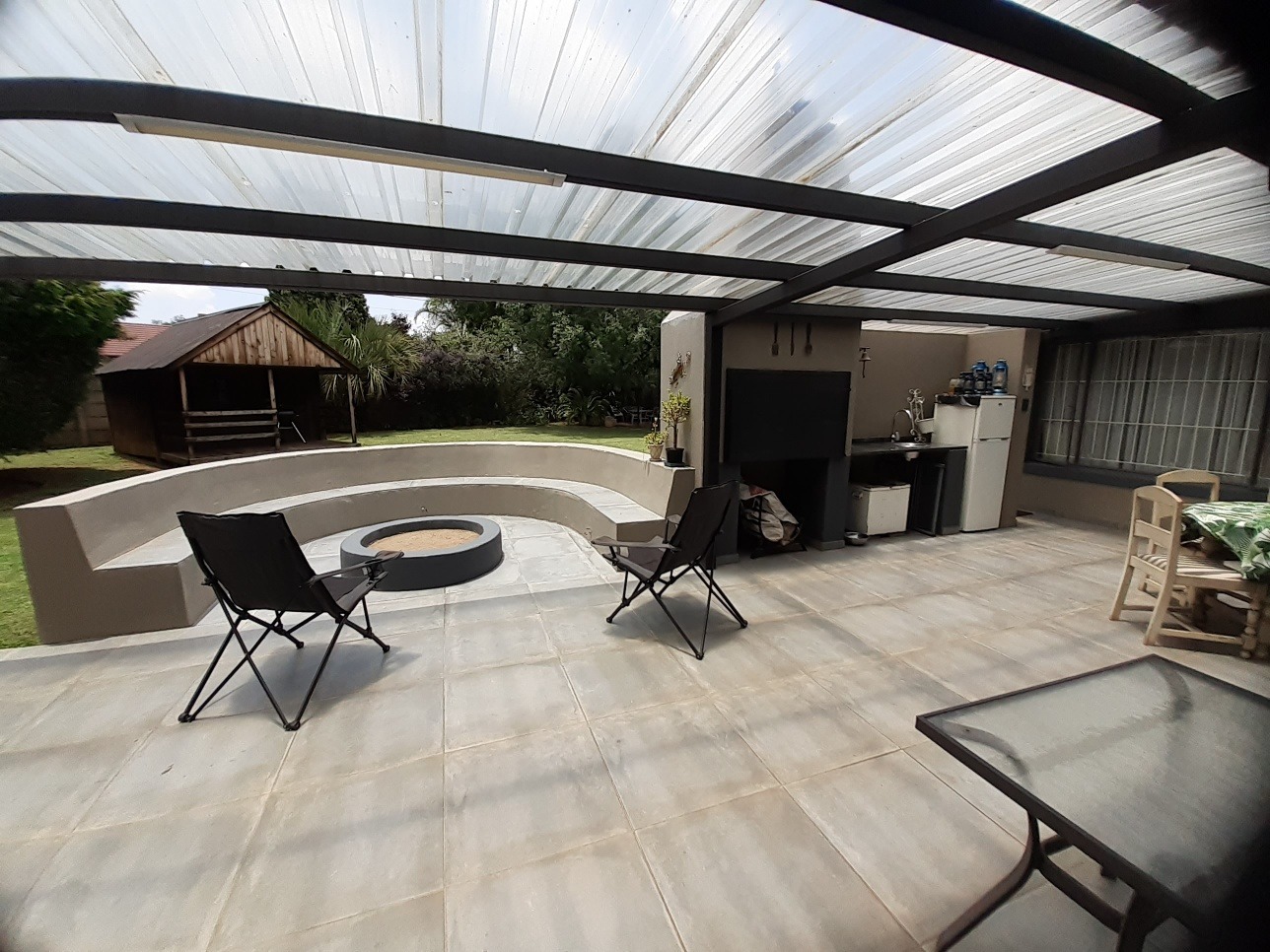 Discover this charming family home in Freeway Park, Boksburg, South Africa, offering a modern exterior with a well-maintained lawn and an attractive brick paver driveway. The inviting entrance features a stylish pergola, setting a welcoming tone. Step inside to an expansive open-plan living space, seamlessly connecting a dining area, two lounges, and a modern kitchen. The kitchen boasts dark cabinetry, wood accents, a practical island with breakfast bar seating, and a pantry. Tiled flooring and recessed lighting flow throughout, complemented by a distinctive stone accent wall that adds character. This residence offers three comfortable bedrooms and two bathrooms, including a private en-suite, providing ample space for family living. The property truly shines with its exceptional outdoor entertainment area. A spacious, covered patio features a built-in braai, outdoor kitchen with a sink and fridge, and a unique fire pit with curved seating – perfect for gatherings. The large garden and additional wooden shed/gazebo enhance the outdoor appeal, while a single garage and ample driveway parking complete this suburban gem. Located in the desirable Freeway Park, this property offers convenient access to local amenities and a peaceful residential environment in Boksburg. Key Features: * 3 Bedrooms, 2 Bathrooms (1 en-suite) * Open-plan living with 2 lounges * Modern kitchen with pantry & breakfast bar * Expansive outdoor entertainment area with built-in braai & fire pit * Large garden and paved driveway * Single garage * Erf Size: 1278 sqm