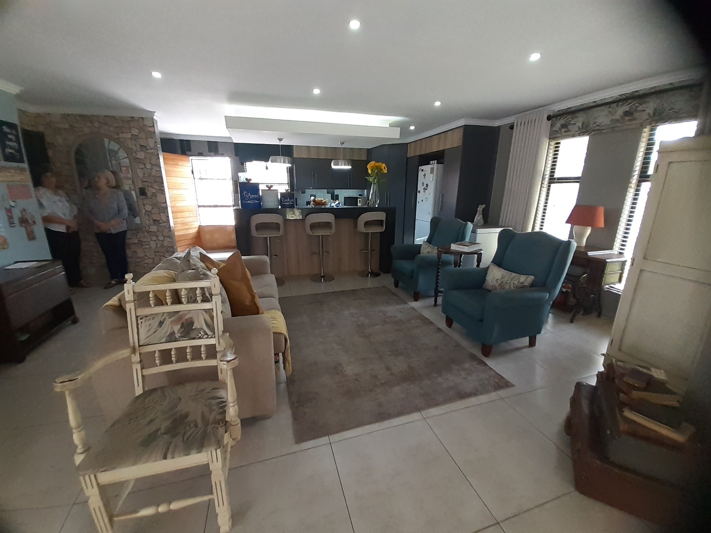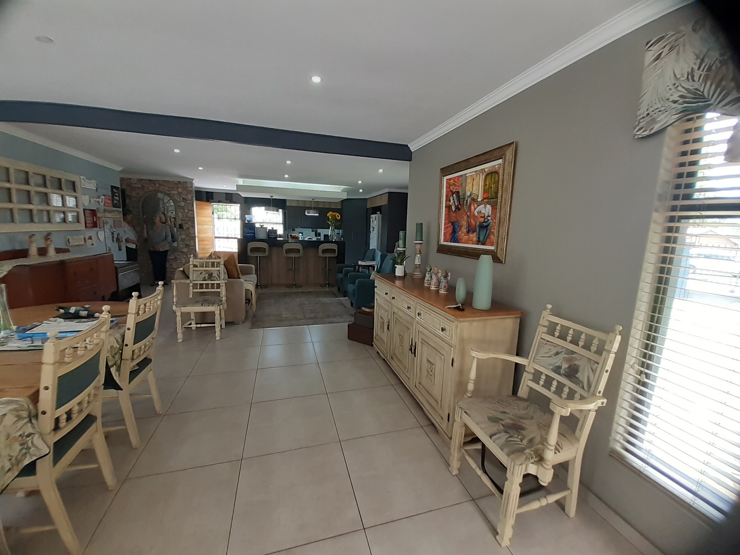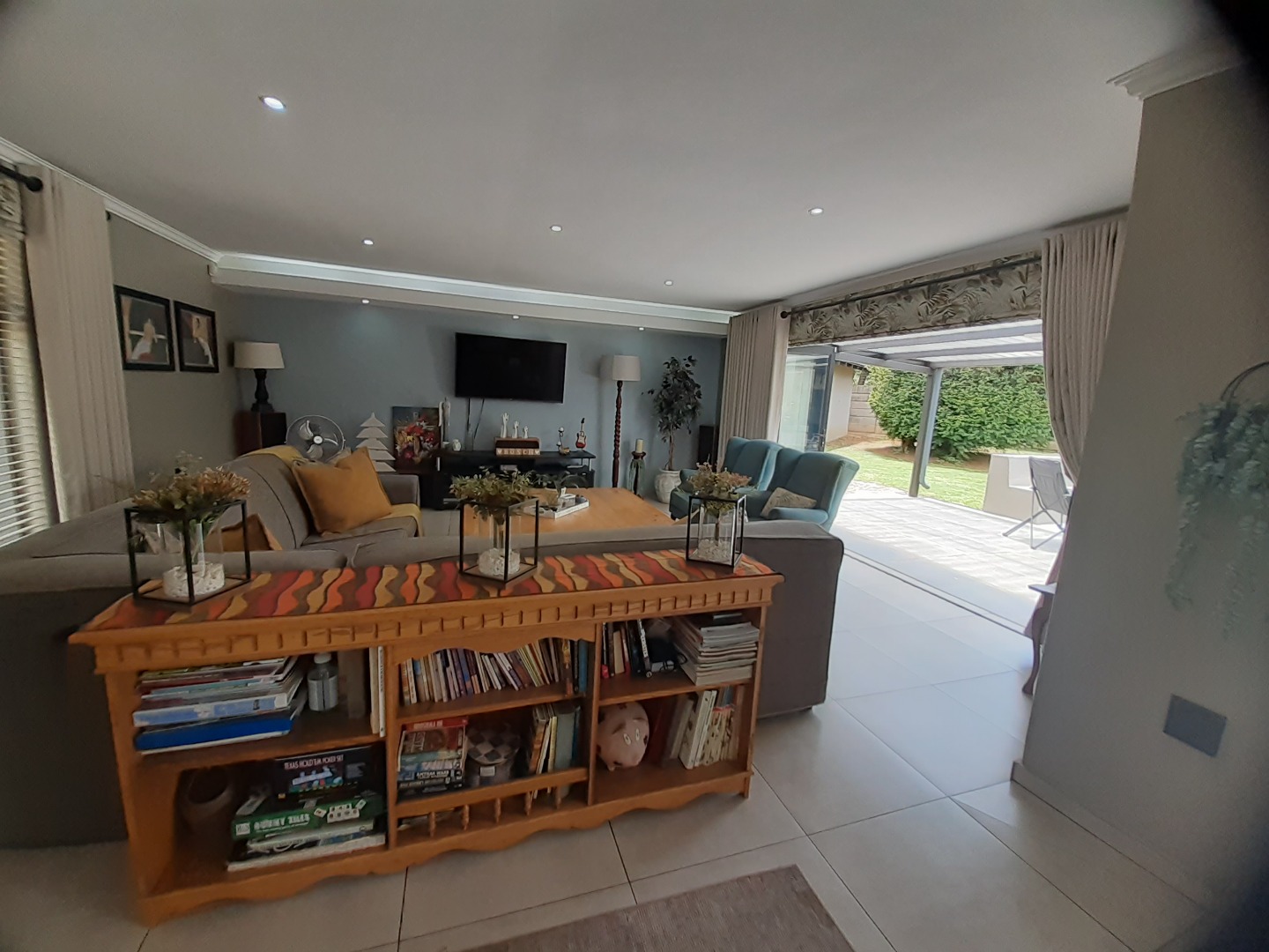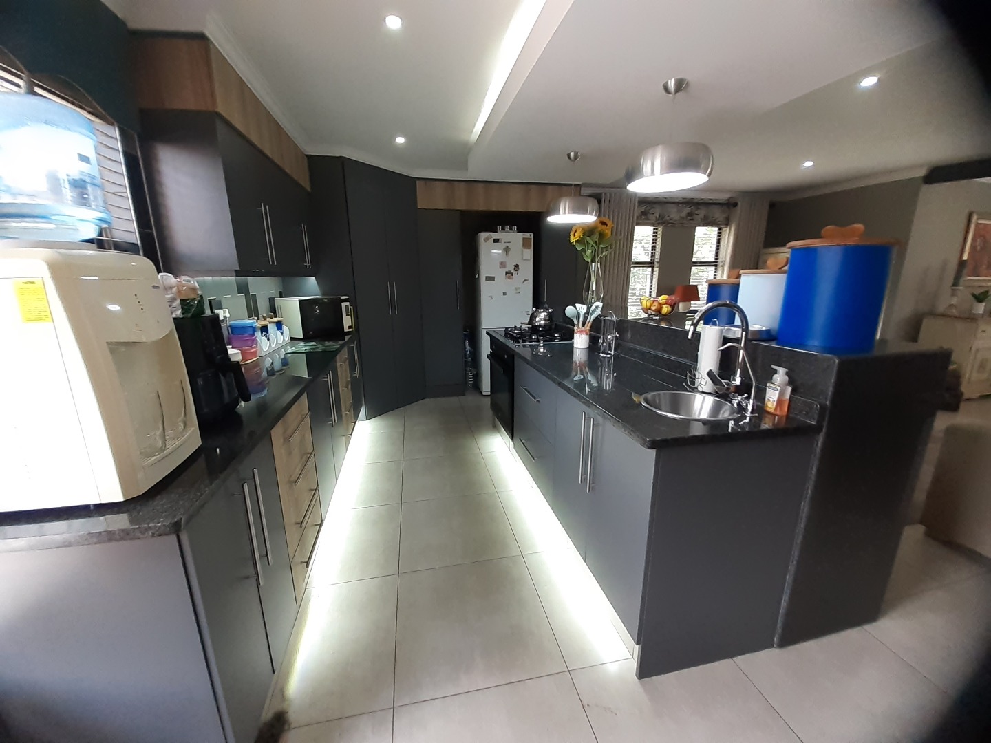 Discover this charming family home in Freeway Park, Boksburg, South Africa, offering a modern exterior with a well-maintained lawn and an attractive brick paver driveway. The inviting entrance features a stylish pergola, setting a welcoming tone. Step inside to an expansive open-plan living space, seamlessly connecting a dining area, two lounges, and a modern kitchen. The kitchen boasts dark cabinetry, wood accents, a practical island with breakfast bar seating, and a pantry. Tiled flooring and recessed lighting flow throughout, complemented by a distinctive stone accent wall that adds character. This residence offers three comfortable bedrooms and two bathrooms, including a private en-suite, providing ample space for family living. The property truly shines with its exceptional outdoor entertainment area. A spacious, covered patio features a built-in braai, outdoor kitchen with a sink and fridge, and a unique fire pit with curved seating – perfect for gatherings. The large garden and additional wooden shed/gazebo enhance the outdoor appeal, while a single garage and ample driveway parking complete this suburban gem. Located in the desirable Freeway Park, this property offers convenient access to local amenities and a peaceful residential environment in Boksburg. Key Features: * 3 Bedrooms, 2 Bathrooms (1 en-suite) * Open-plan living with 2 lounges * Modern kitchen with pantry & breakfast bar * Expansive outdoor entertainment area with built-in braai & fire pit * Large garden and paved driveway * Single garage * Erf Size: 1278 sqm