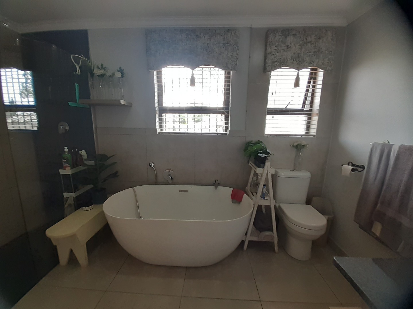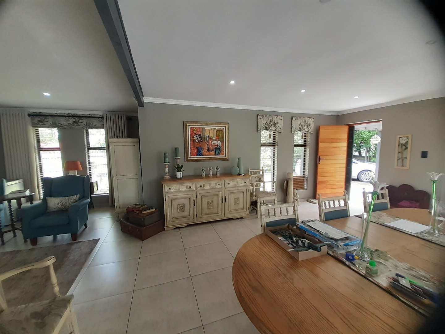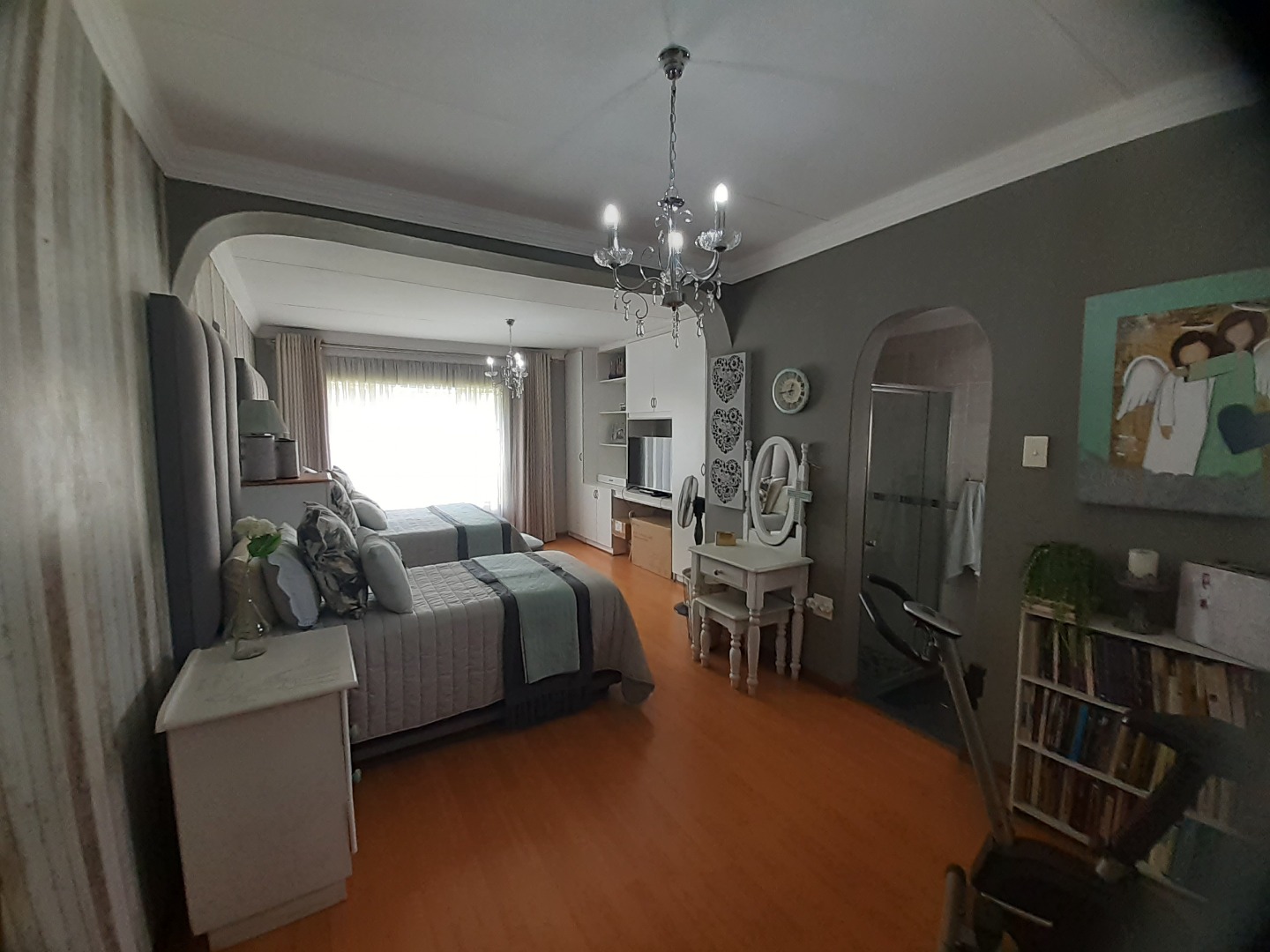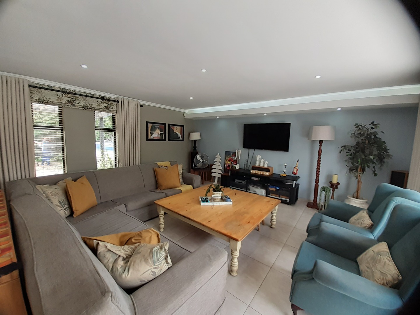 Discover this charming family home in Freeway Park, Boksburg, South Africa, offering a modern exterior with a well-maintained lawn and an attractive brick paver driveway. The inviting entrance features a stylish pergola, setting a welcoming tone. Step inside to an expansive open-plan living space, seamlessly connecting a dining area, two lounges, and a modern kitchen. The kitchen boasts dark cabinetry, wood accents, a practical island with breakfast bar seating, and a pantry. Tiled flooring and recessed lighting flow throughout, complemented by a distinctive stone accent wall that adds character. This residence offers three comfortable bedrooms and two bathrooms, including a private en-suite, providing ample space for family living. The property truly shines with its exceptional outdoor entertainment area. A spacious, covered patio features a built-in braai, outdoor kitchen with a sink and fridge, and a unique fire pit with curved seating – perfect for gatherings. The large garden and additional wooden shed/gazebo enhance the outdoor appeal, while a single garage and ample driveway parking complete this suburban gem. Located in the desirable Freeway Park, this property offers convenient access to local amenities and a peaceful residential environment in Boksburg. Key Features: * 3 Bedrooms, 2 Bathrooms (1 en-suite) * Open-plan living with 2 lounges * Modern kitchen with pantry & breakfast bar * Expansive outdoor entertainment area with built-in braai & fire pit * Large garden and paved driveway * Single garage * Erf Size: 1278 sqm