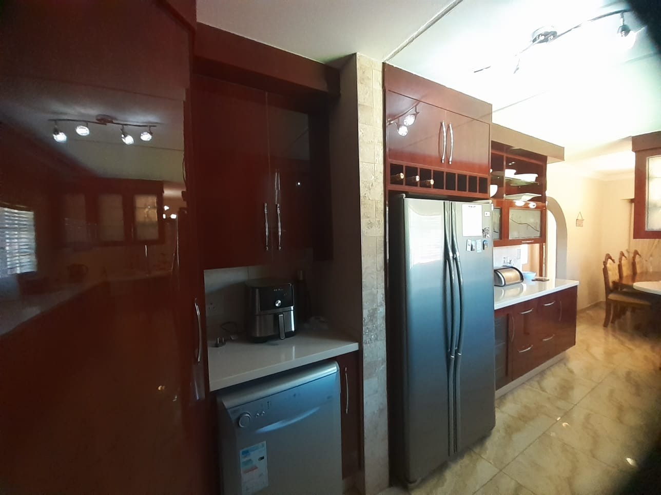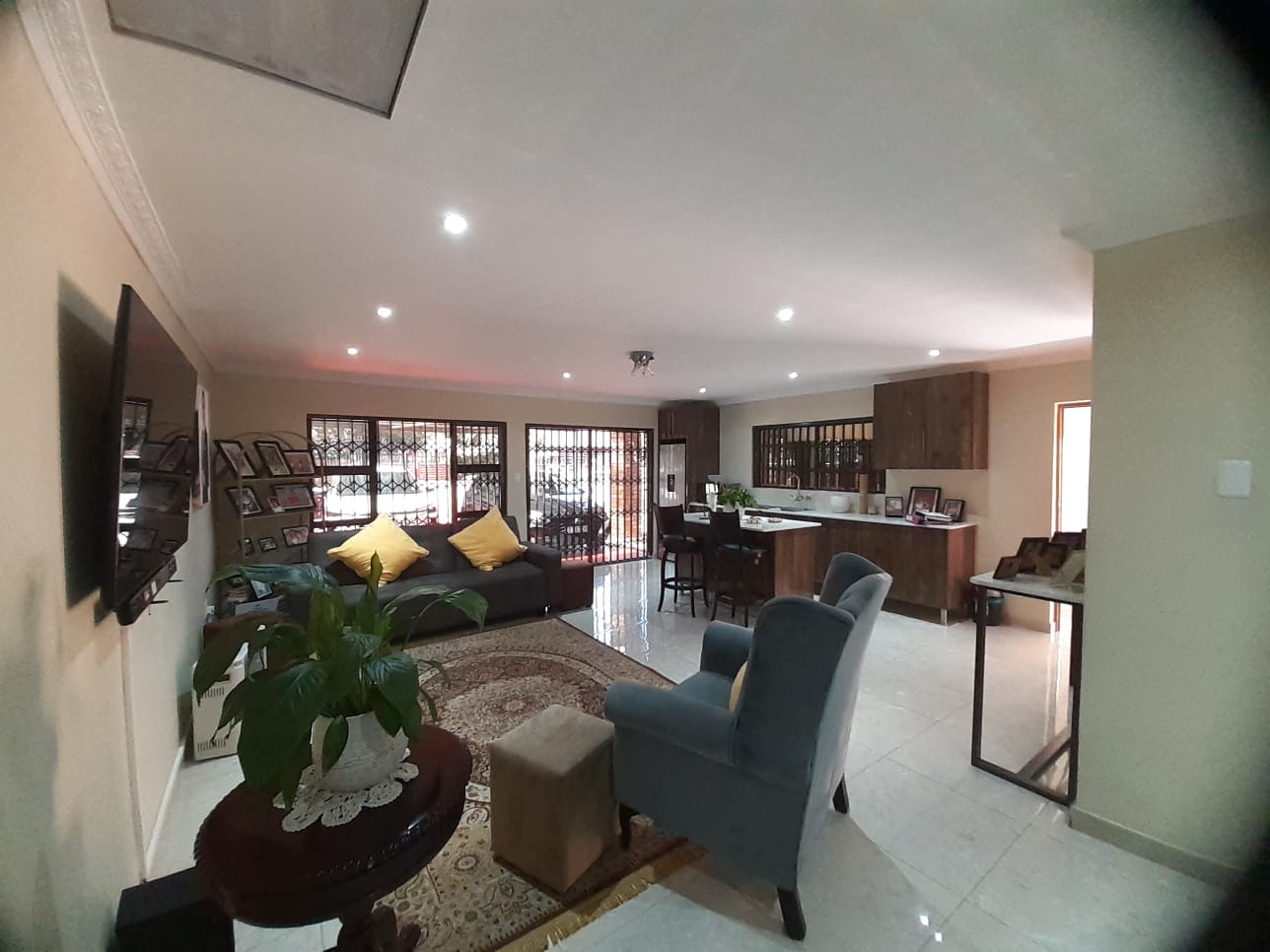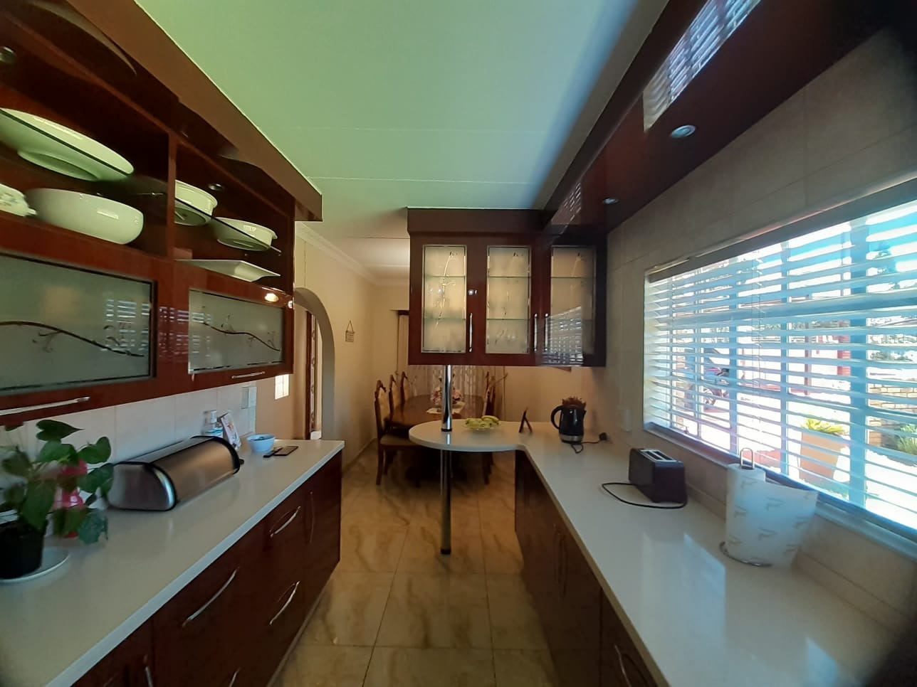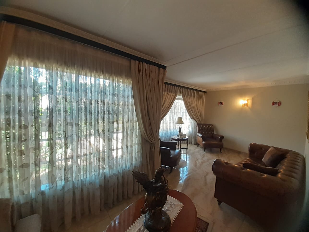 The interior of the home is thoughtfully designed for versatile living, featuring three distinct lounges that provide ample space for relaxation and entertainment. A dedicated dining room ensures a perfect setting for meals, while the functional kitchen caters to daily culinary needs. The layout promotes a practical flow, accommodating various lifestyle requirements.